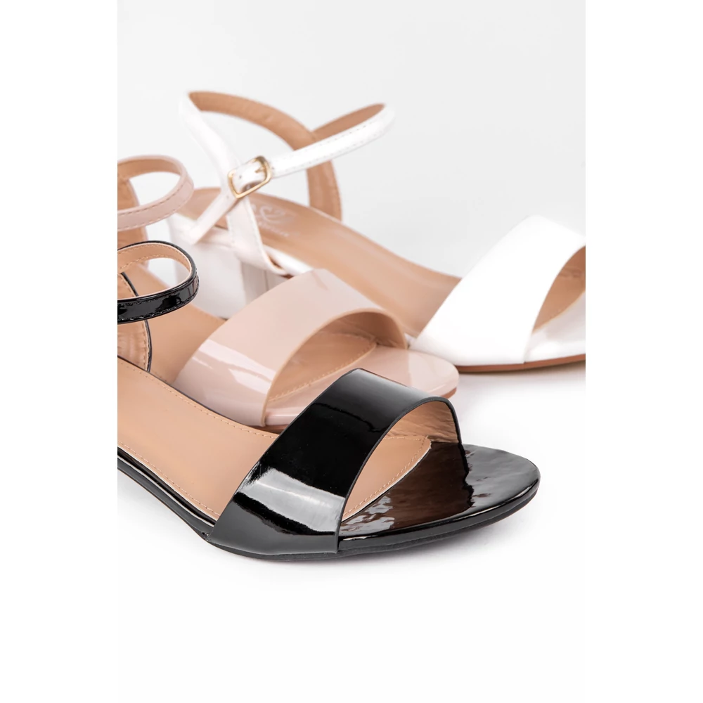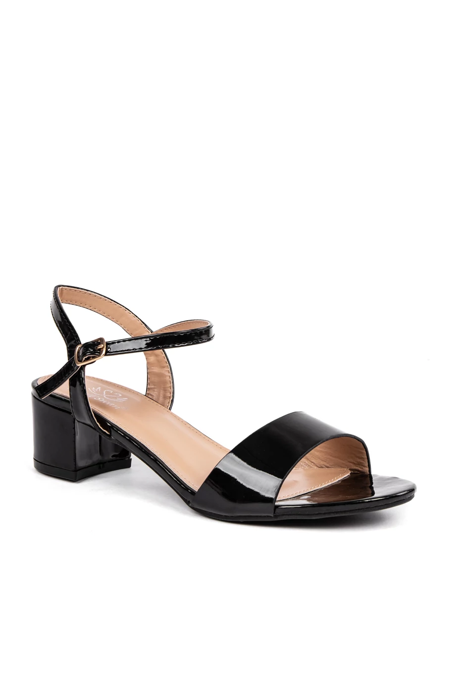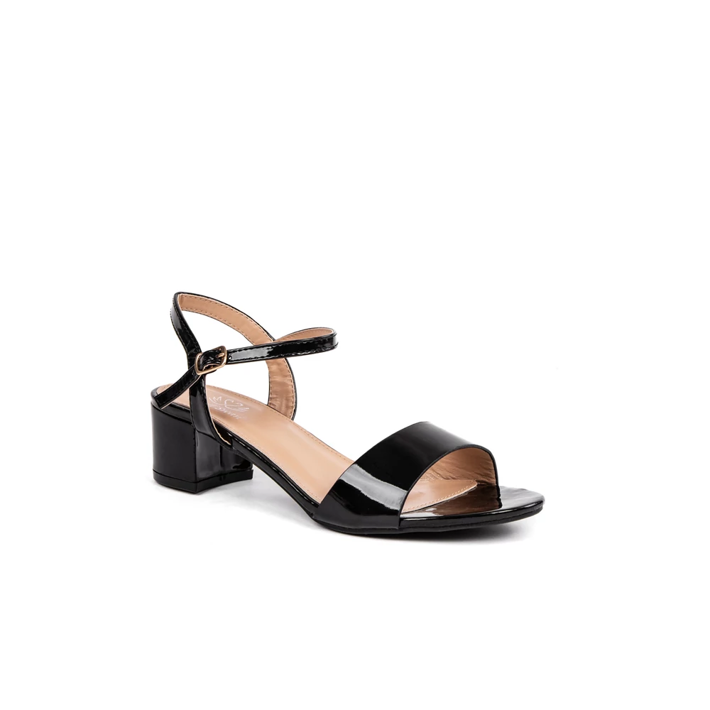 Fekete Lakkozott Törpesarkú Bokapántos Szandál