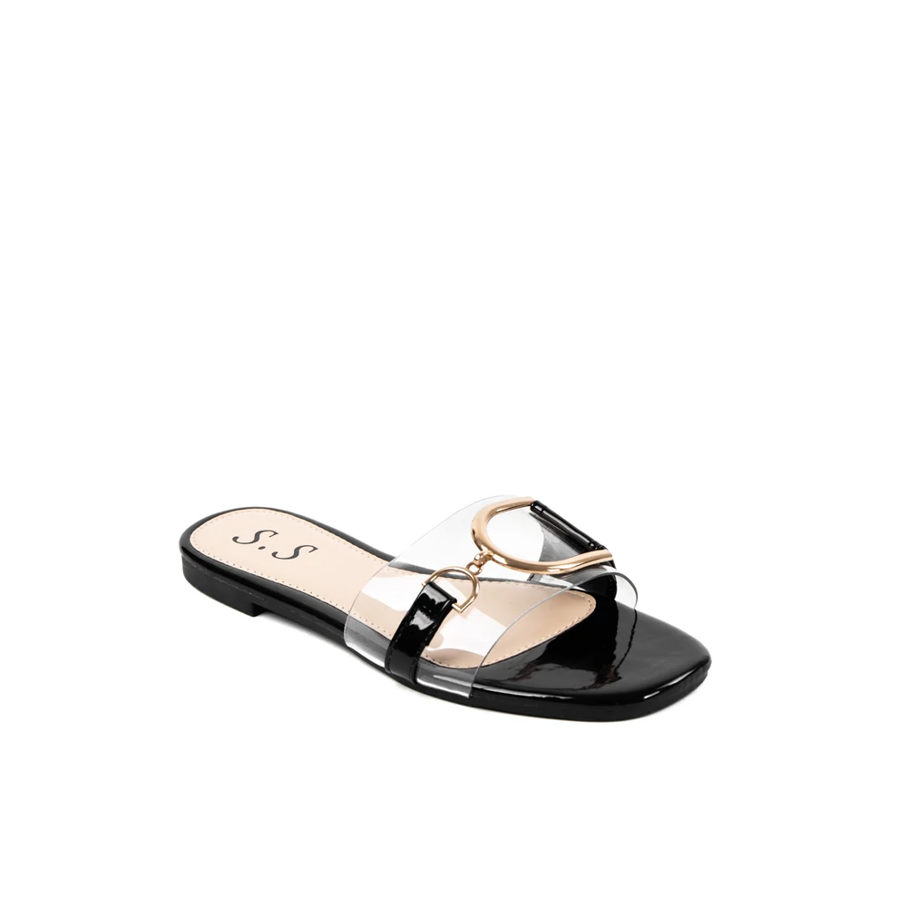 Fekete Lapos Talpú Női Papucs