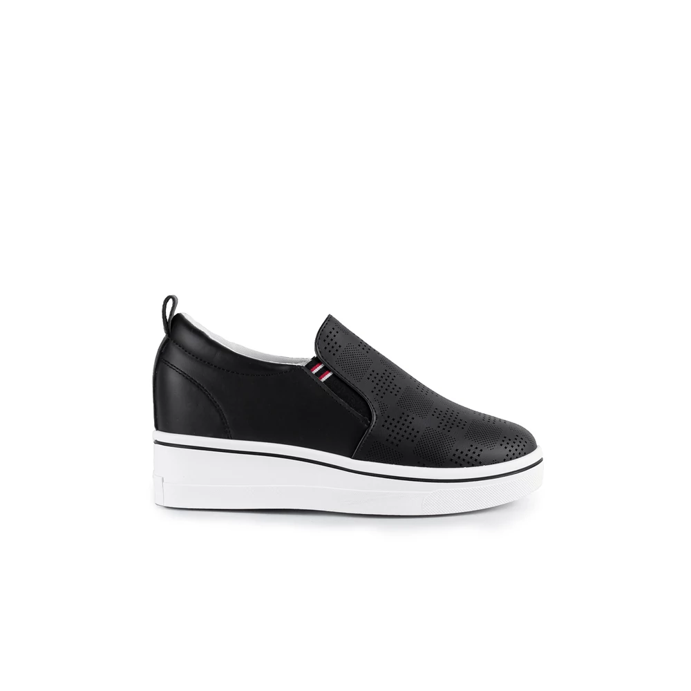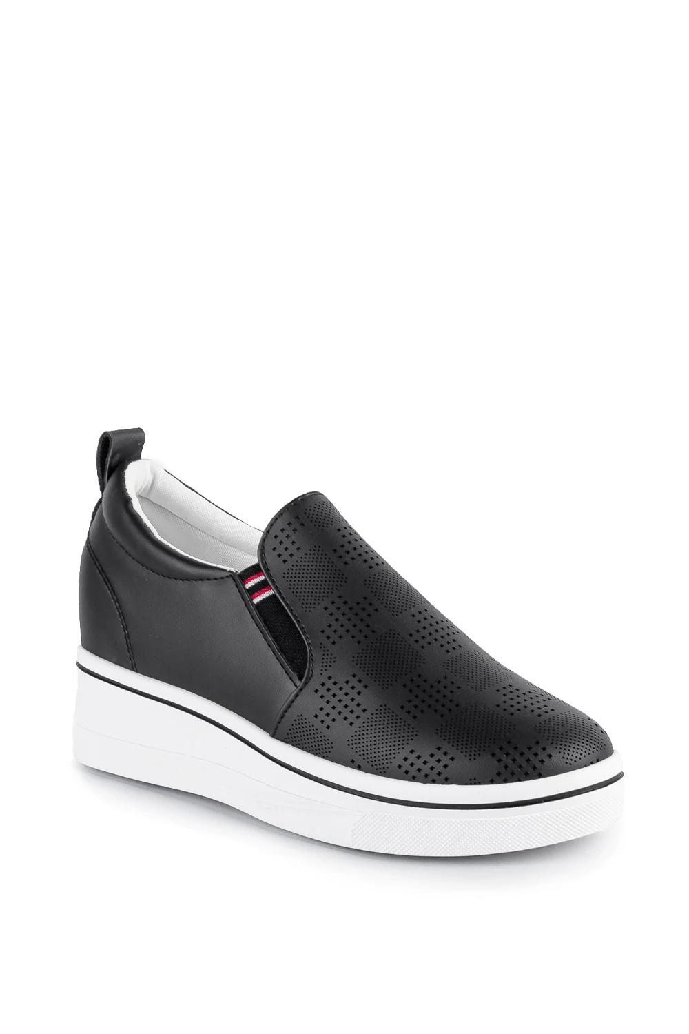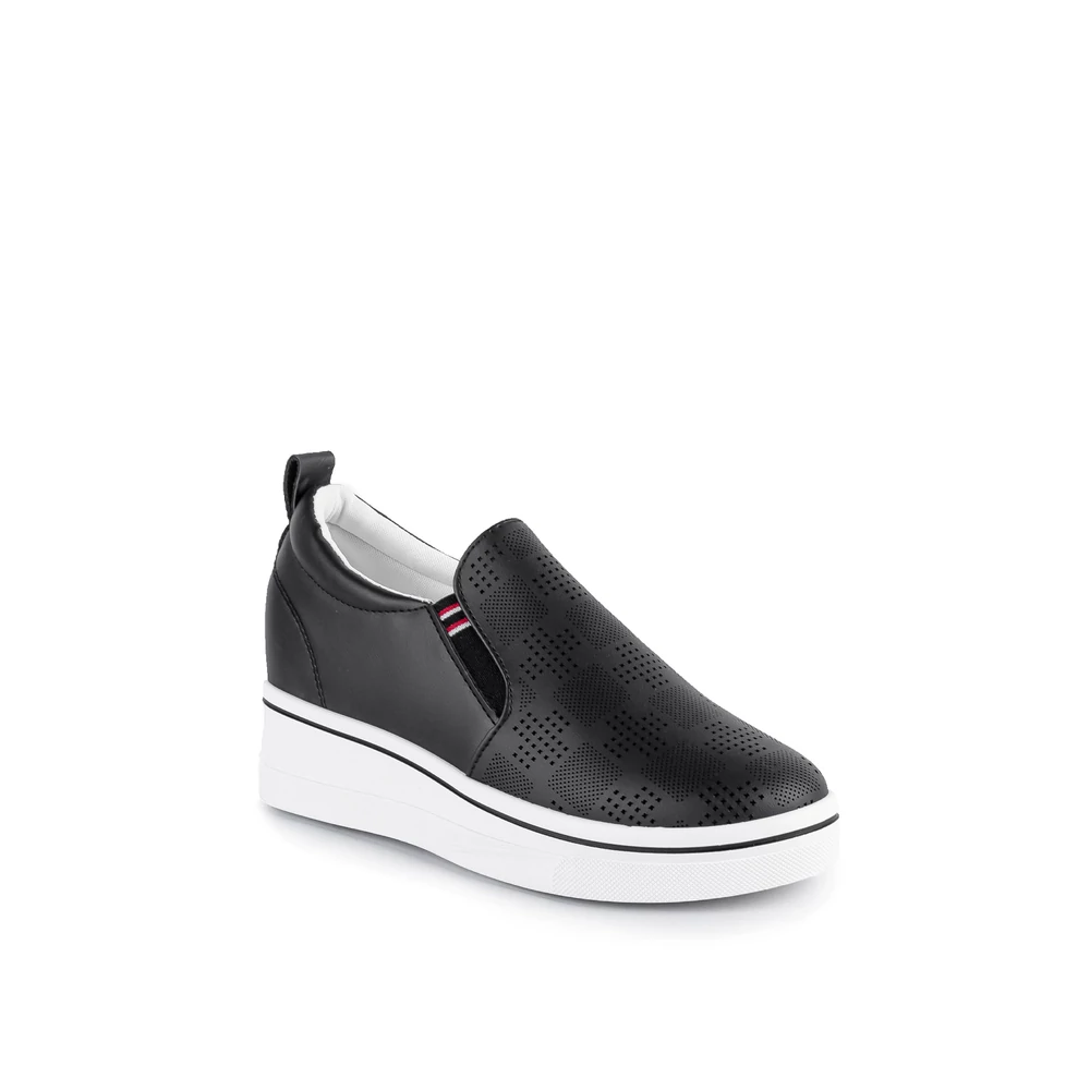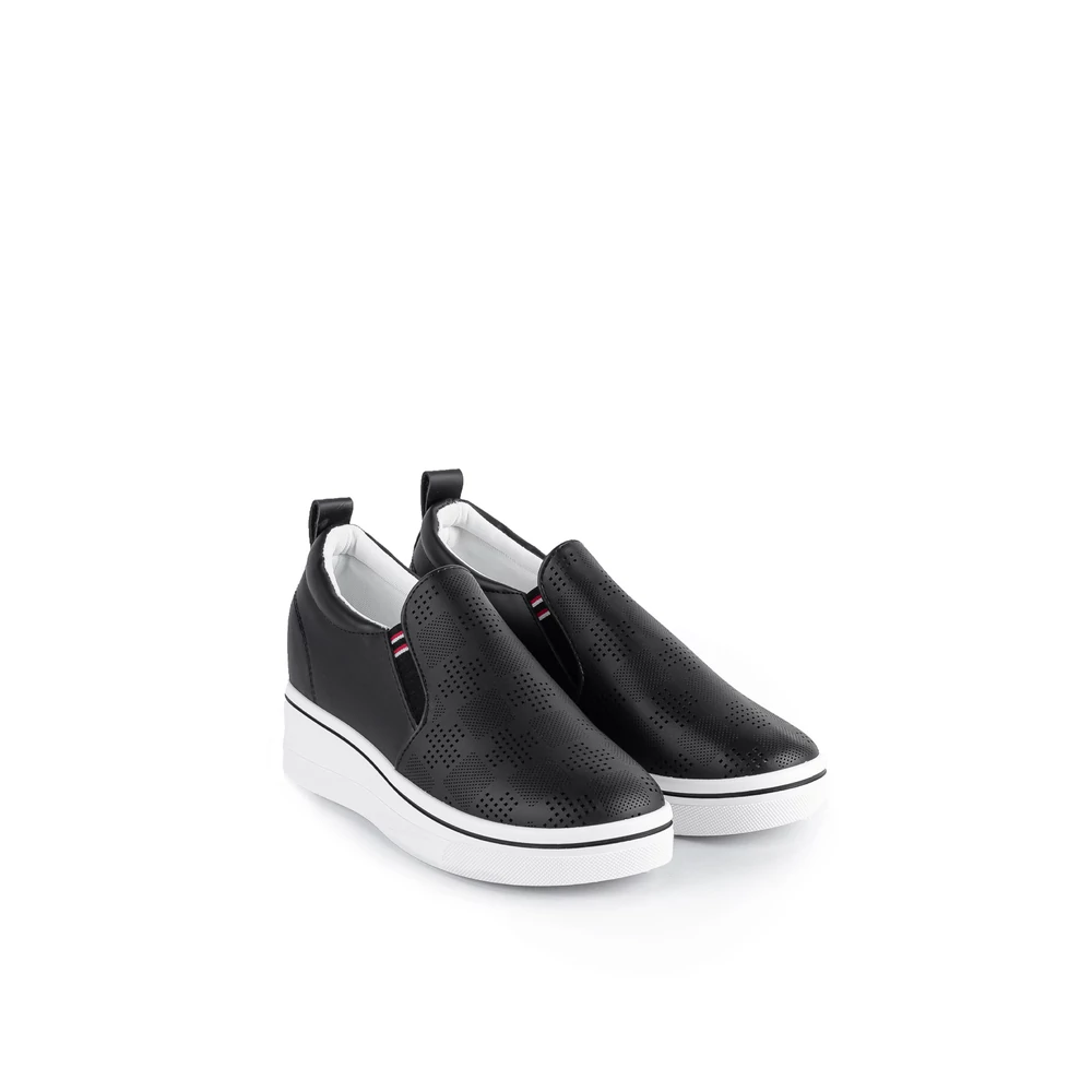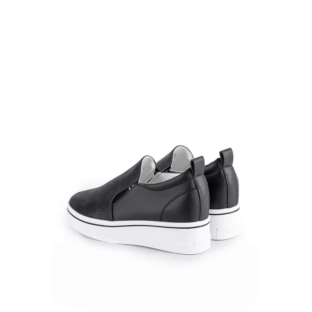 Elegáns megjelenésű slip-on cipő, rejtetett magasított sarkakkal.