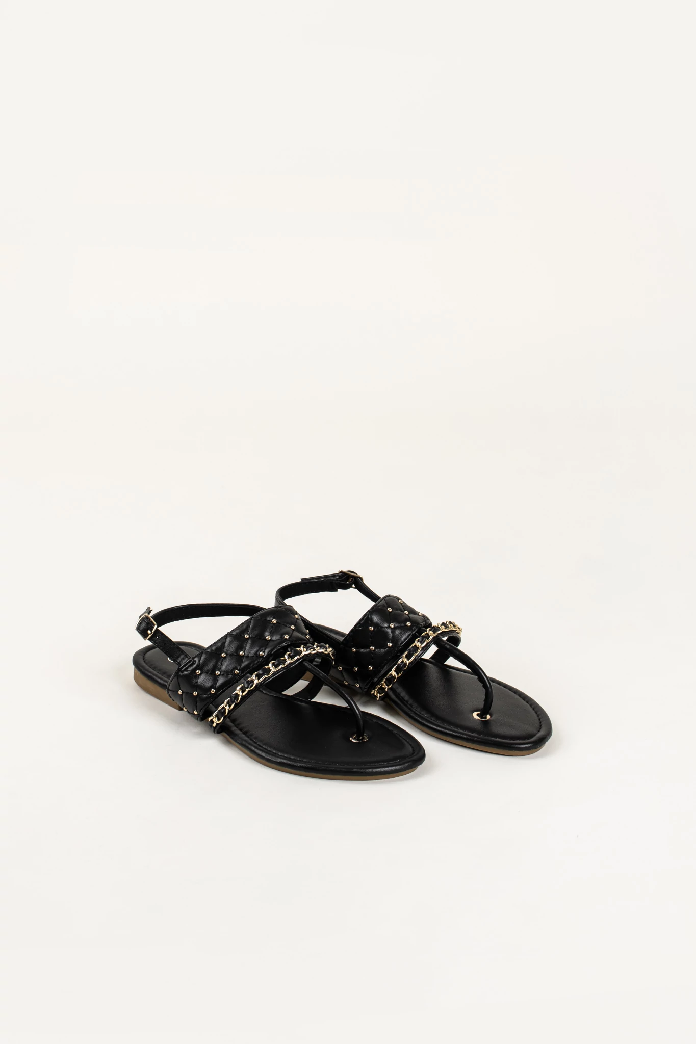 Tree Fekete Keresztpántos Művelúr Szandál Arany Színű Díszítéssel