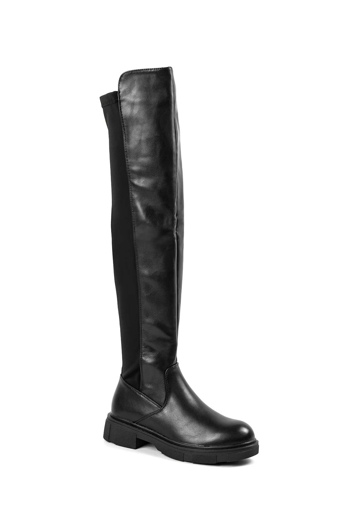 Yesmile Fekete Műbőr Platform Talpú Magasszárú Csizma