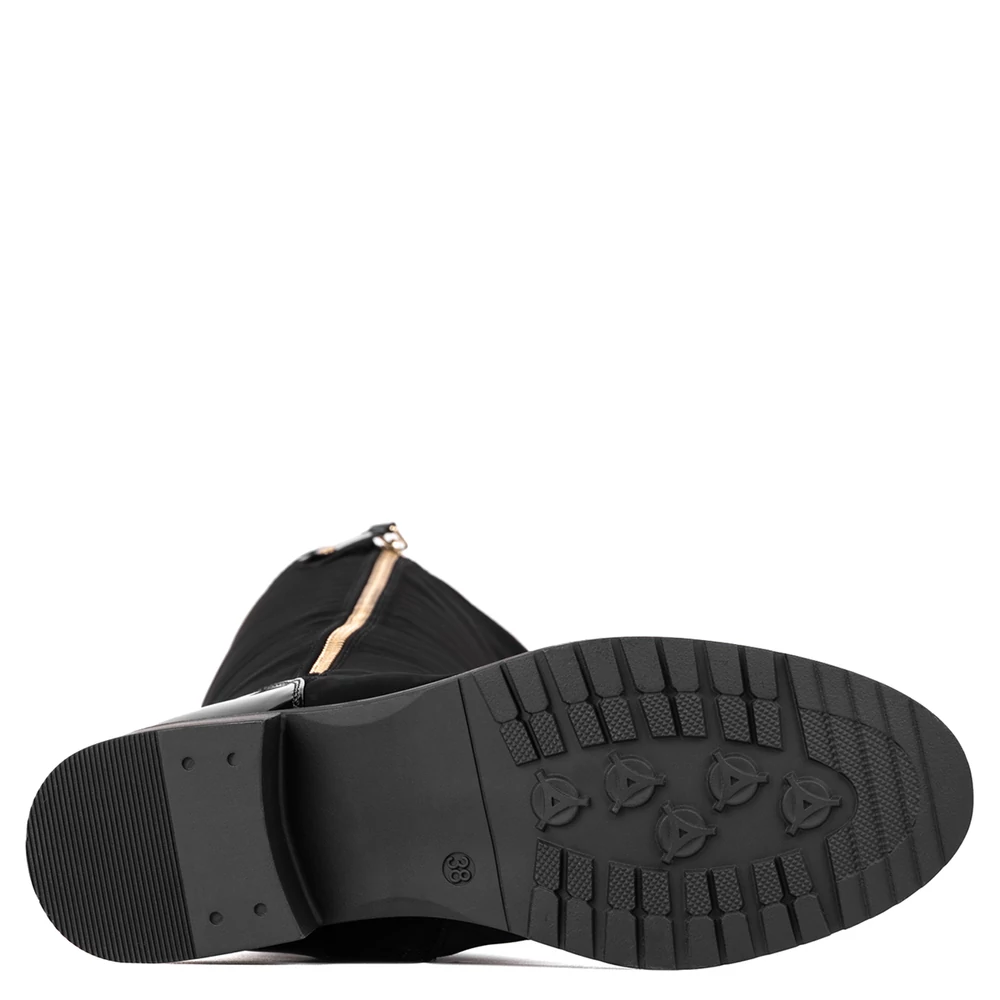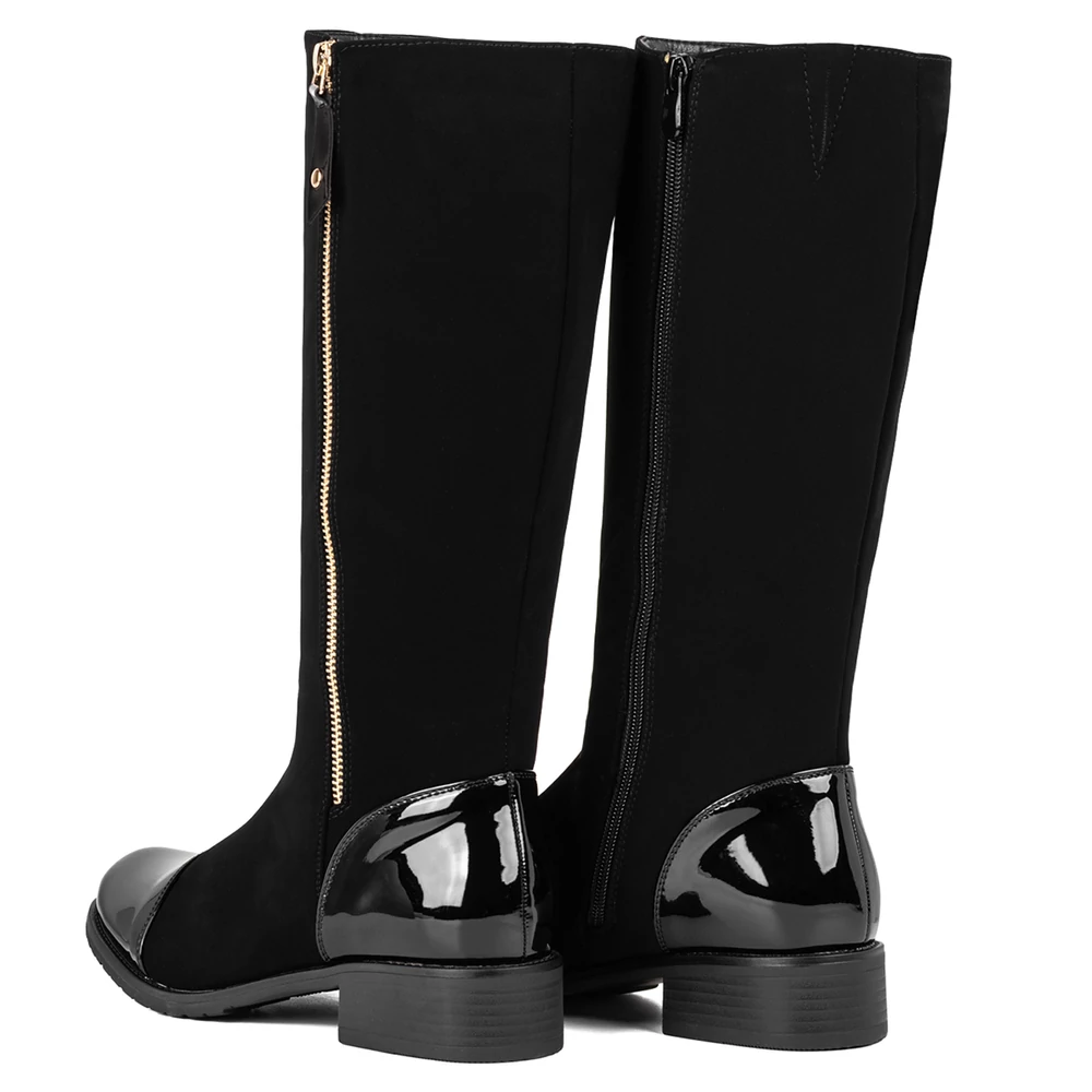 Bosido Fekete Magasszárú Csizma Gumis Szárral