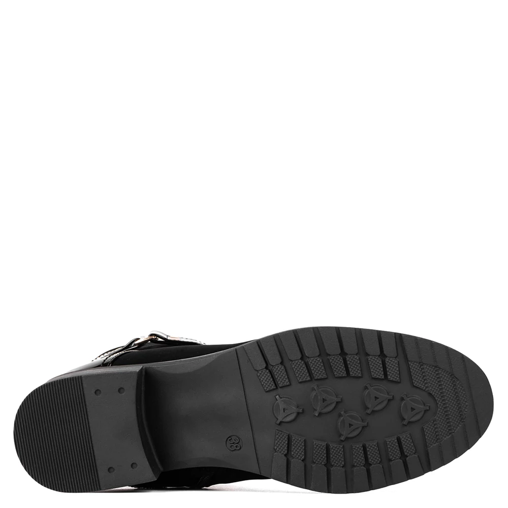Bosido Fekete Műnubuk Bokacsizma Csipkés Szárral És Strasszköves Csattal