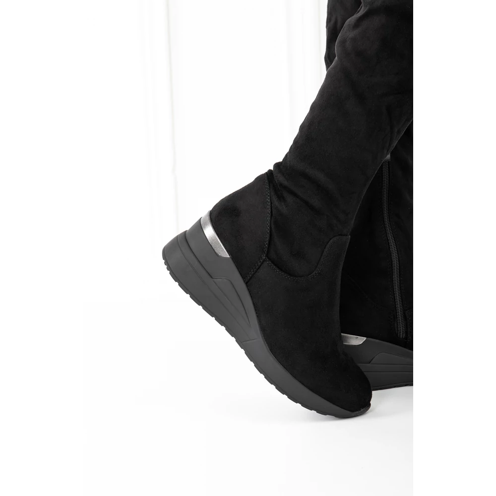 Egyszerű kialakítású, őszi magasszárú csizma az átmeneti időszakra.