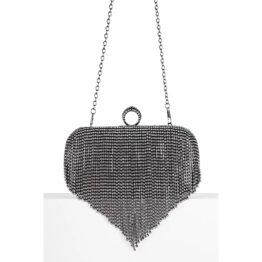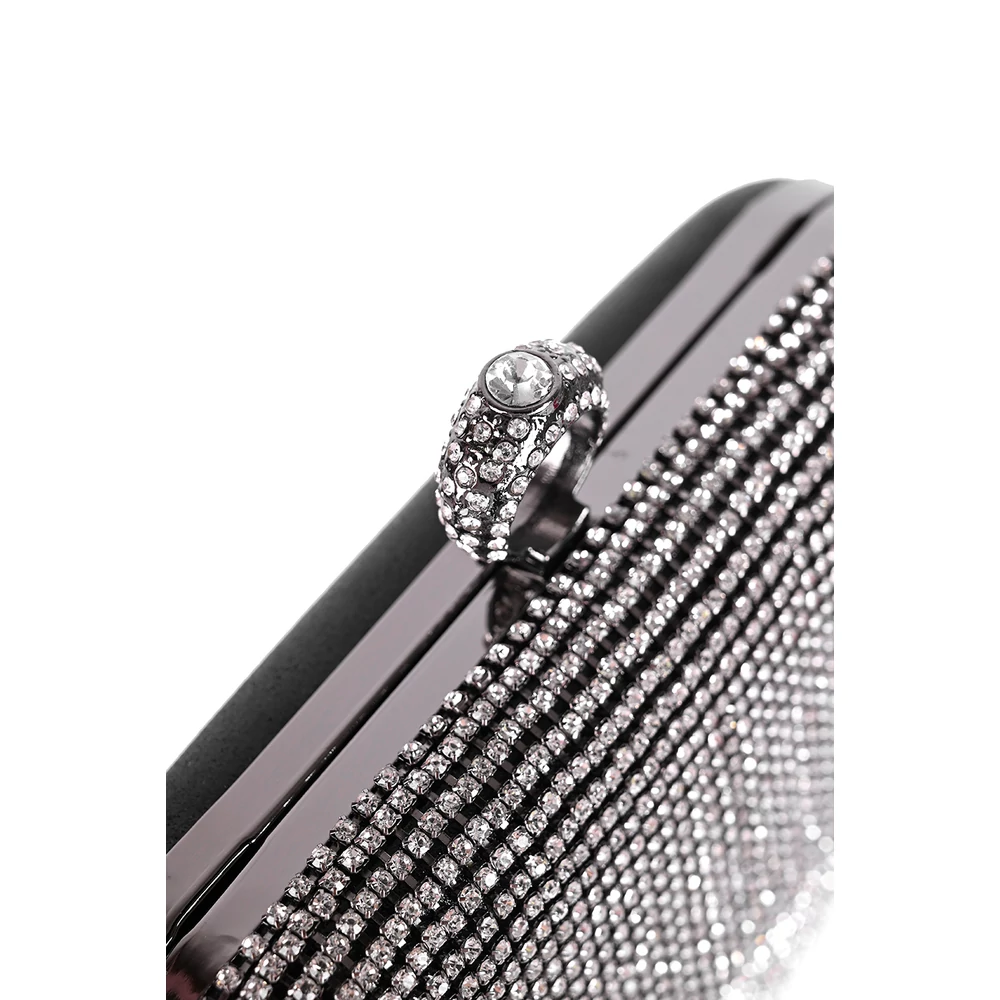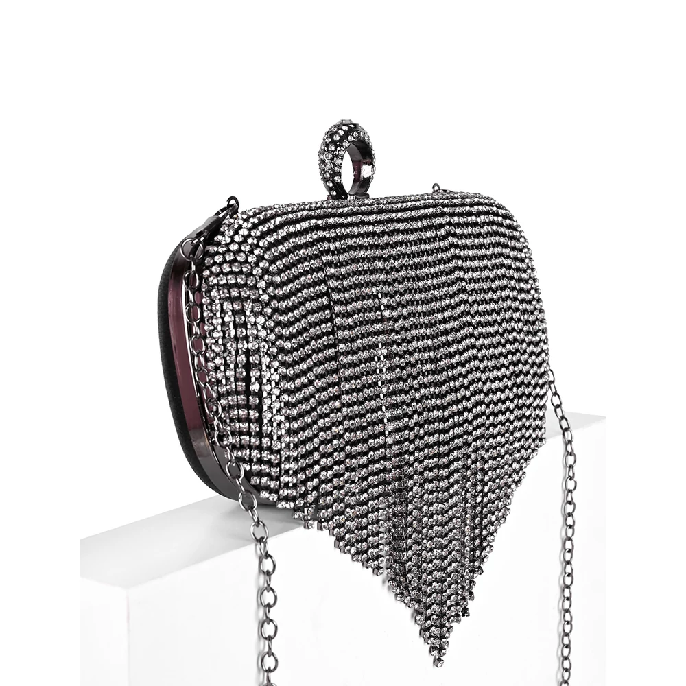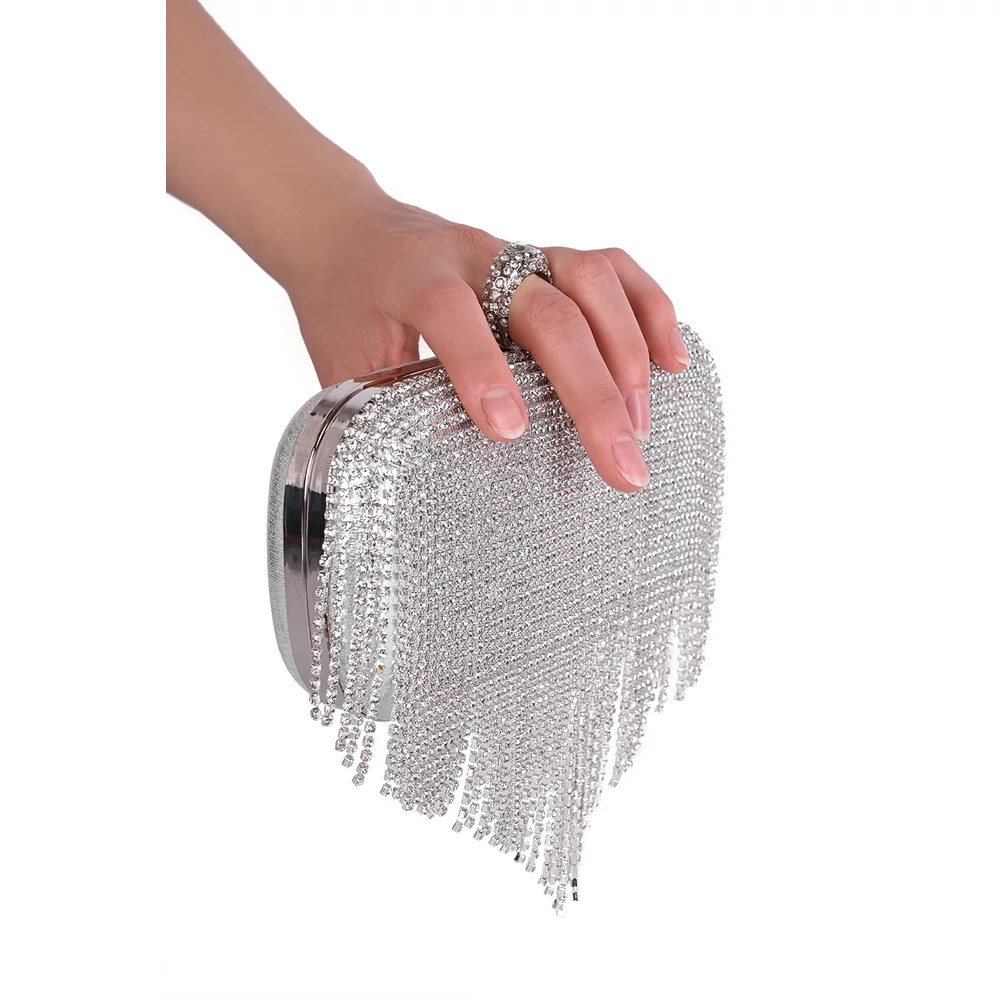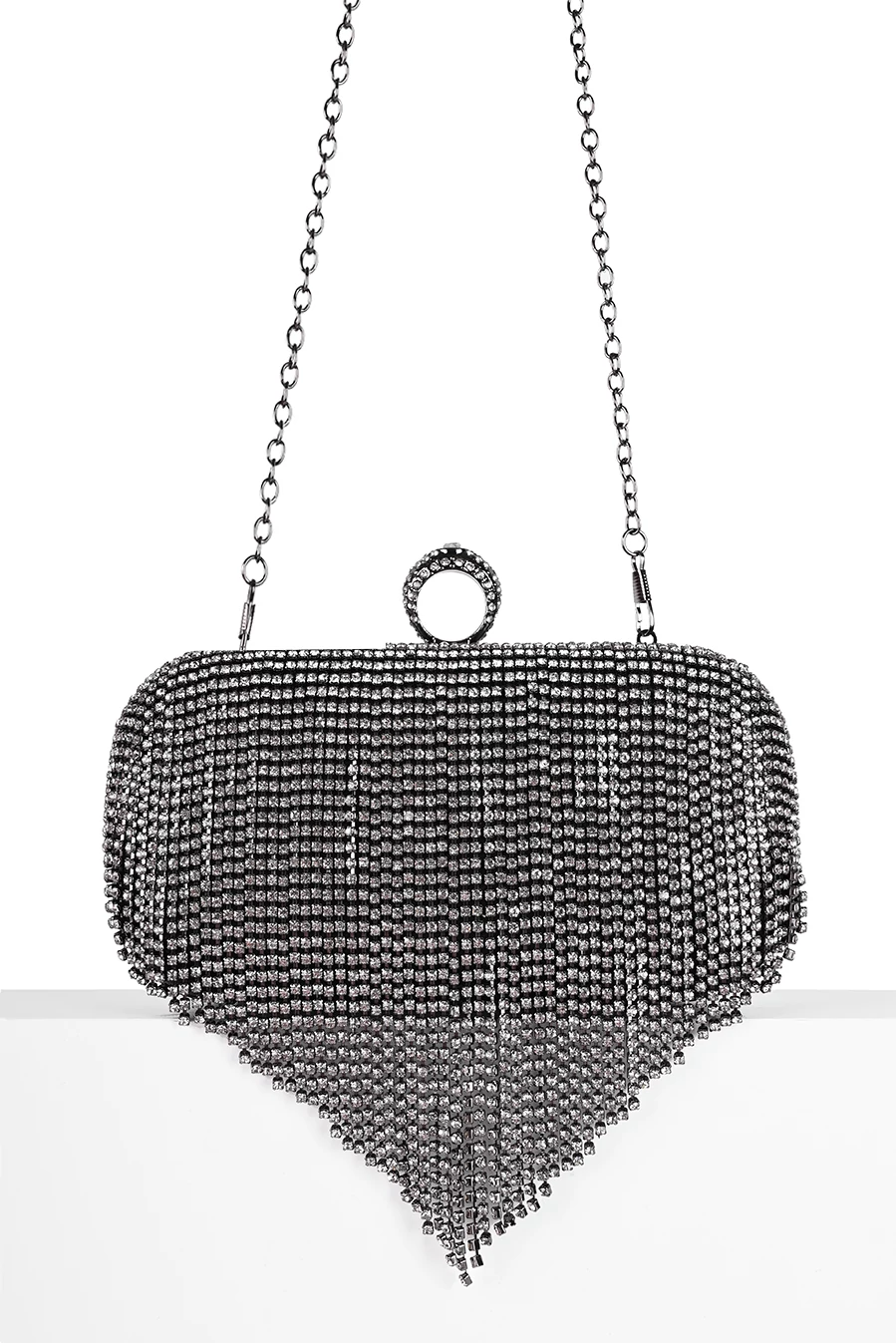 Elegáns és trendi strasszköves party/alkalmi táska, amellyel nem csak kitűnsz a tömegből, de bele is pakolhatod a kisebb értékeidet, mint telefon, pénz és zsebkendő. Egyterű belsejét egy gyűrűnek kinéző patenttal lehet nyitni. A táskát a hozzá tartozó vékony lánccal vállon is viselheted, vagy akár a gyűrűt is felhúzhatod az ujjadra, és a táskát a markodban is kényelmesen hordozhatod.