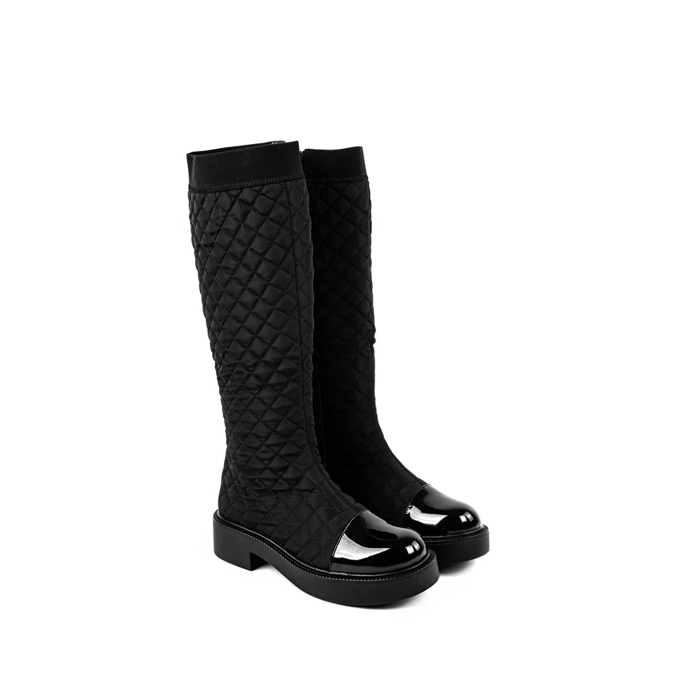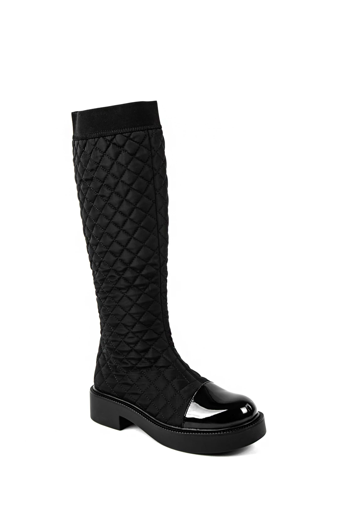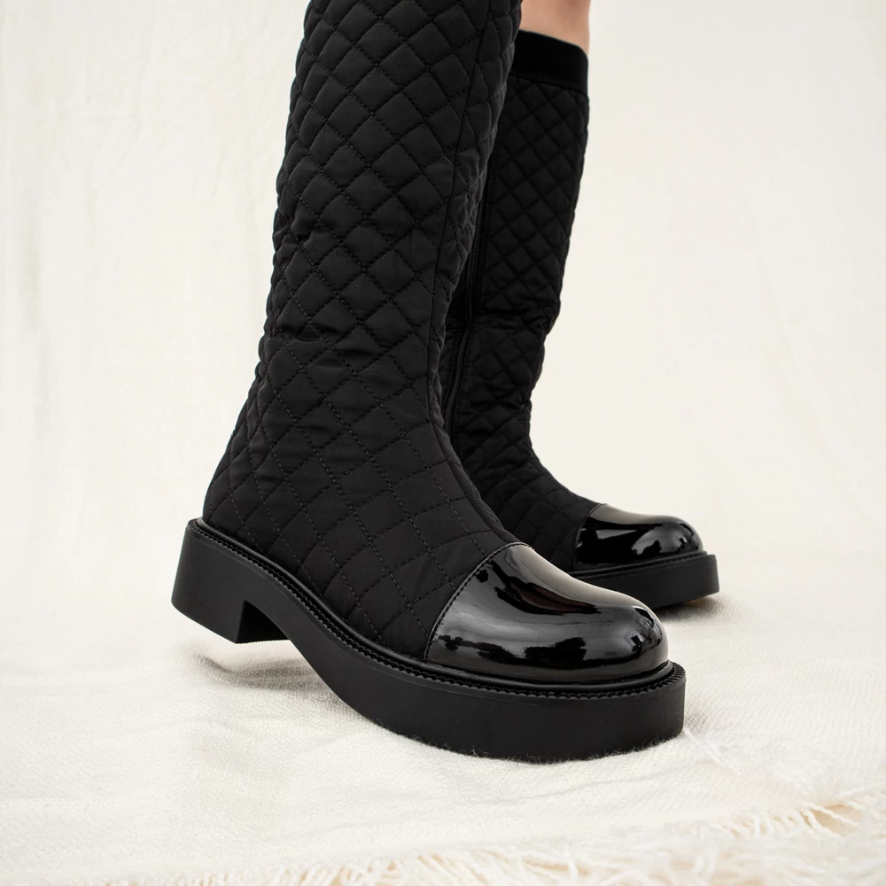Bosido Fekete Magasszárú Csizma Gumis Szárral