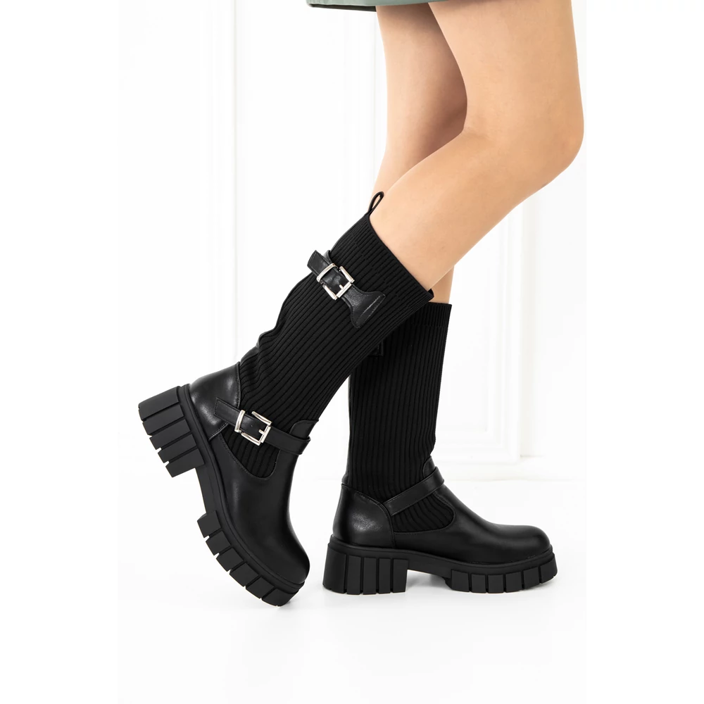 Letisztult stílusú, divatos és elegáns bokacsizma stílusos csatokkal díszítve.
