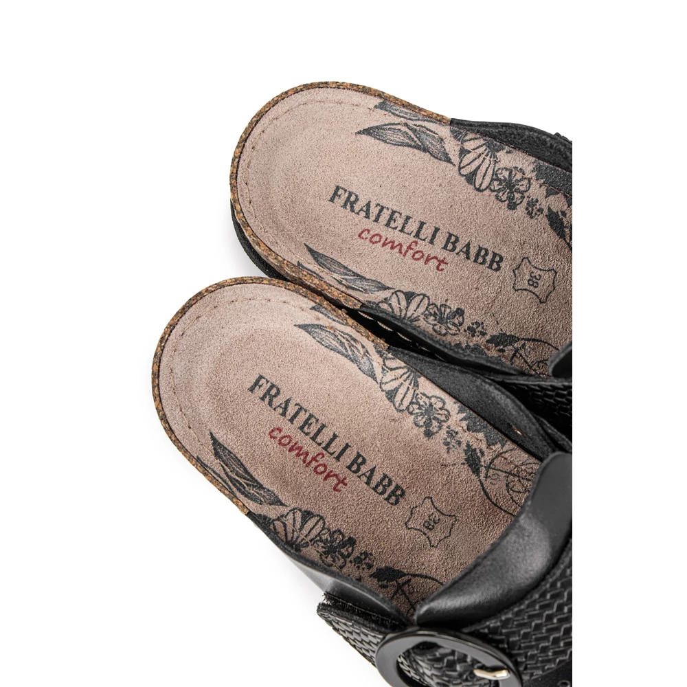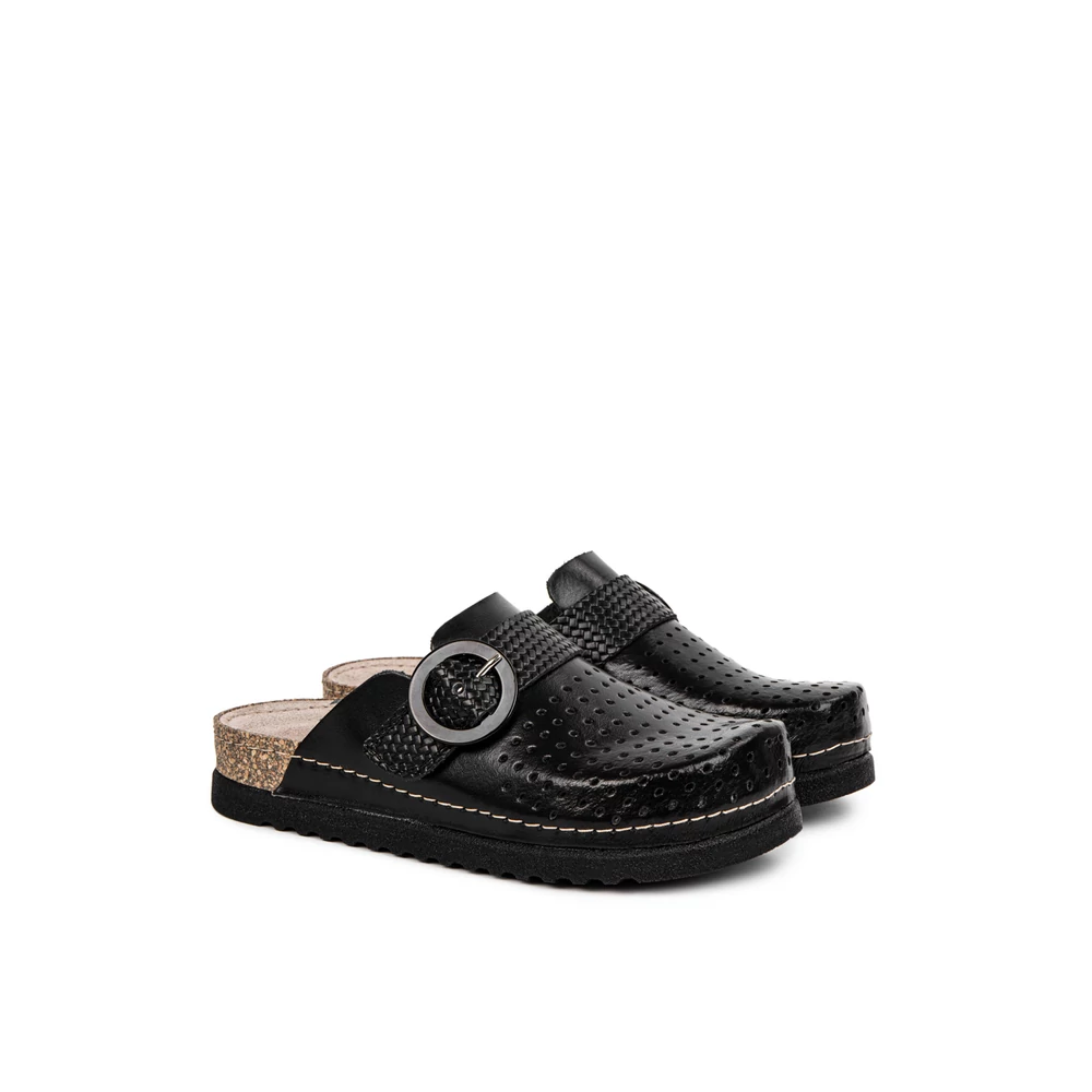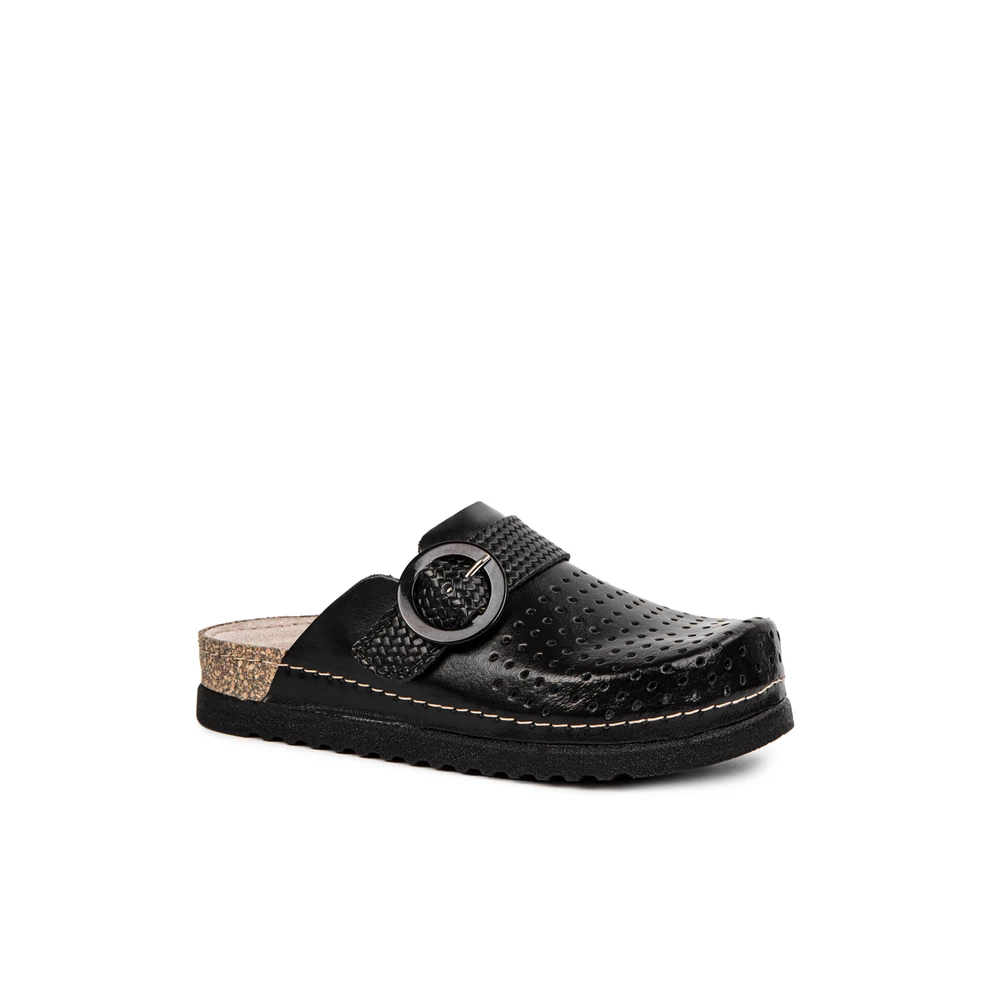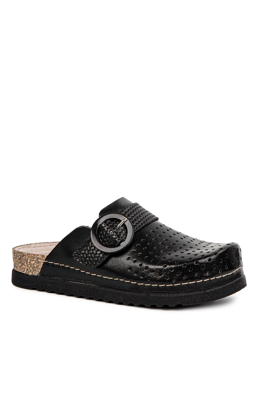 Rugalmas, valódi bőrből készült, könnyű papucs állítható csattal.