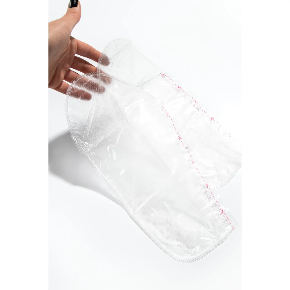 2.: Bontsd fel a csomagolást olló segítségével és vedd fel a láb maszkokat. A méret beállításához használd a mellékelt ragasztó csíkokat.