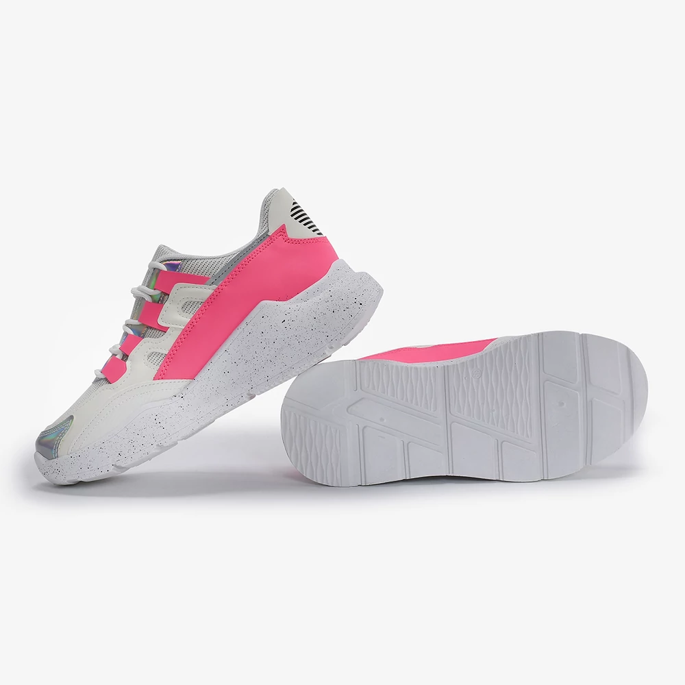 Könnyű viseletű cipő vagány, különböző texturájú és elején hologrammos betétekkel. Magasított talpa extra könnyű anyagból készült, így a cipőnek szinte nincs is súlya! Ránézésre soha nem mondanád, hogy szinte nem is érezni, hogy cipő van a lábadon! Ezt érezni kell! Gyakorlatilag bármilyen összeállítású szetthez viselhető, garantáltan magára vonzza a tekinteteket. Színes egyéniségek imádni fogják! 2020 a színek éve, kezdjünk neki ezzel az univerzális darabbal!