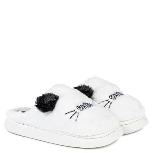 Fekete-Fehér Női Szőrmés Cicás Mamusz