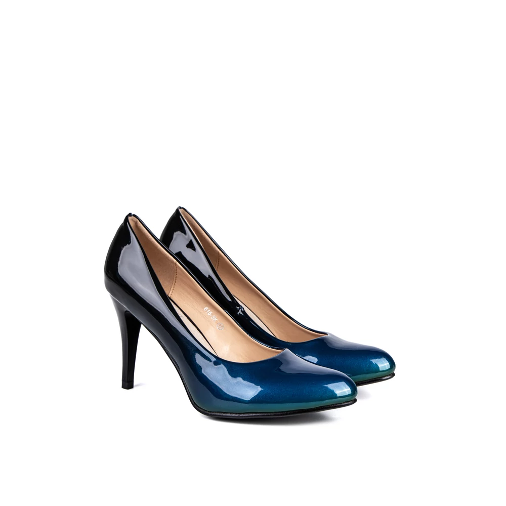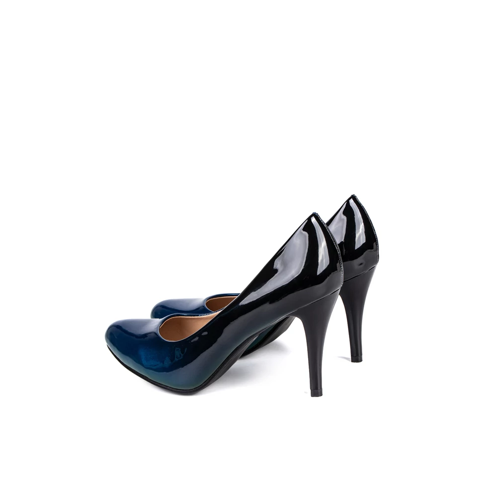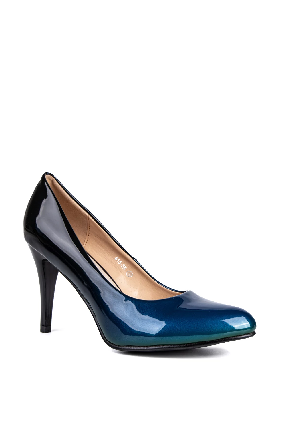Kék-Fekete Átmenetes Lakkozott Magassarkú Cipő