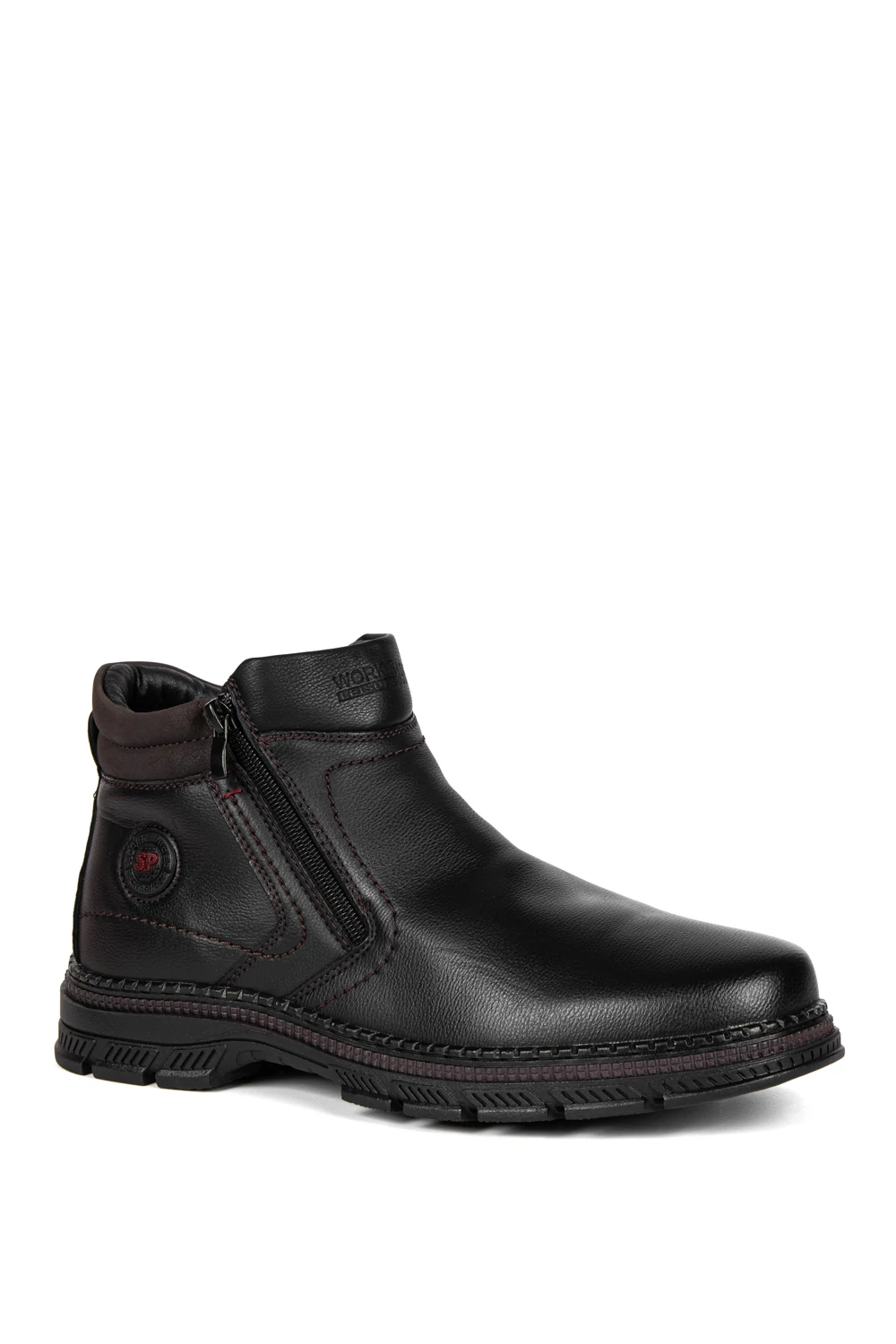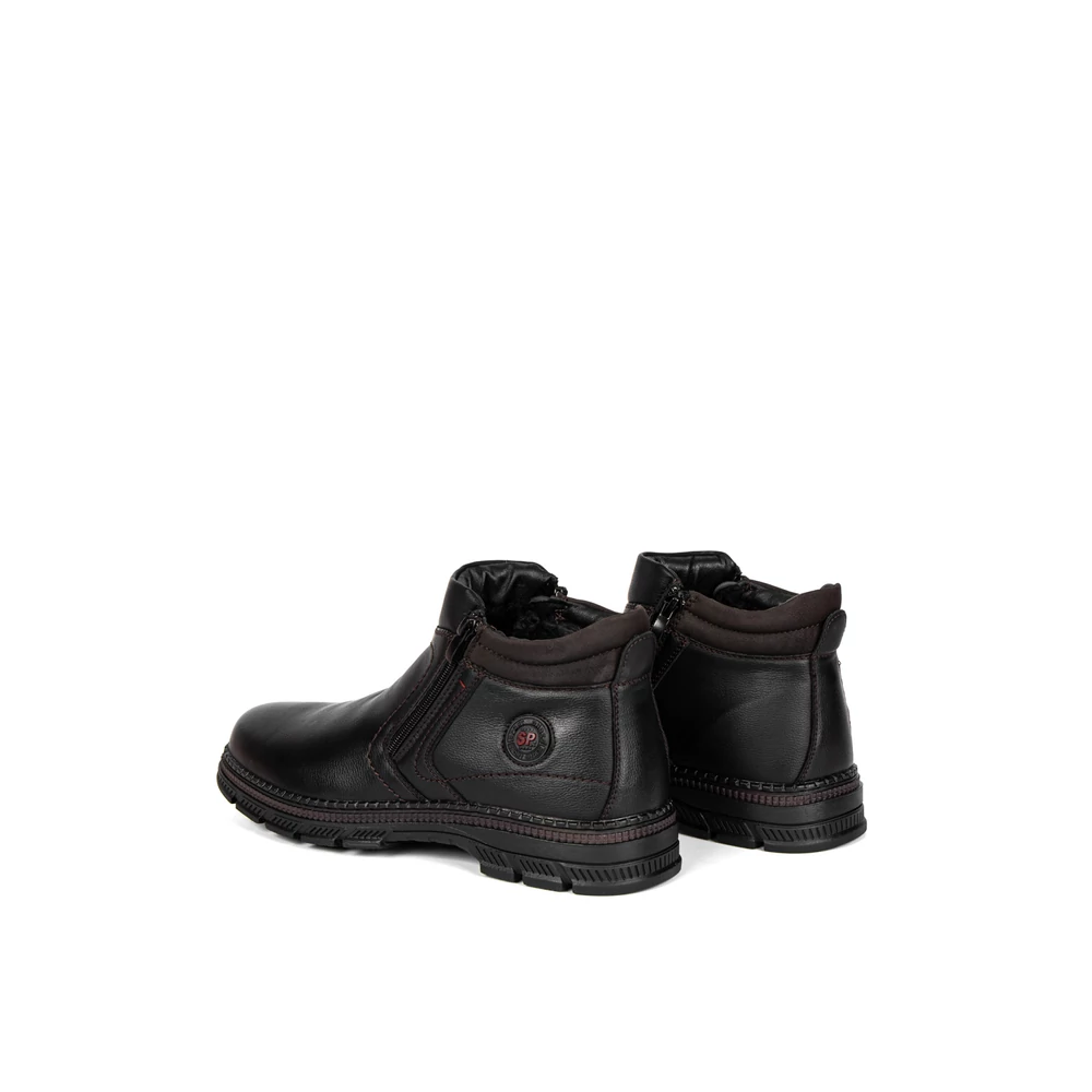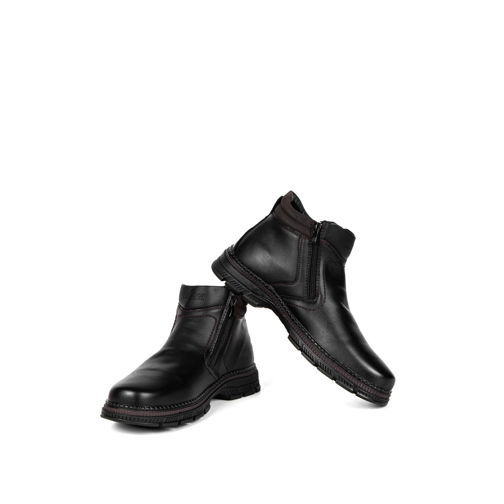 Zárt, cipzáras műbőrből készült férfi bokacsizma. Erős és gumírozott talpának köszönhetően biztonságos a használata. Vastag bélése melegen tartja a lábat.