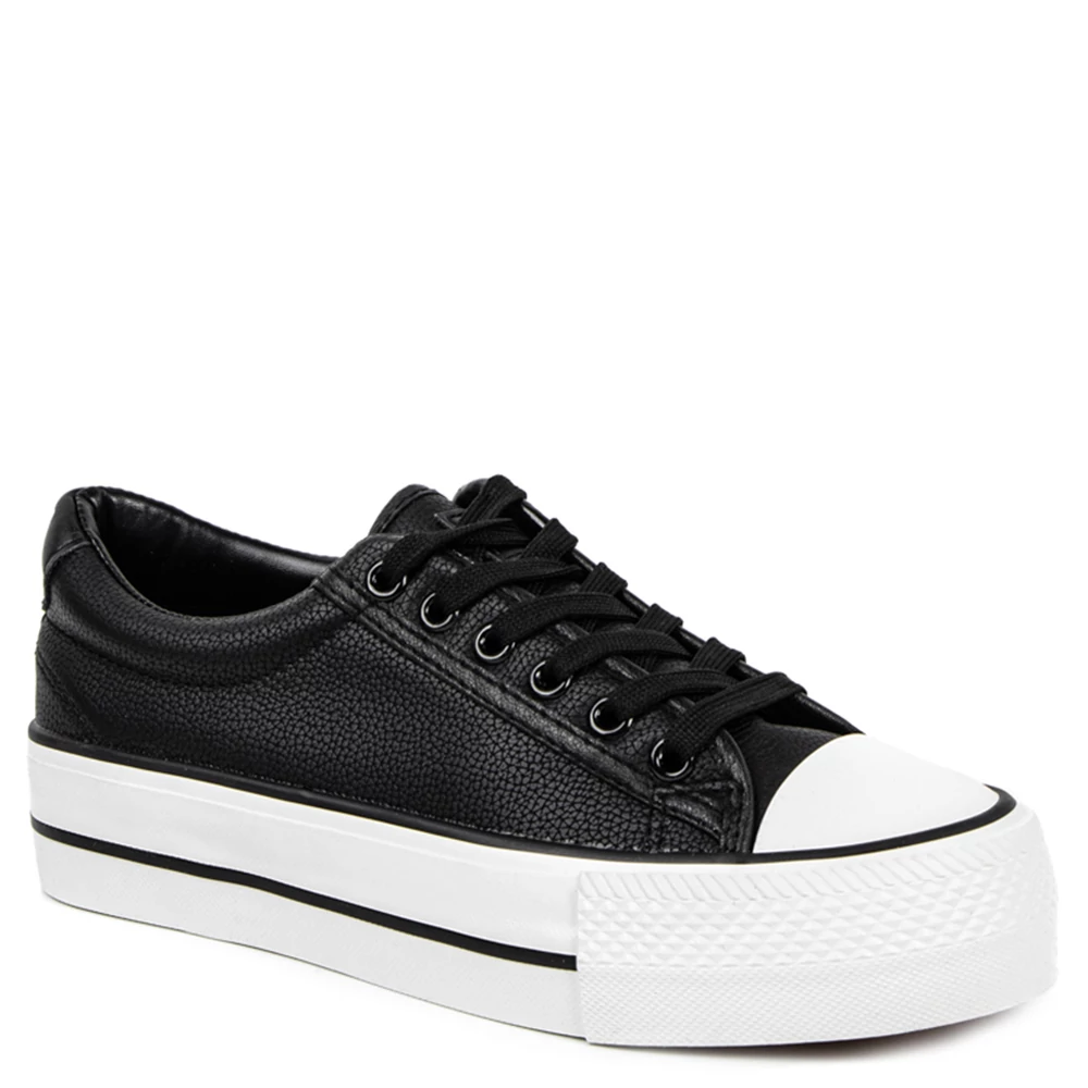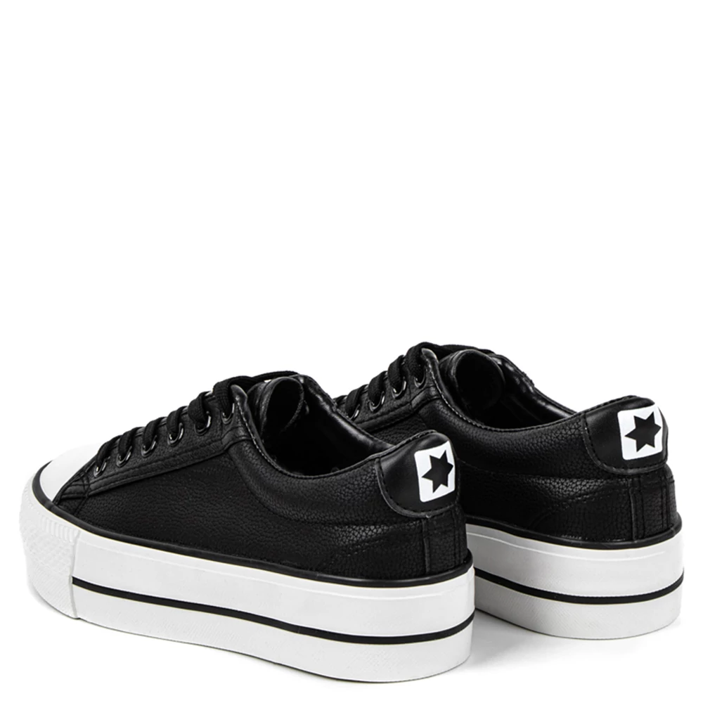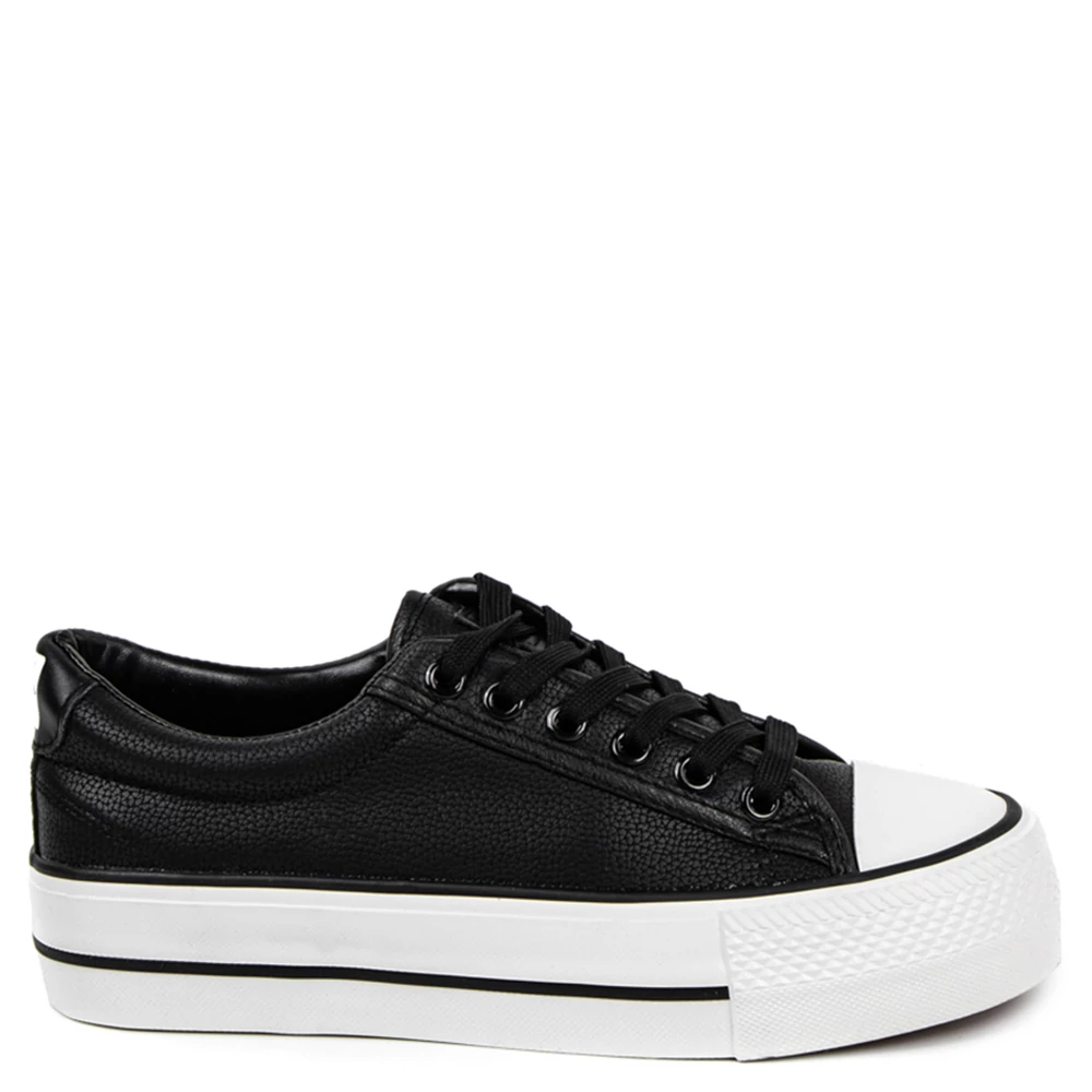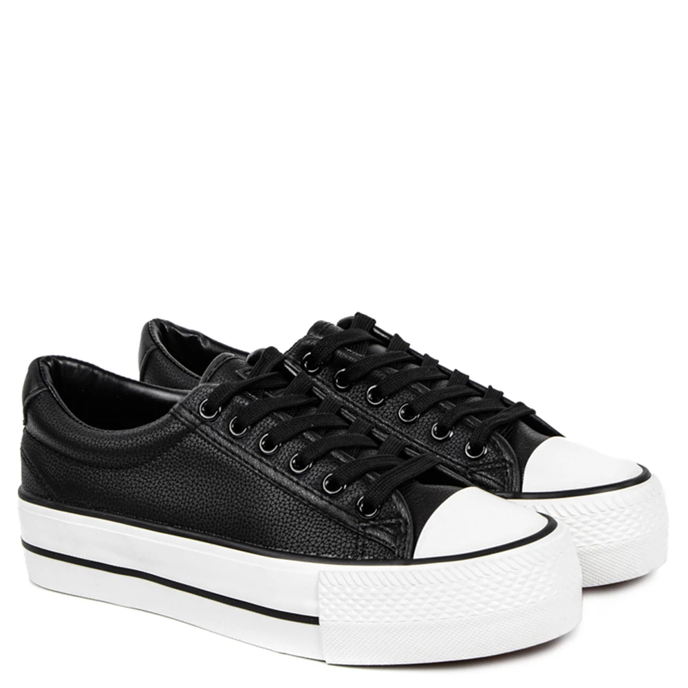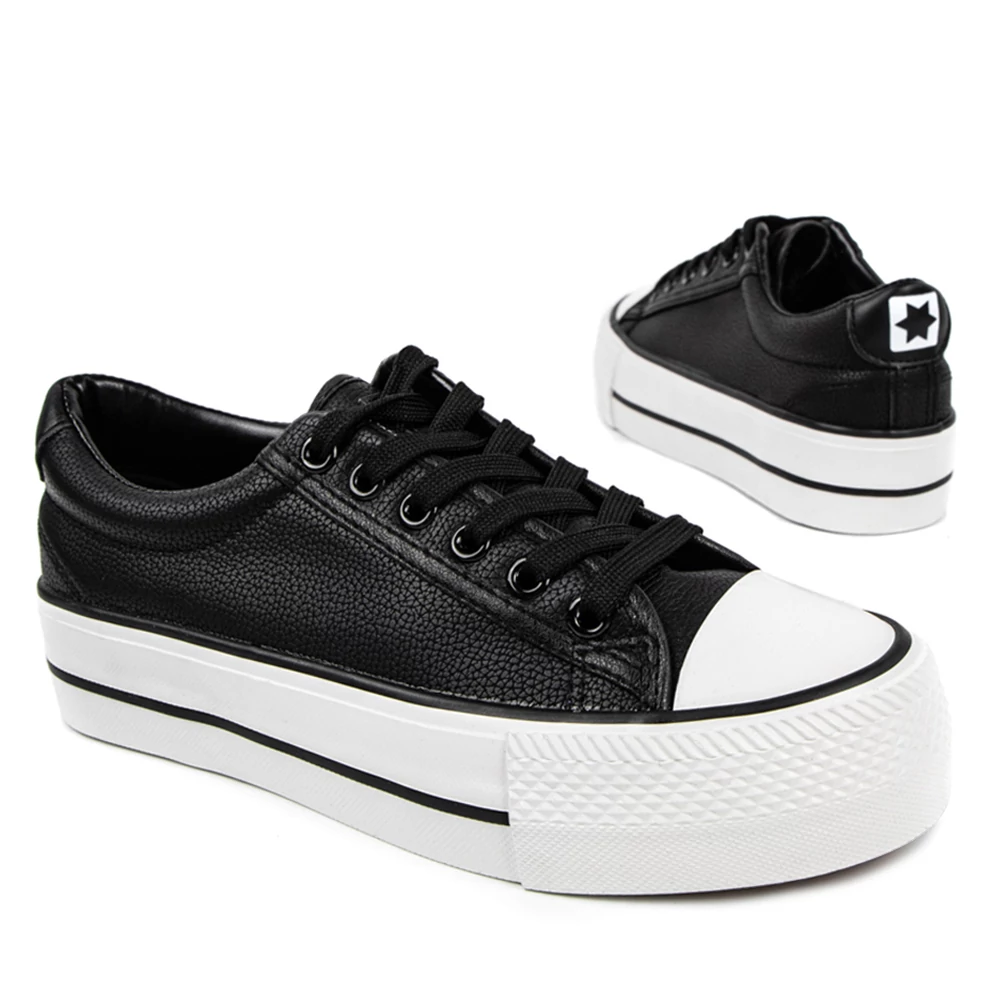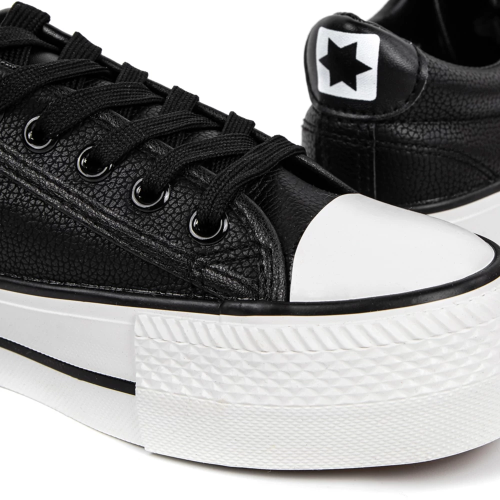 Fekete Csillogó Vastagtalpú Vászon Női Tornacipő