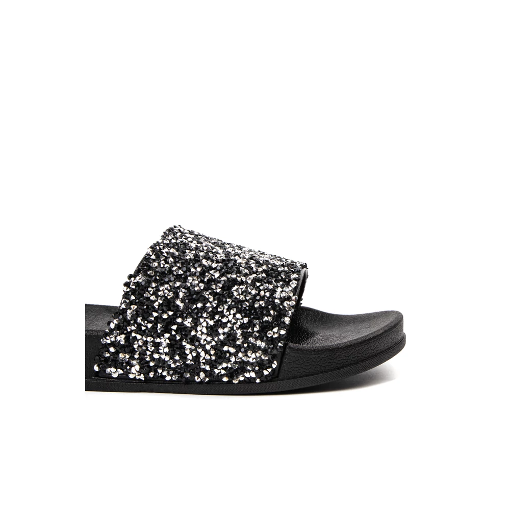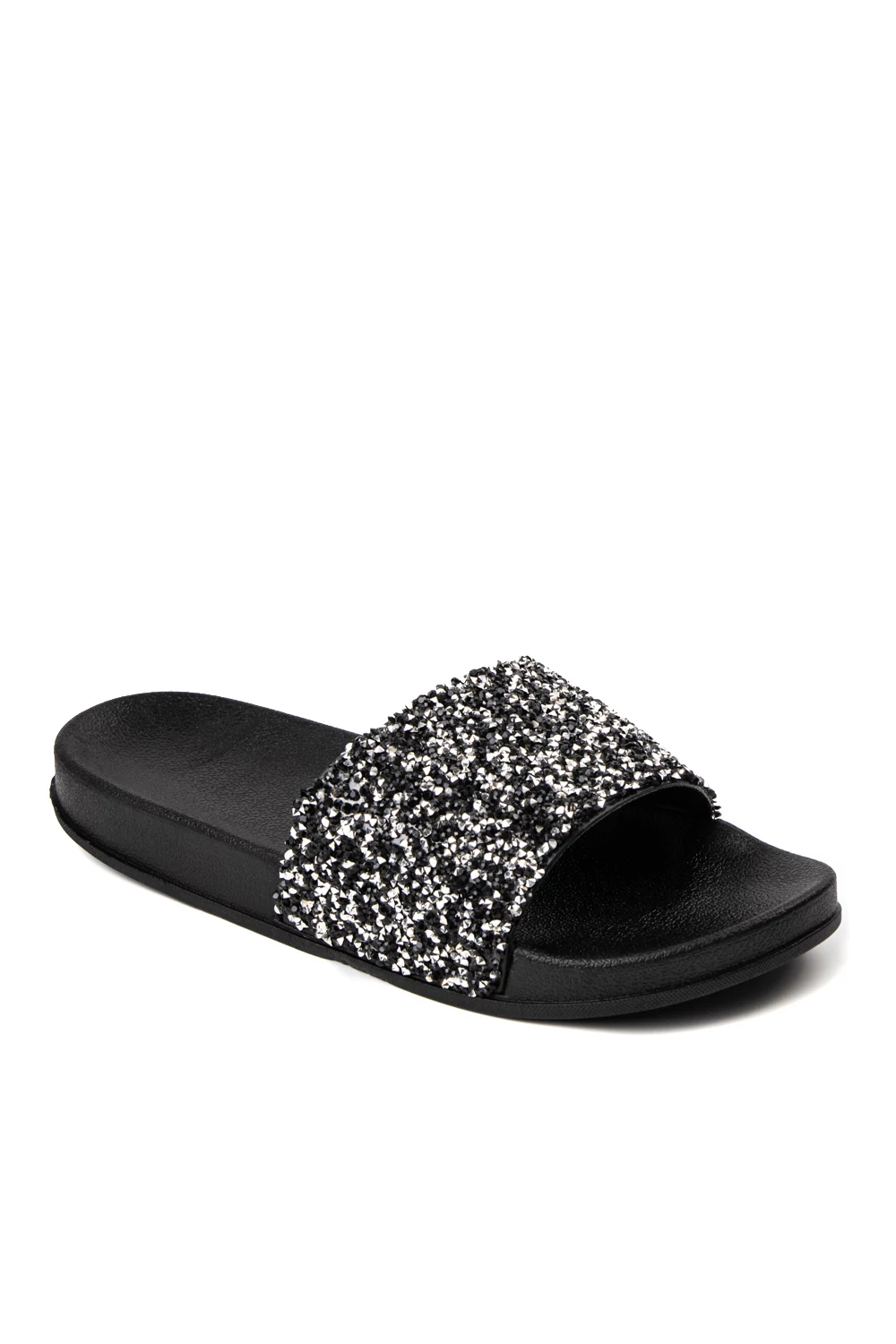 Seastar Fekete Szőrmével Díszített Női Papucs