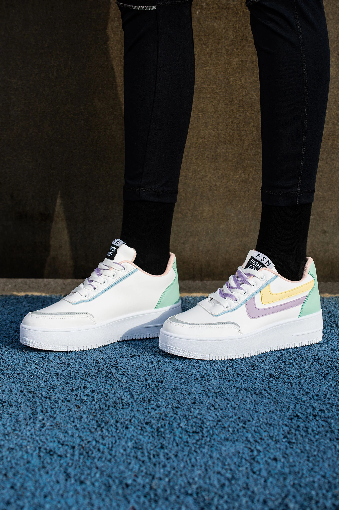 Divatos, dupla fűzős magasított talpú trendi utcai cipő.