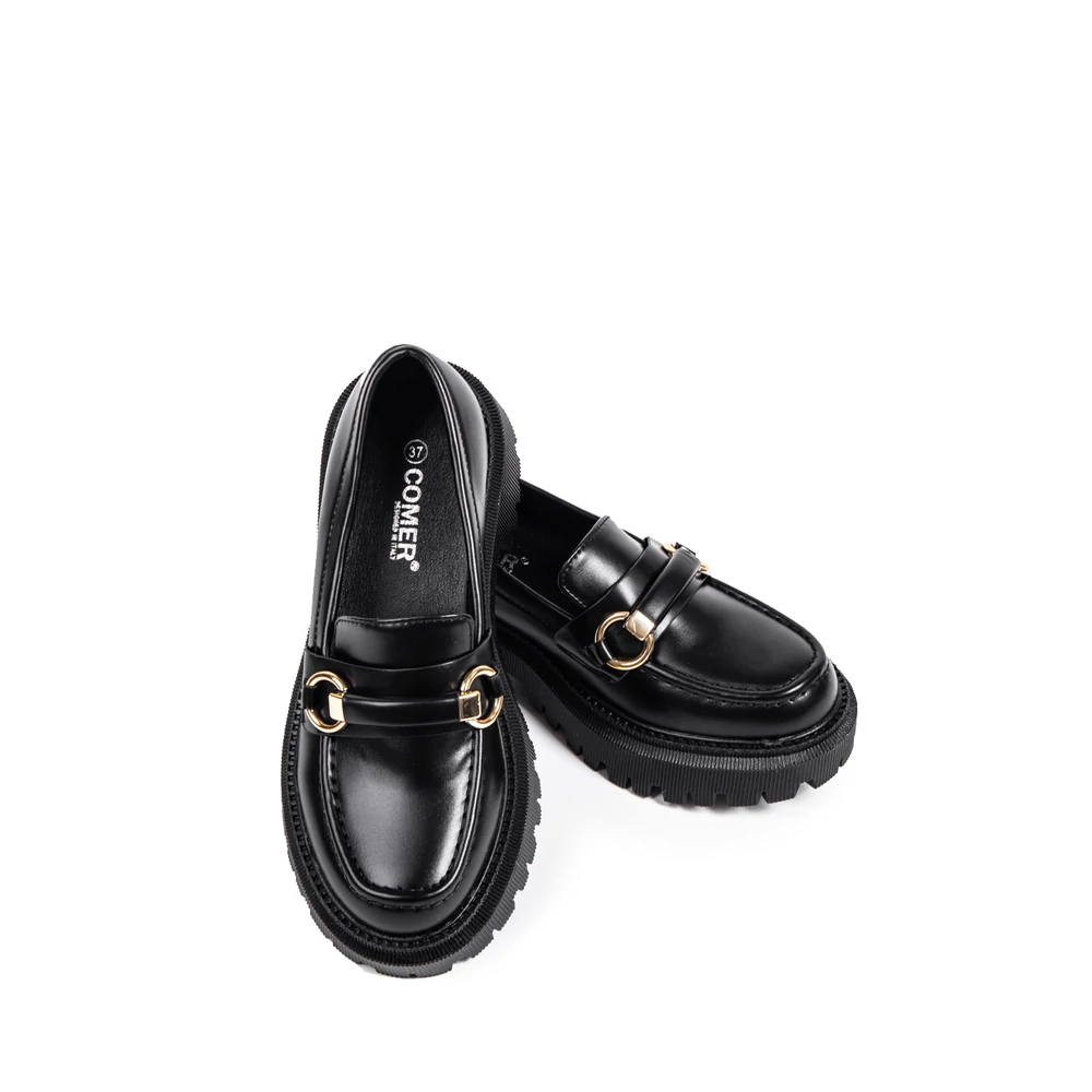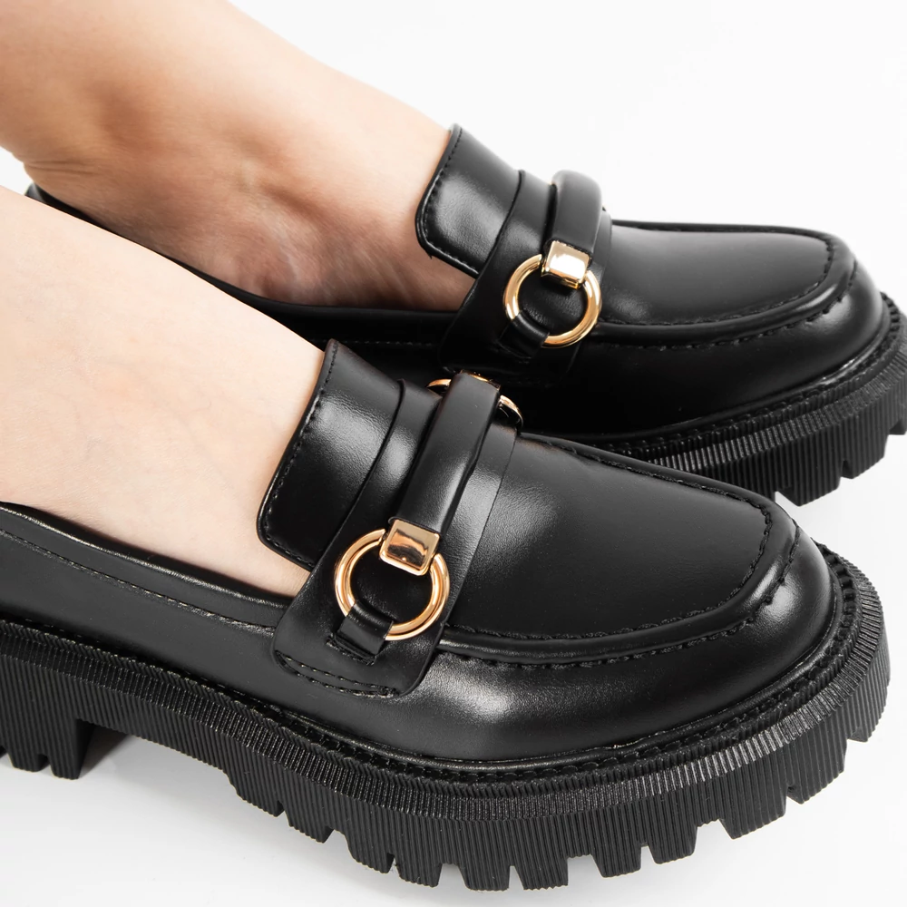 Matt Fekete Platformos Talpú Női Loafer