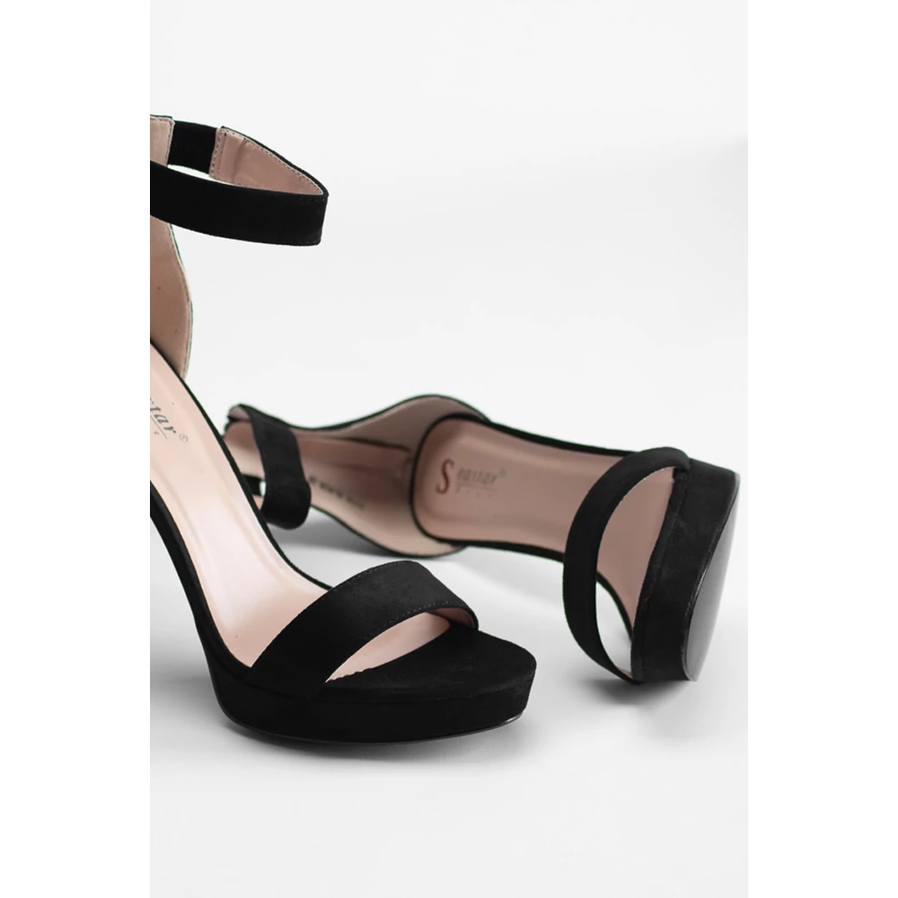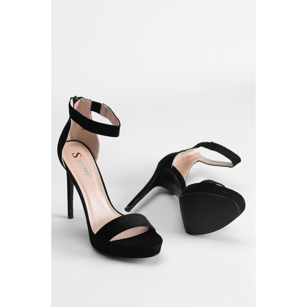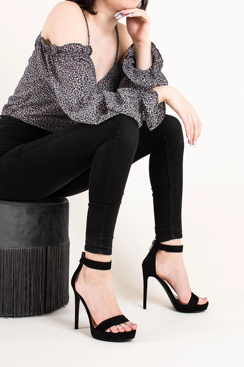 Fekete Elegáns Műbőr Magassarkú Szandál
