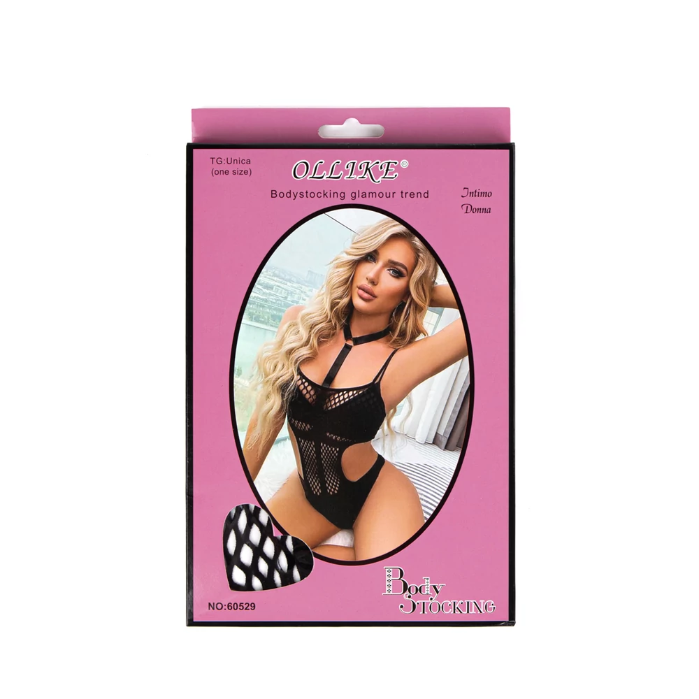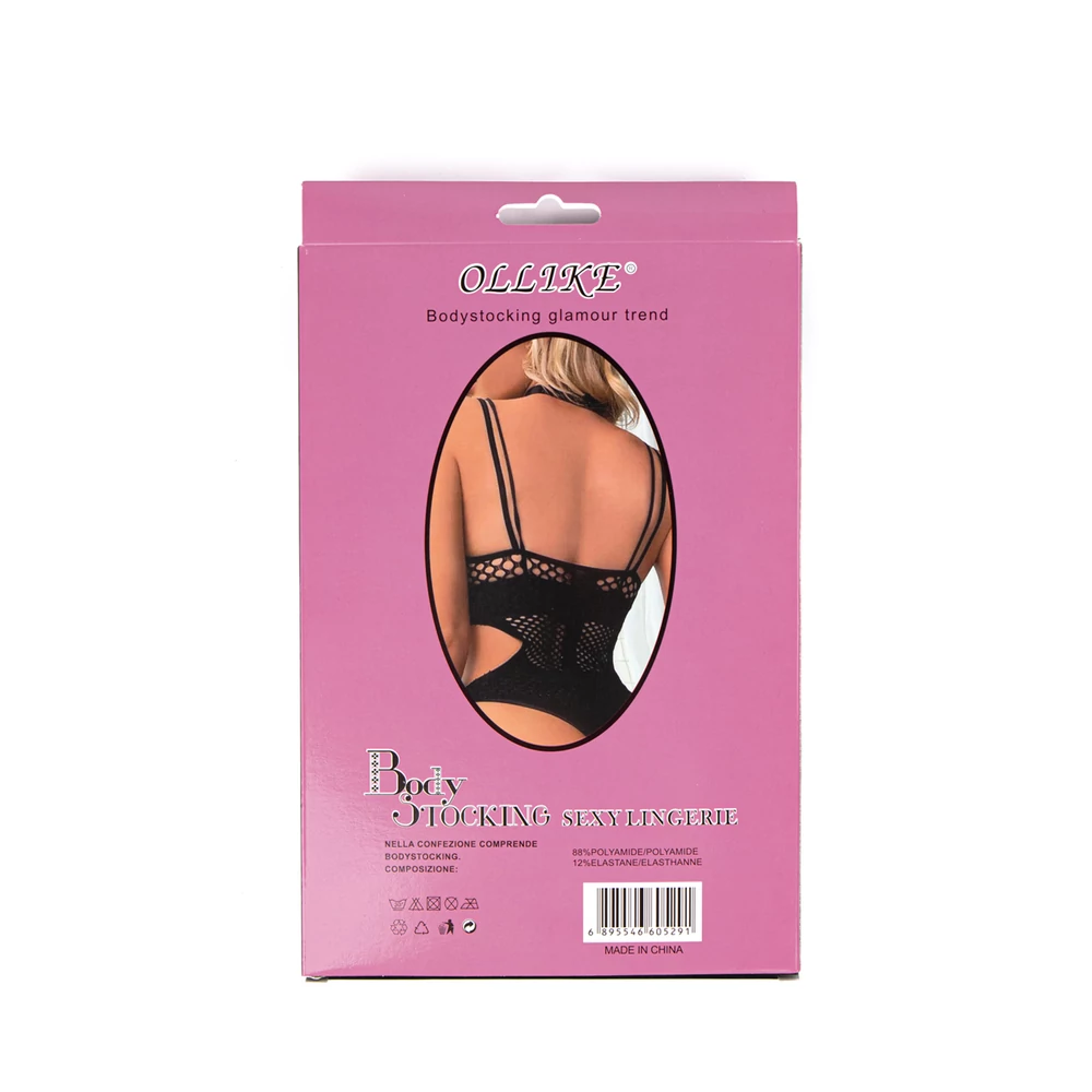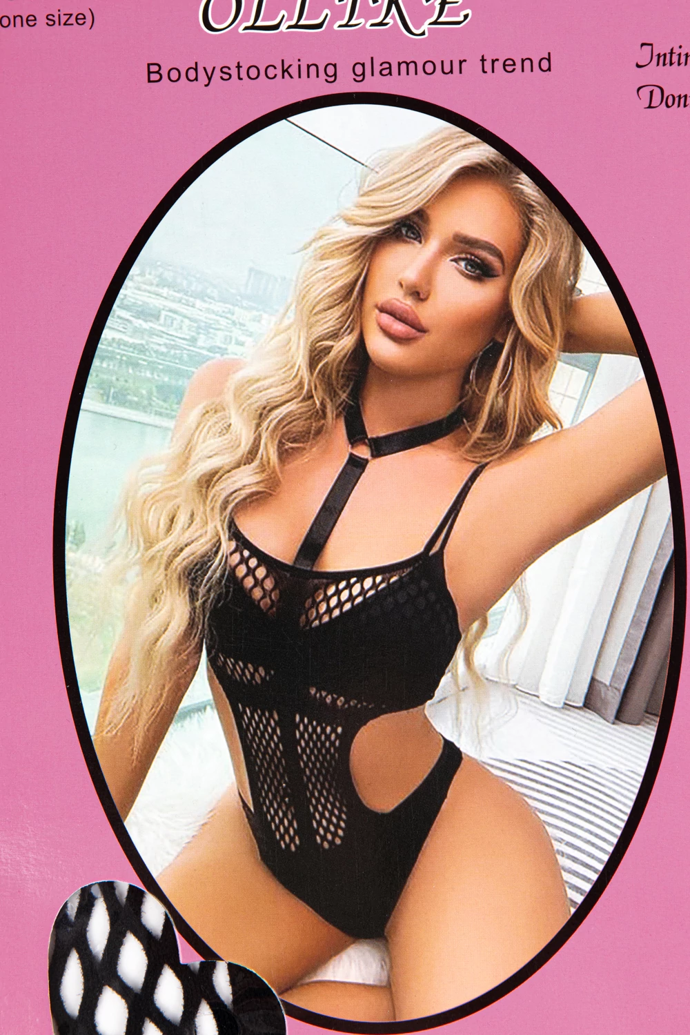 Ollike Fekete Áttetsző Csipke Bodystocking Csillogó Kövekkel