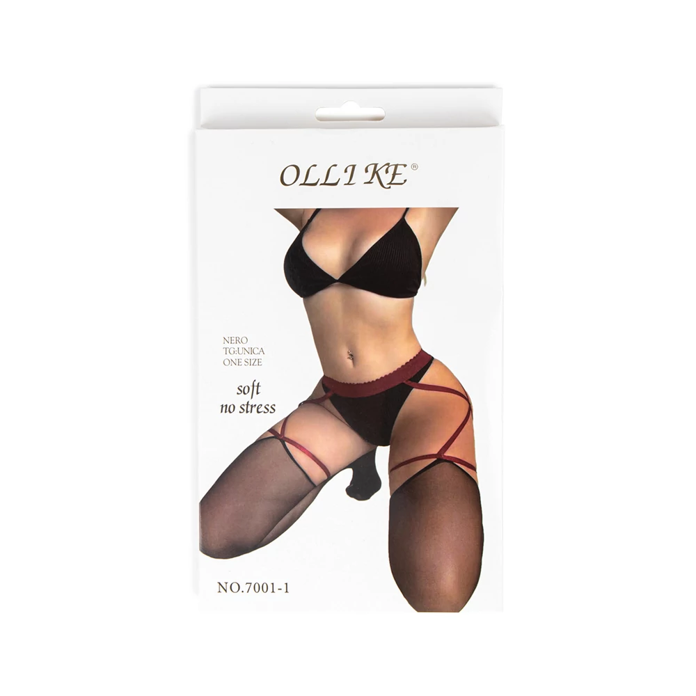 Ollike Fekete Áttetsző Csipke Bodystocking Csillogó Kövekkel