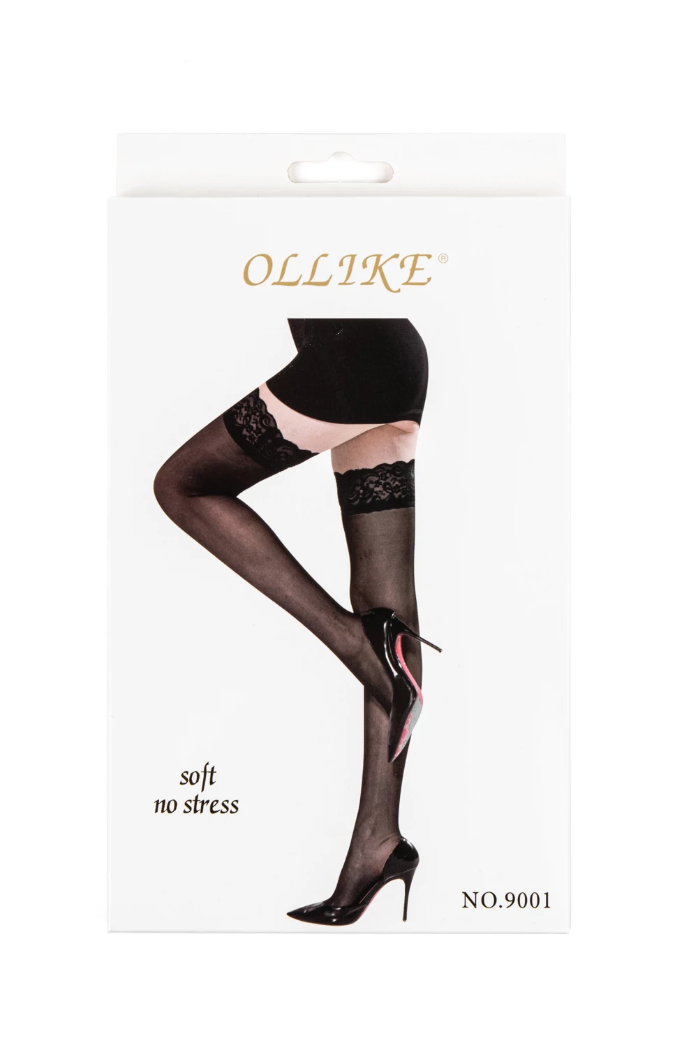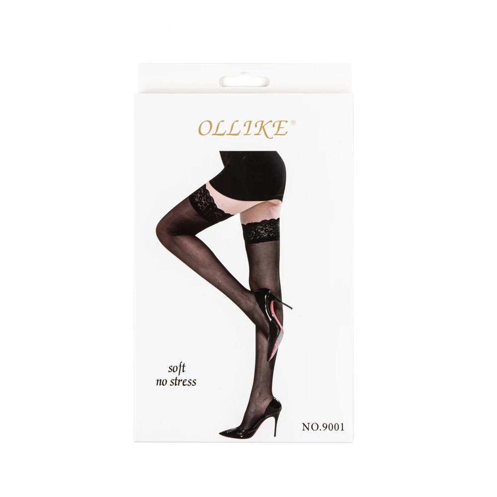 OLLIKE Fekete Neccharisnya Csipkés Harisnyatartó Kialakítással