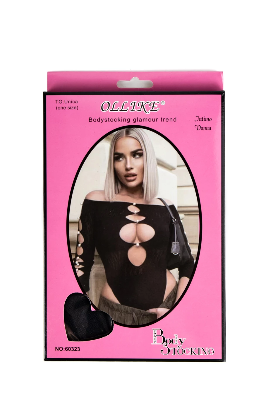 Ollike Fekete Gyöngyökkel Díszített Áttetsző Bodystocking
