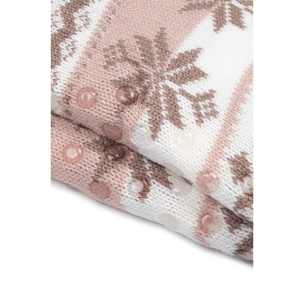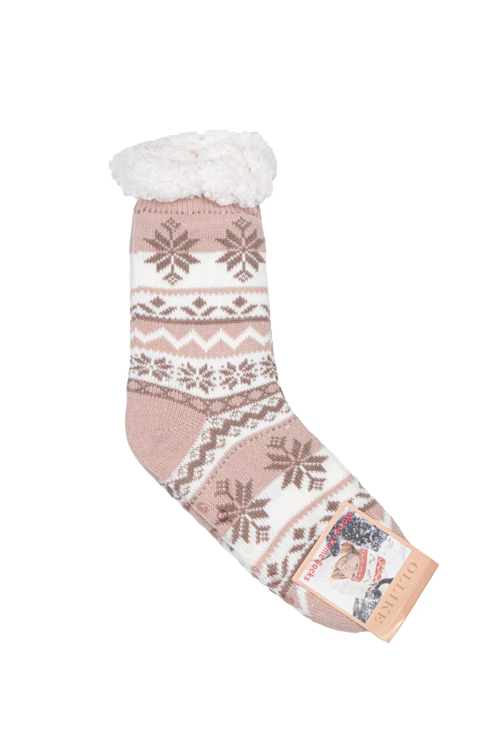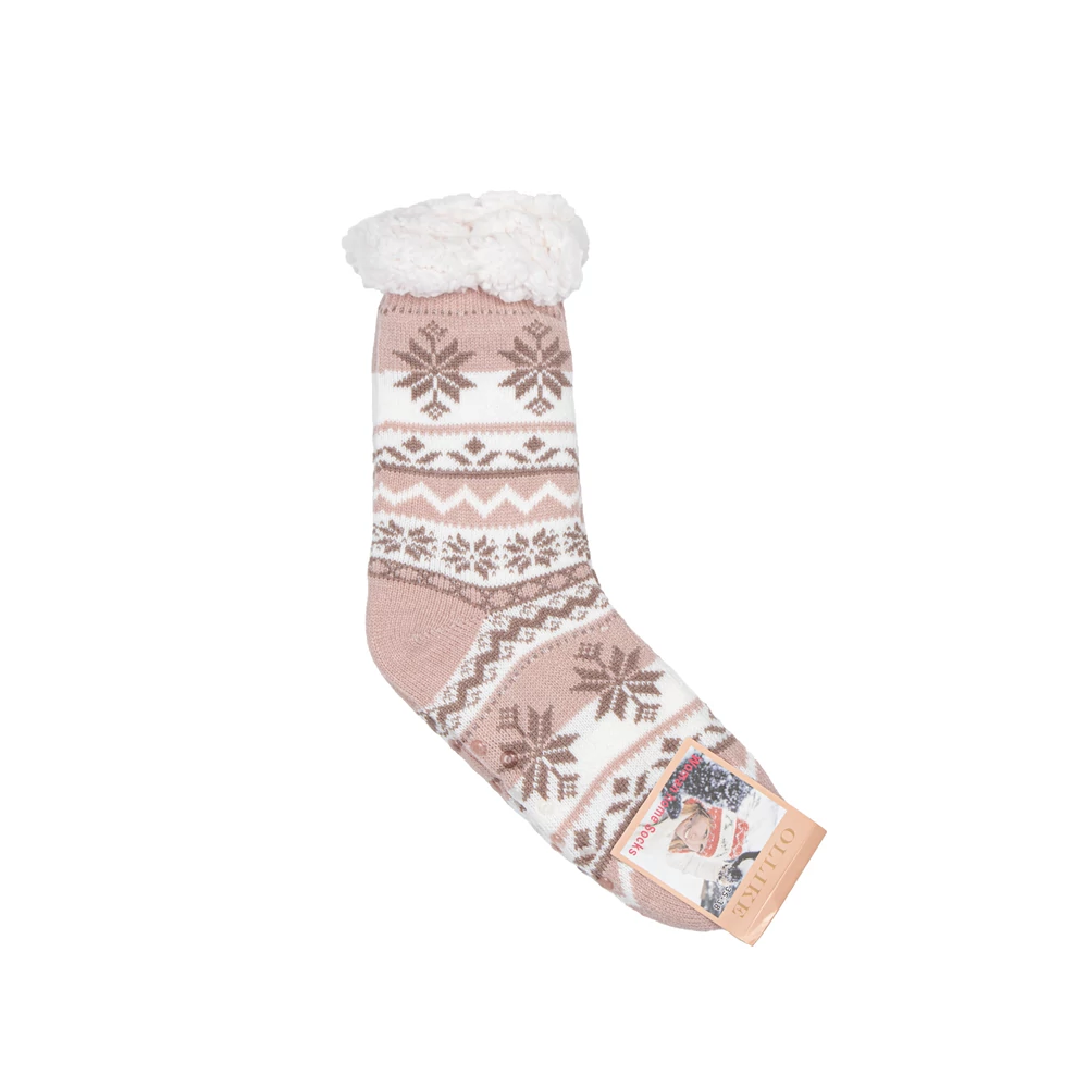 Ollike Rózsaszín-Bézs-Fehér Téli Mintás Bélelt Hosszúszárú Zokni