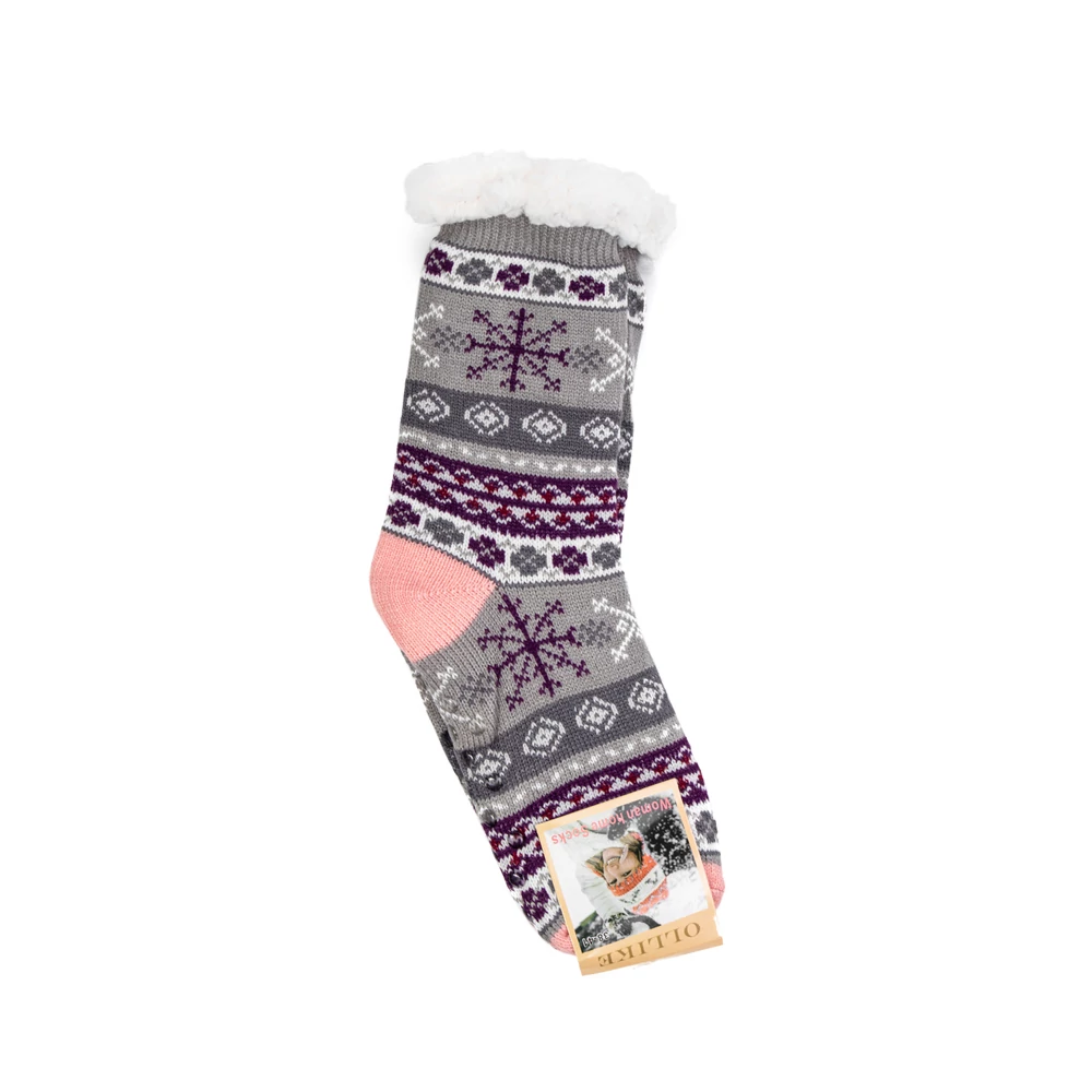 Ollike Téli Mintás Szürke Bélelt Hosszúszárú Zokni