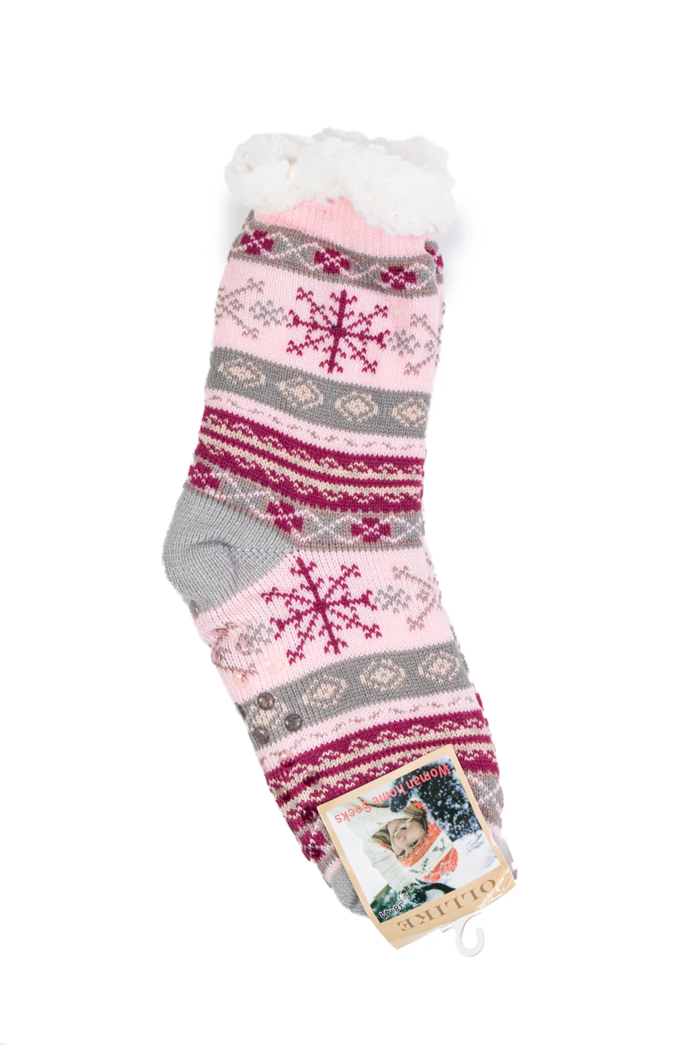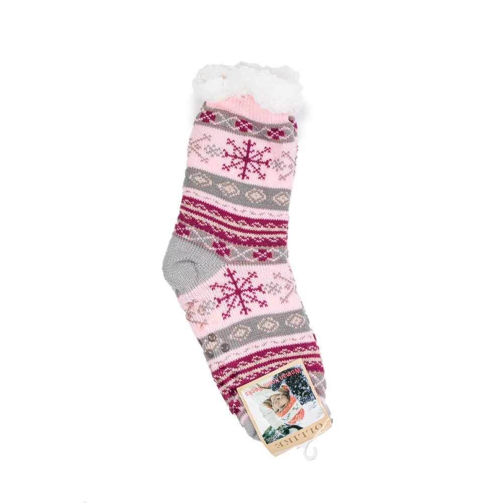 Ollike Téli Mintás Világos Rózsaszín Bélelt Hosszúszárú Zokni