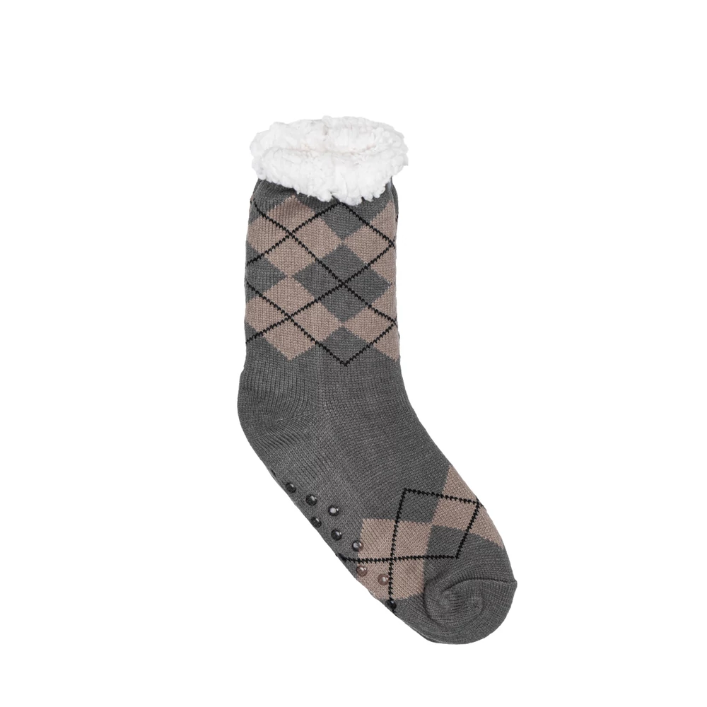 Ez a bélelt, vastag zokni tökéletesen melegíti a lábakat a hideg téli napokon. Puha anyaga és ünnepi mintája igazi hangulatot teremt az otthon töltött pillanatokhoz. Rugalmas kialakítása és belső bélése garantálja a kényelmet és a melegséget. A zokni alján gumikorongok találhatók, amelyek segítenek megakadályozni a csúszást.