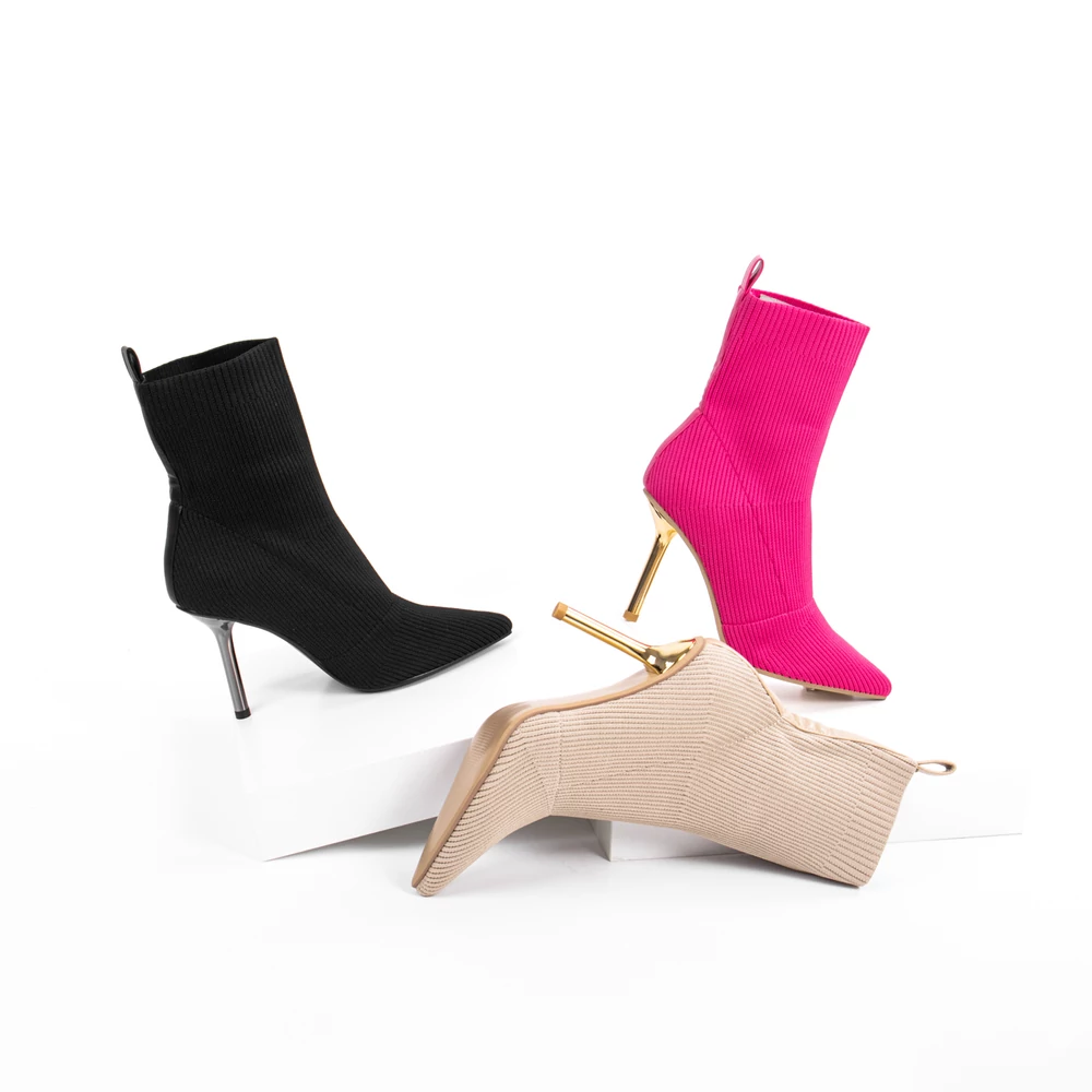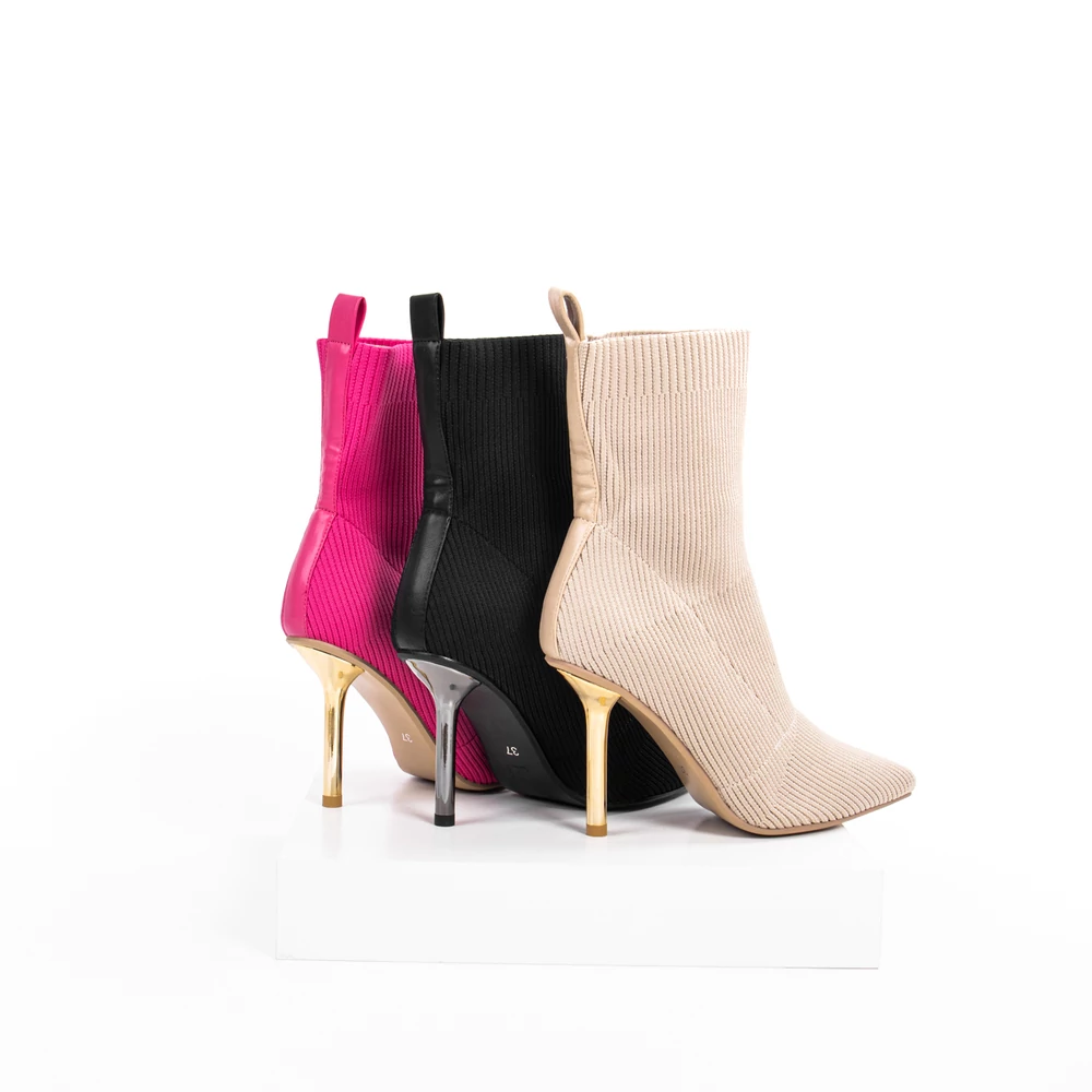Letisztult, elegáns, textil bokacsizma, amely tűsarkának köszönhetően igazán nőies darab.