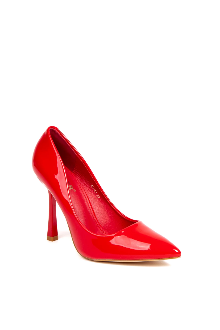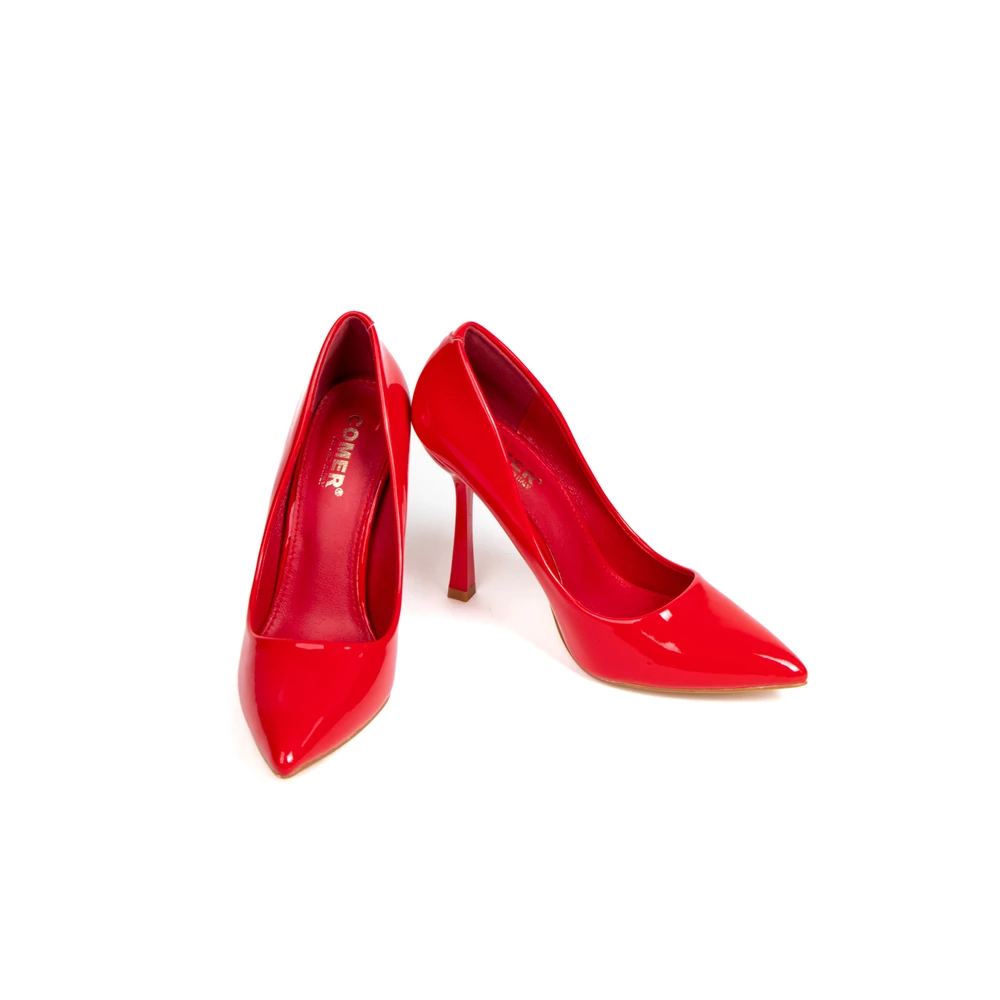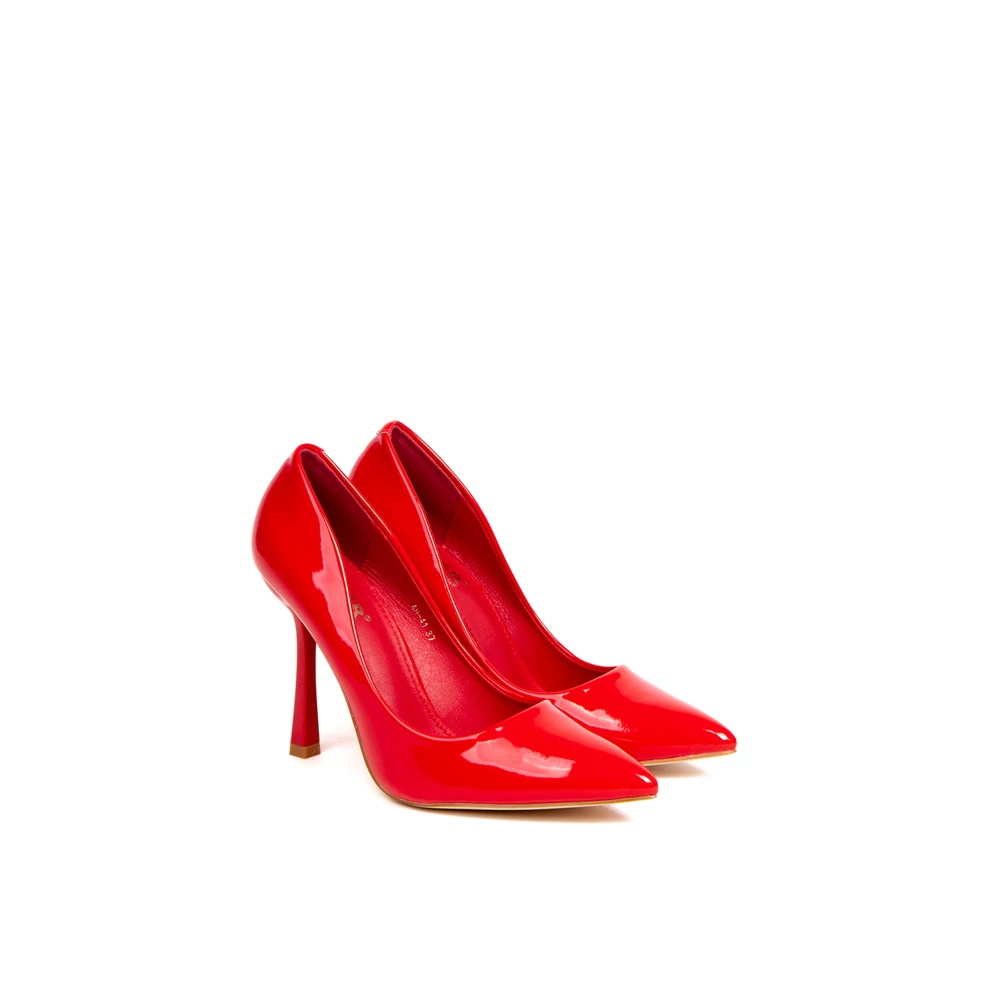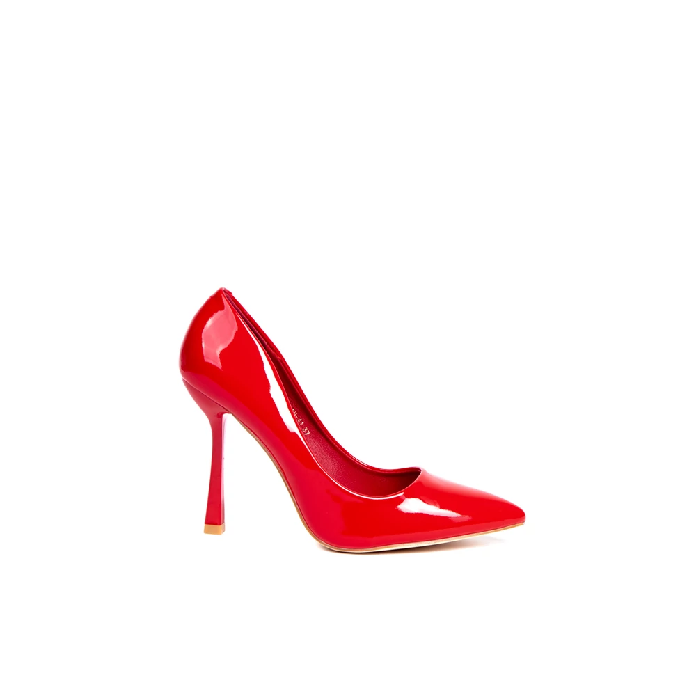 Piros Lakkozott Alkalmi Cipő Extravagáns Tűsarokkal