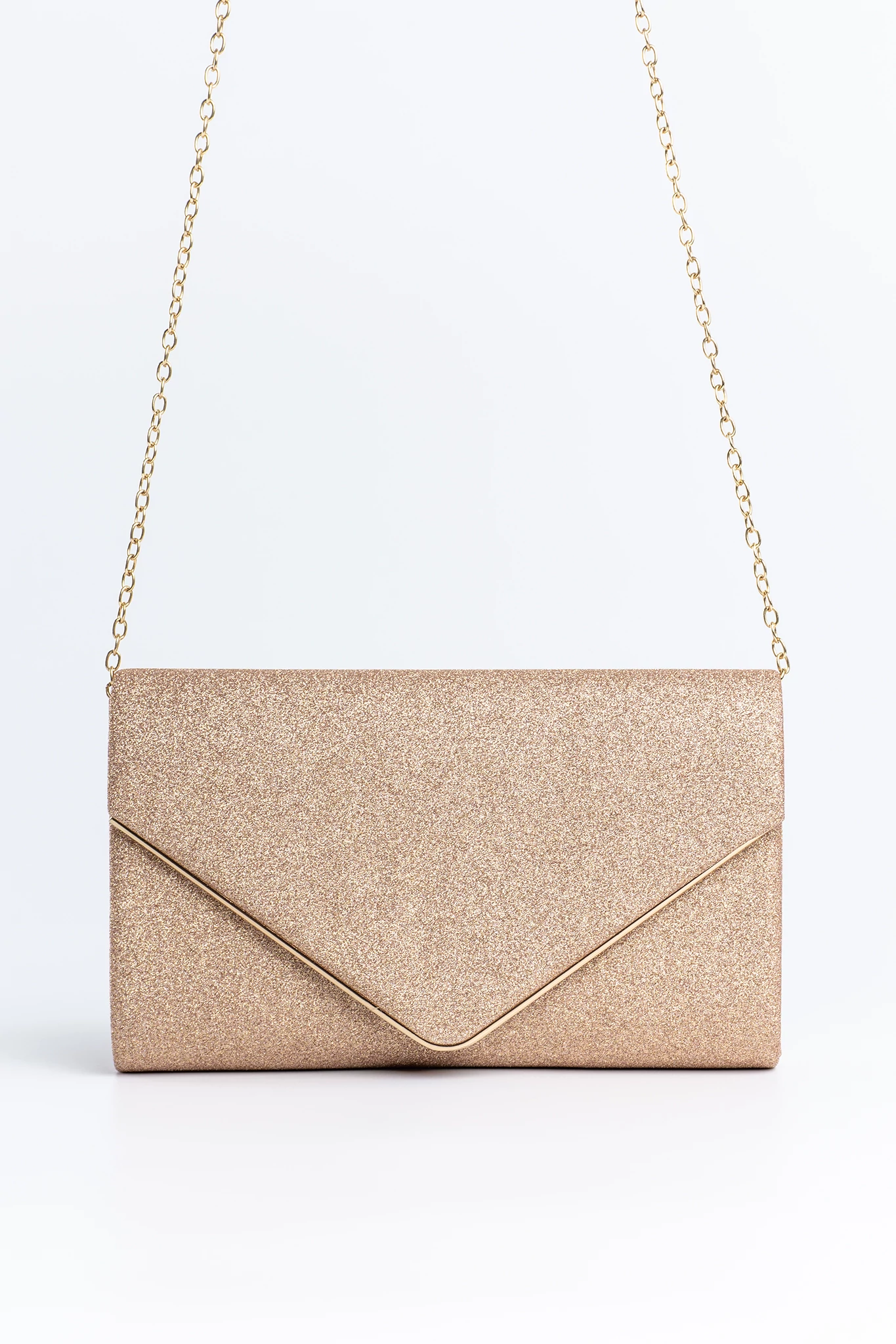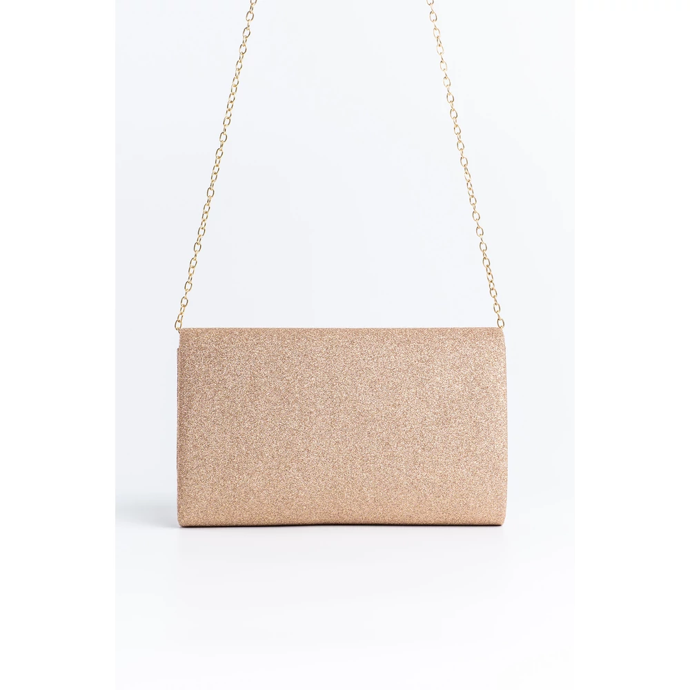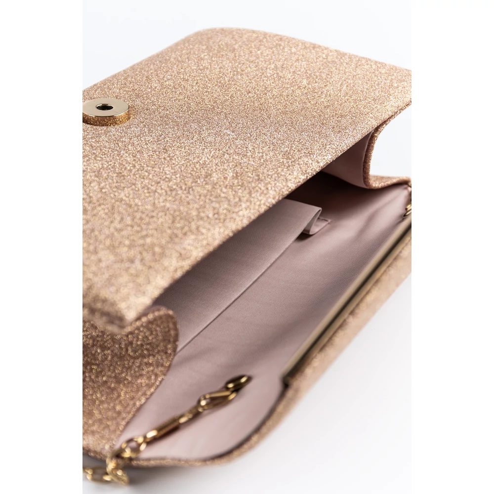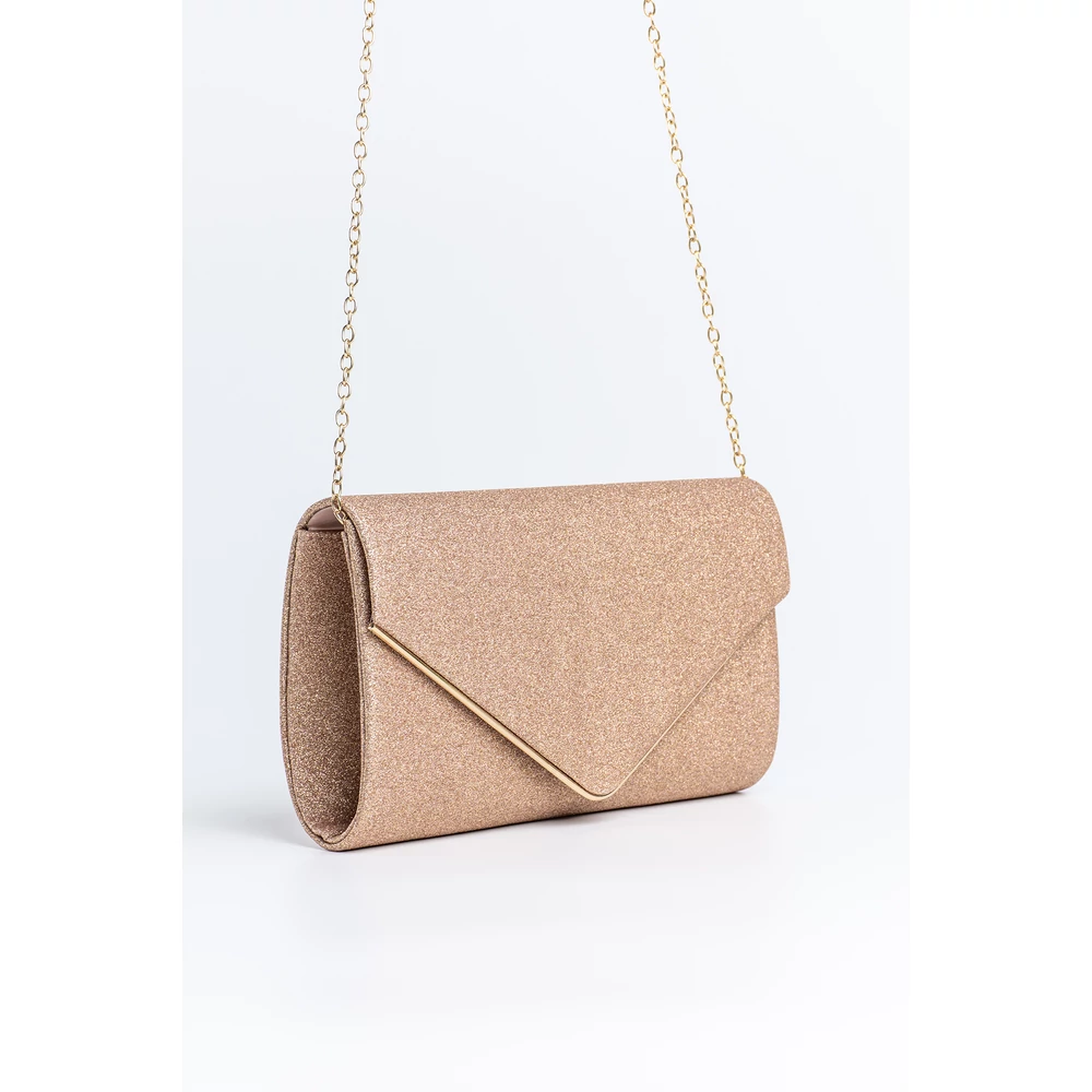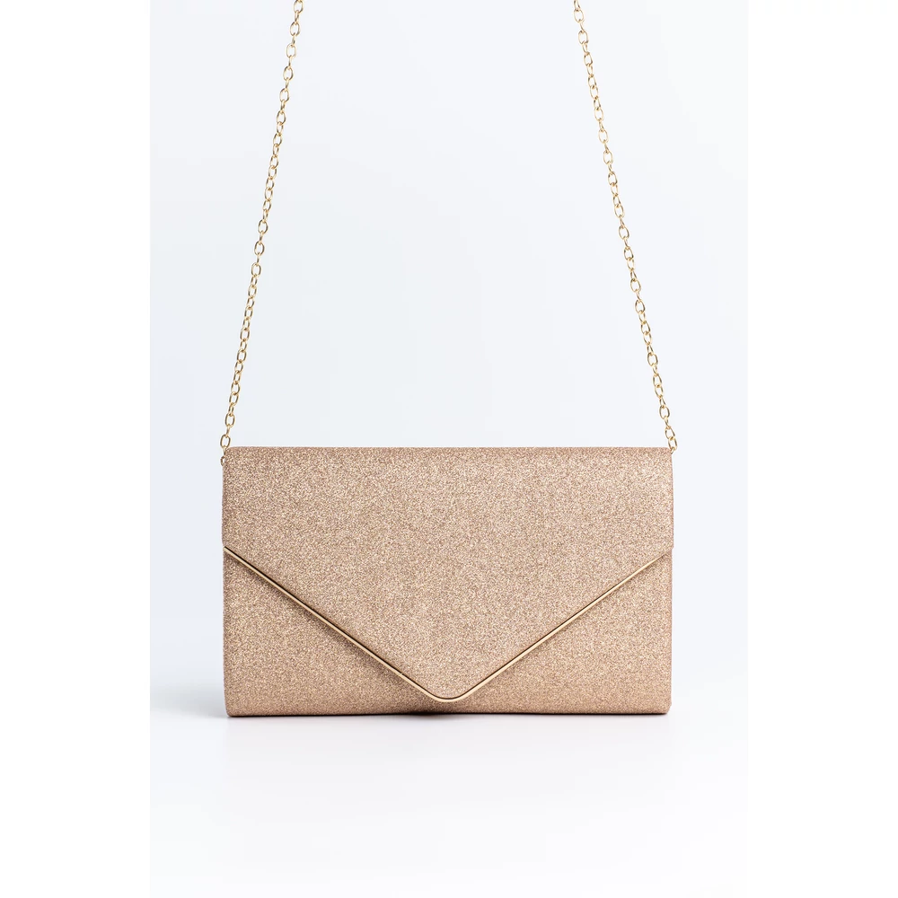 Csillogó, mágnes csattal, alkalmi kézitáska és válltáska egyben. Ezüst színű lánccal.