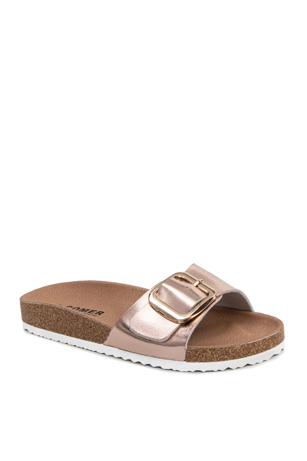 Az eleje nyitott, pántja csatos (3 állás van), talpa vastag, enyhe haránt emeléssel, így hosszabb távon is kényelmes.