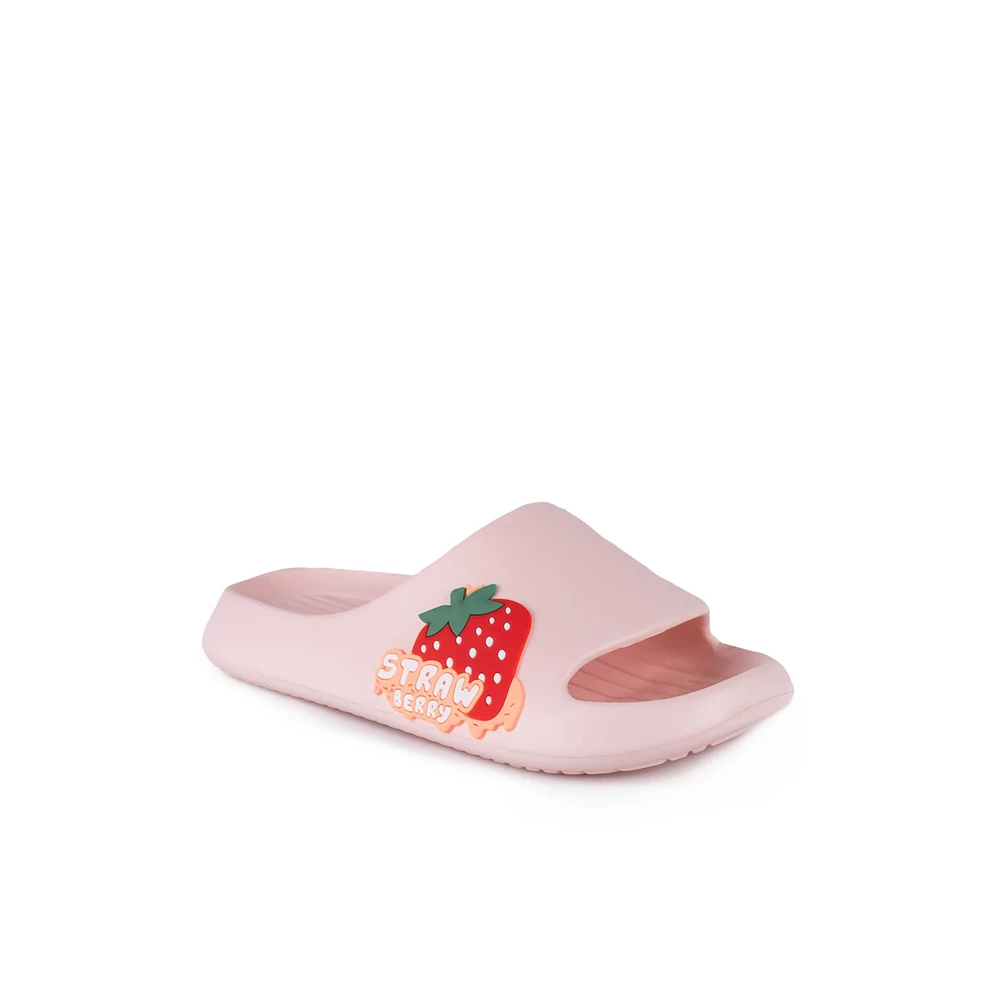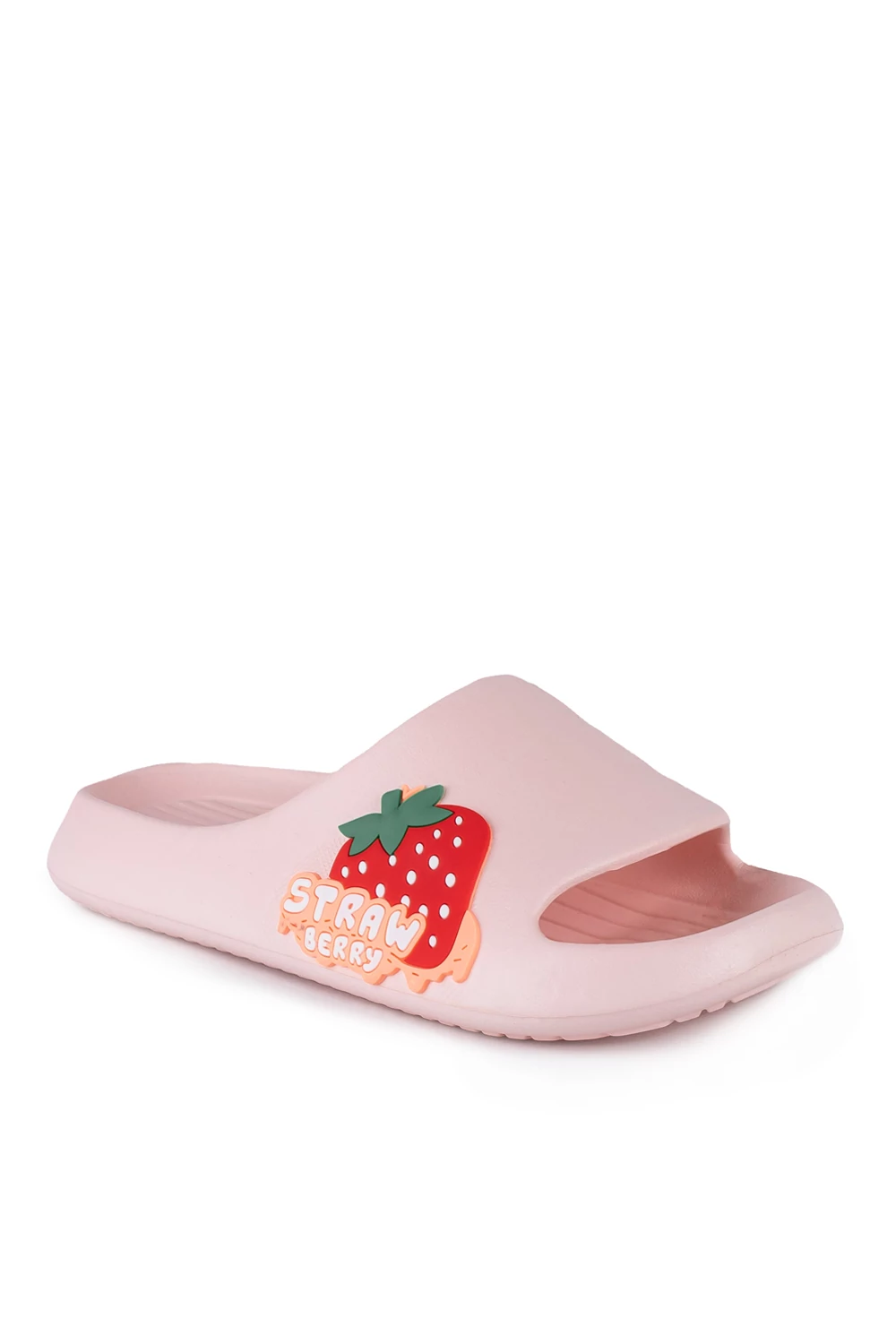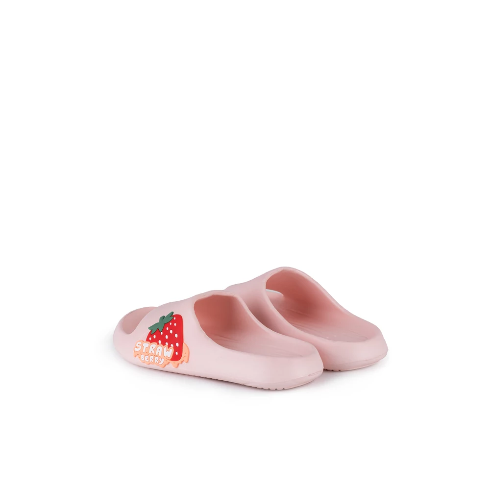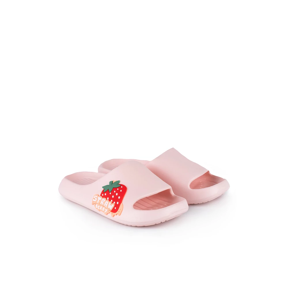 Klasszikus gumipapucs, epres díszítéssel, mely kényelmes viseletet biztosít.