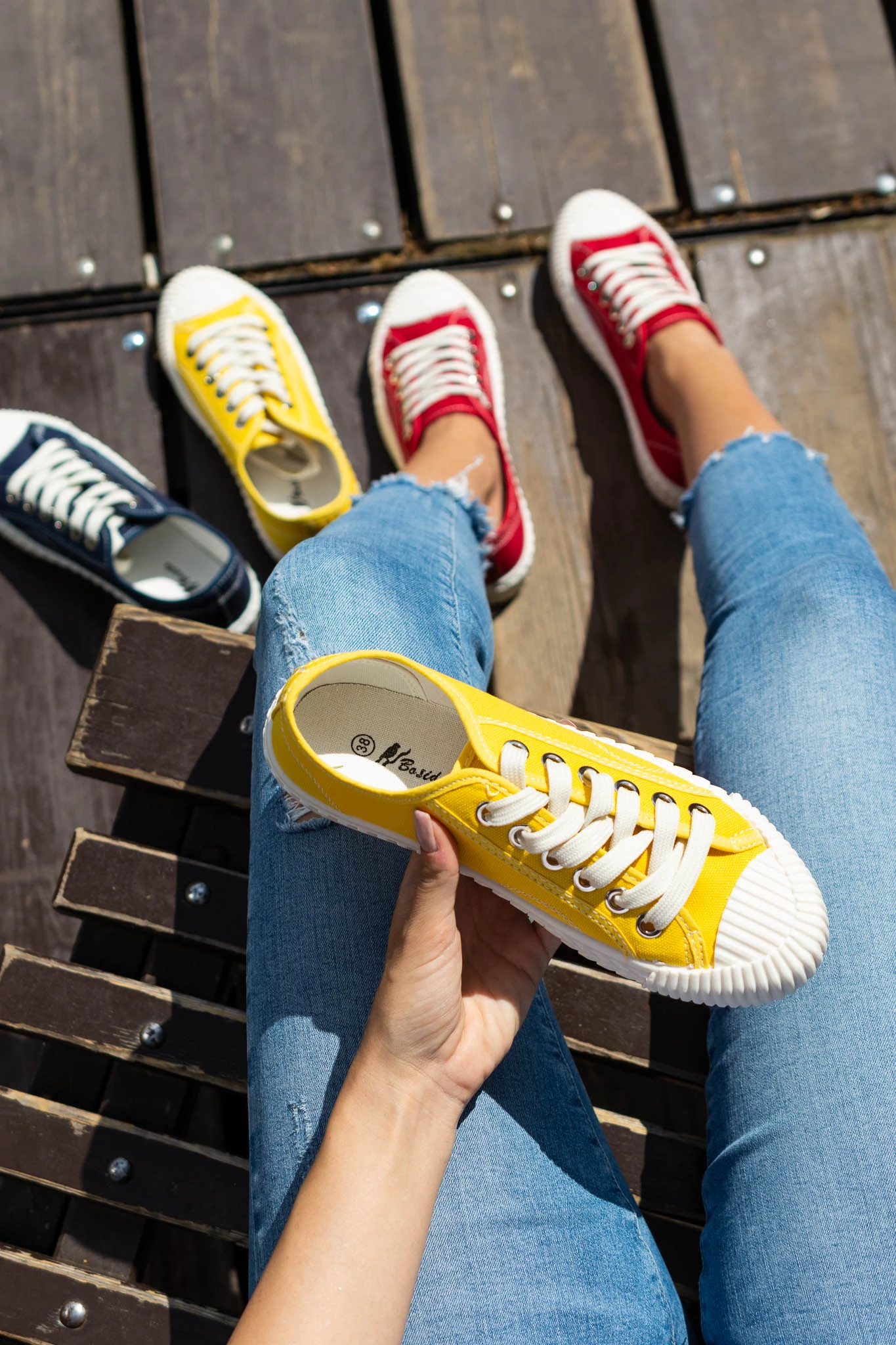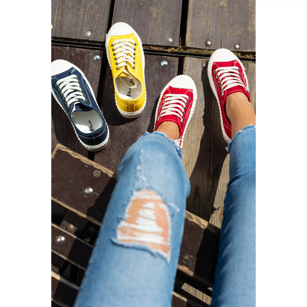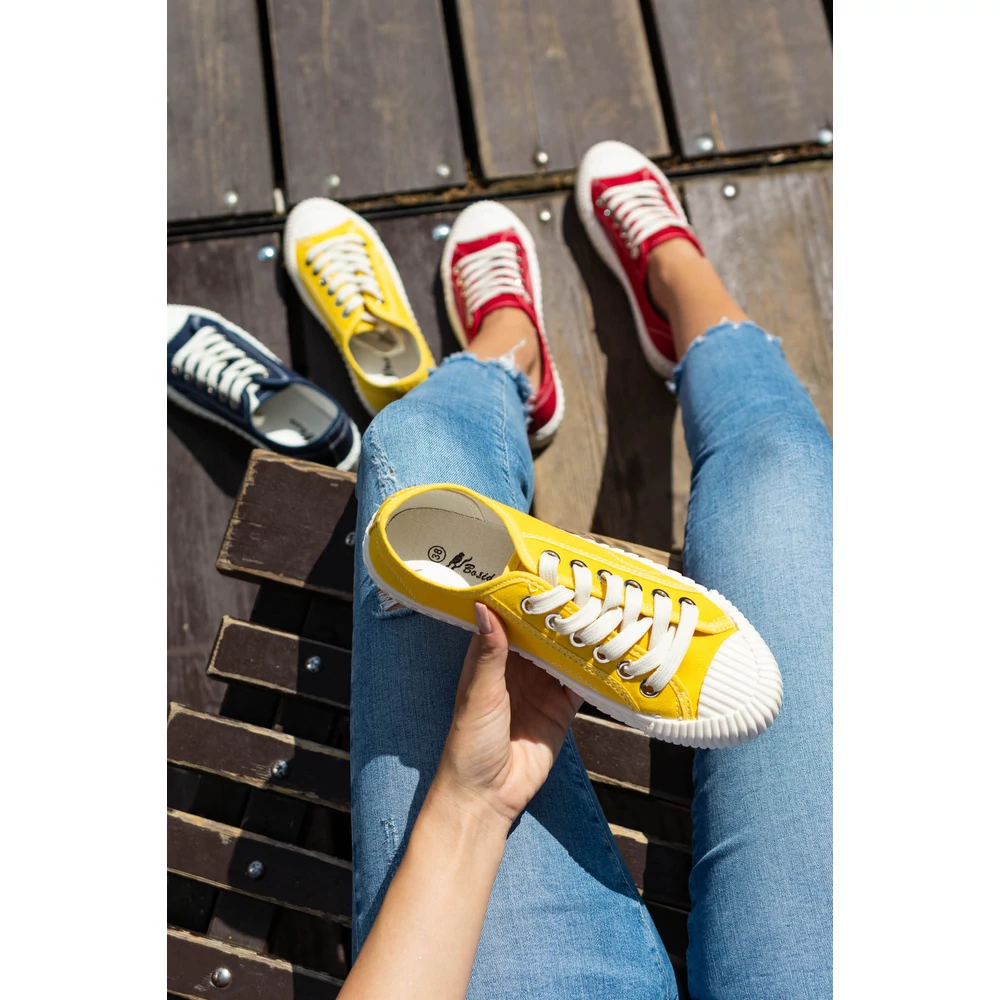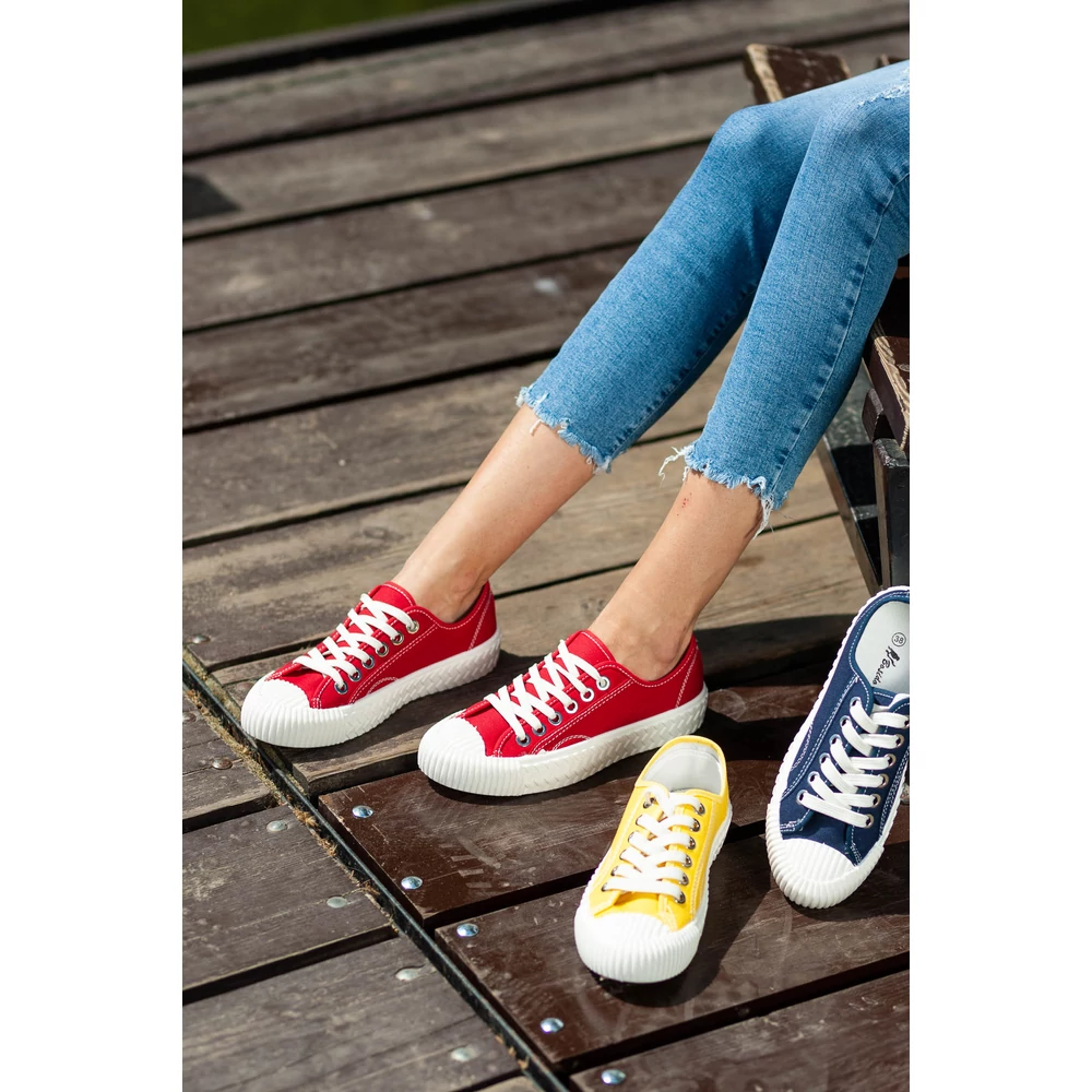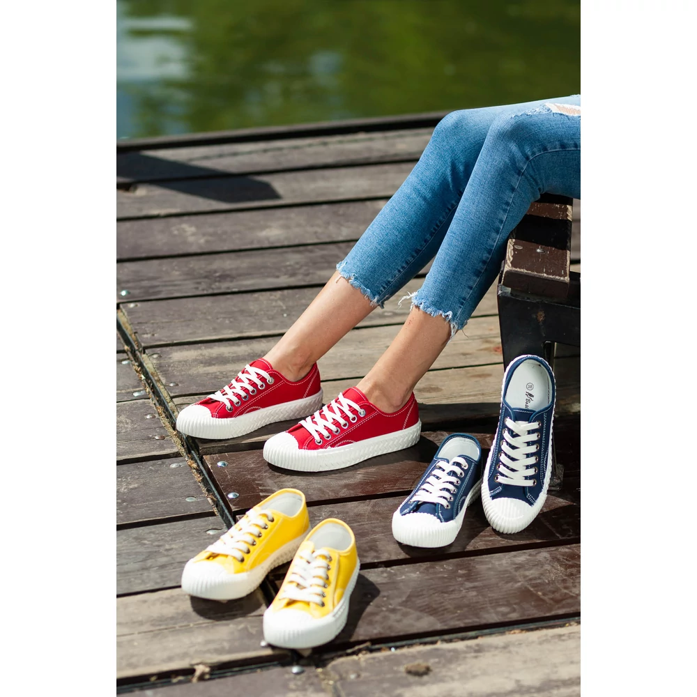 Klasszikus megjelenésű vászon tornacipő szolid színekben.