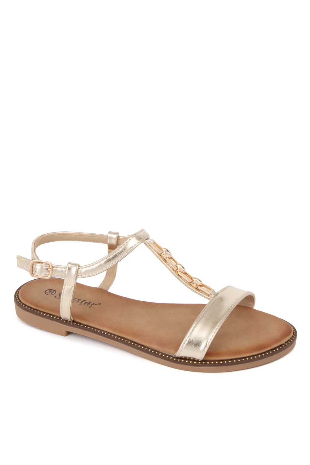 Divatos és nyárias női szandál csillogó lánccal díszítve, mely a legegyszerűbb öltözékeidet is képes feldobni.