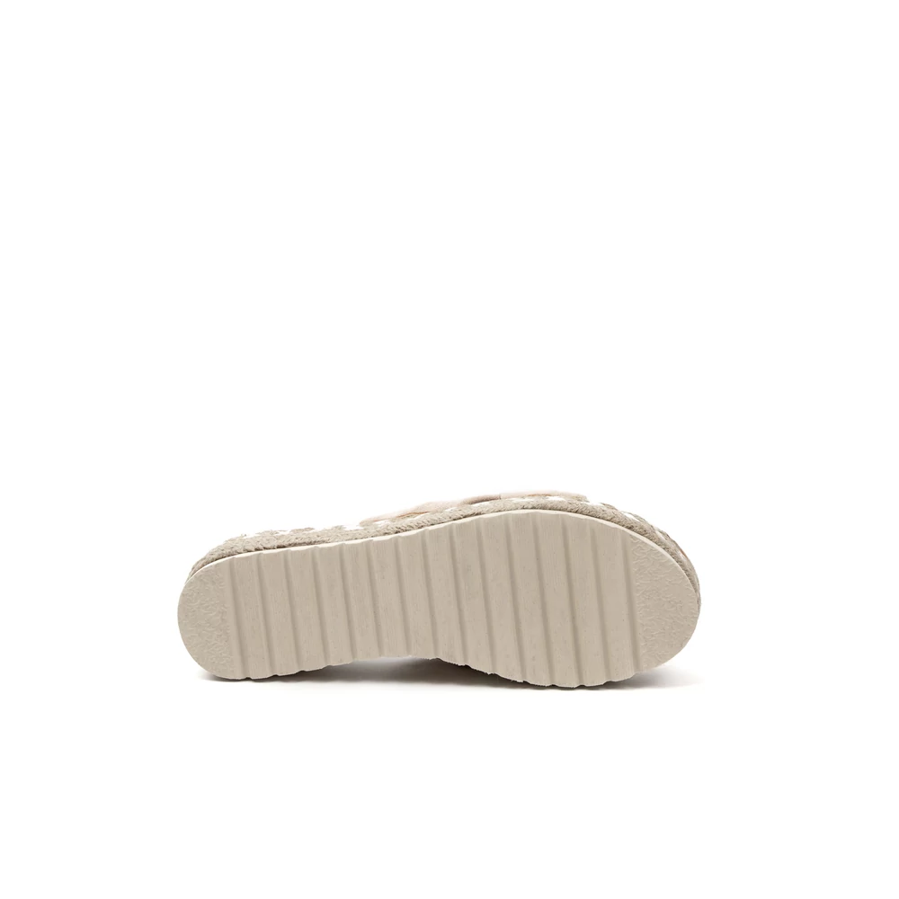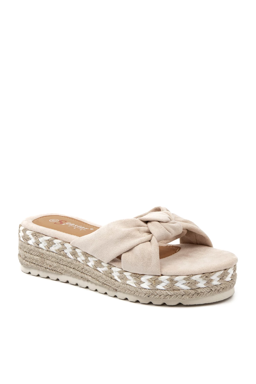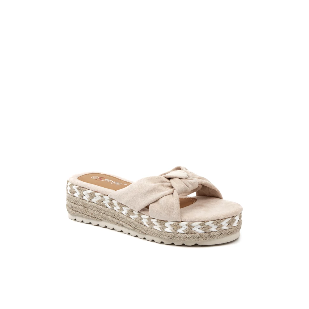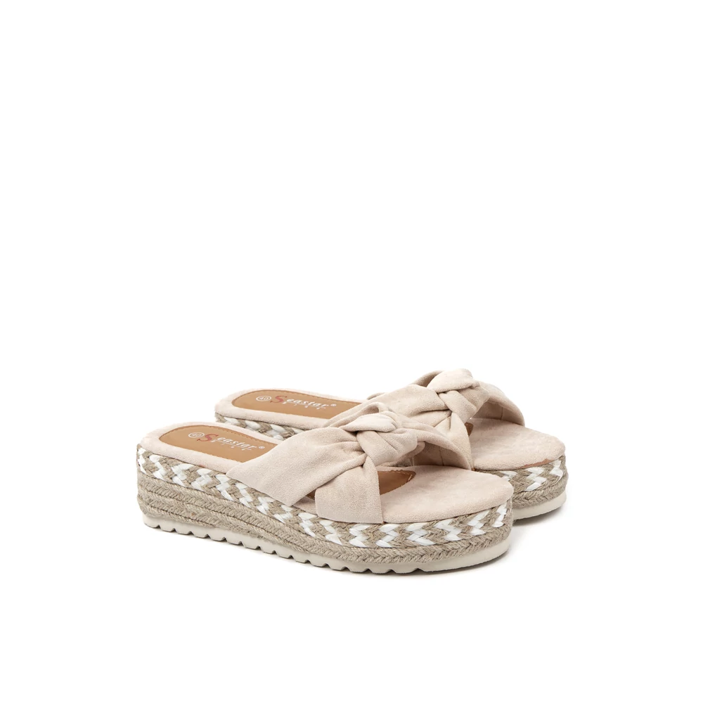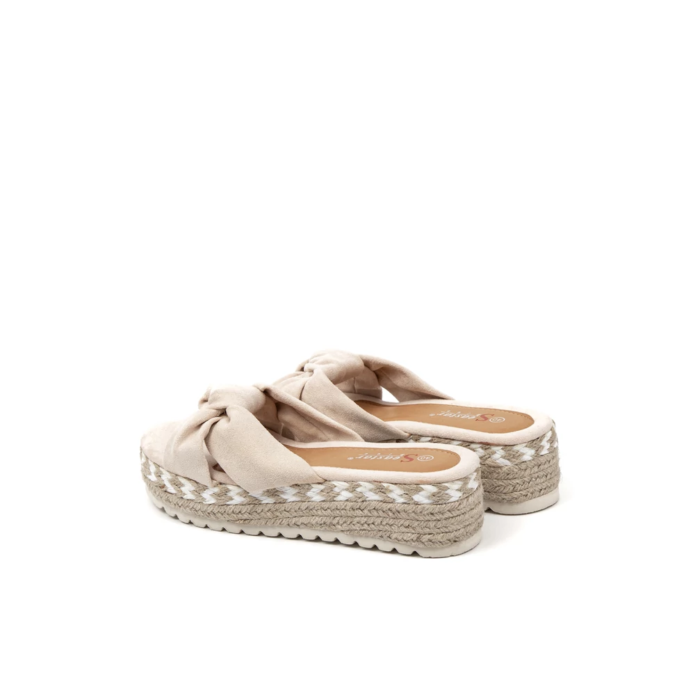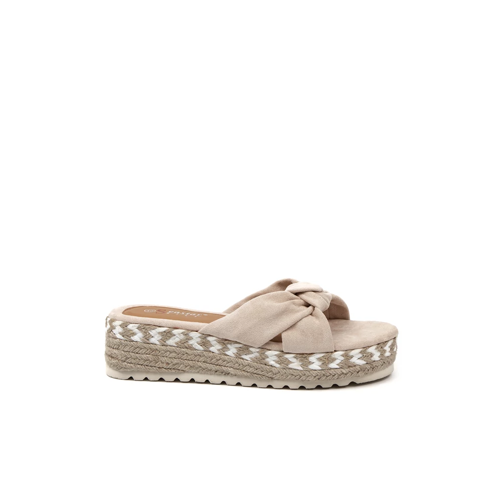 Puha művelúrból készült, csomózott pántú nyári papucs.