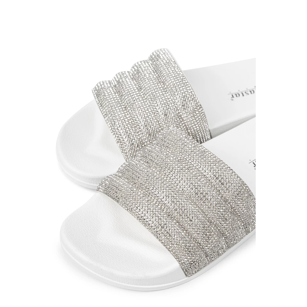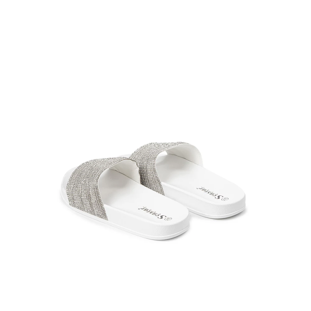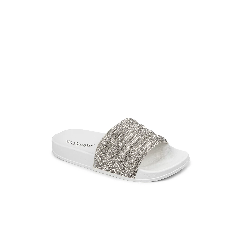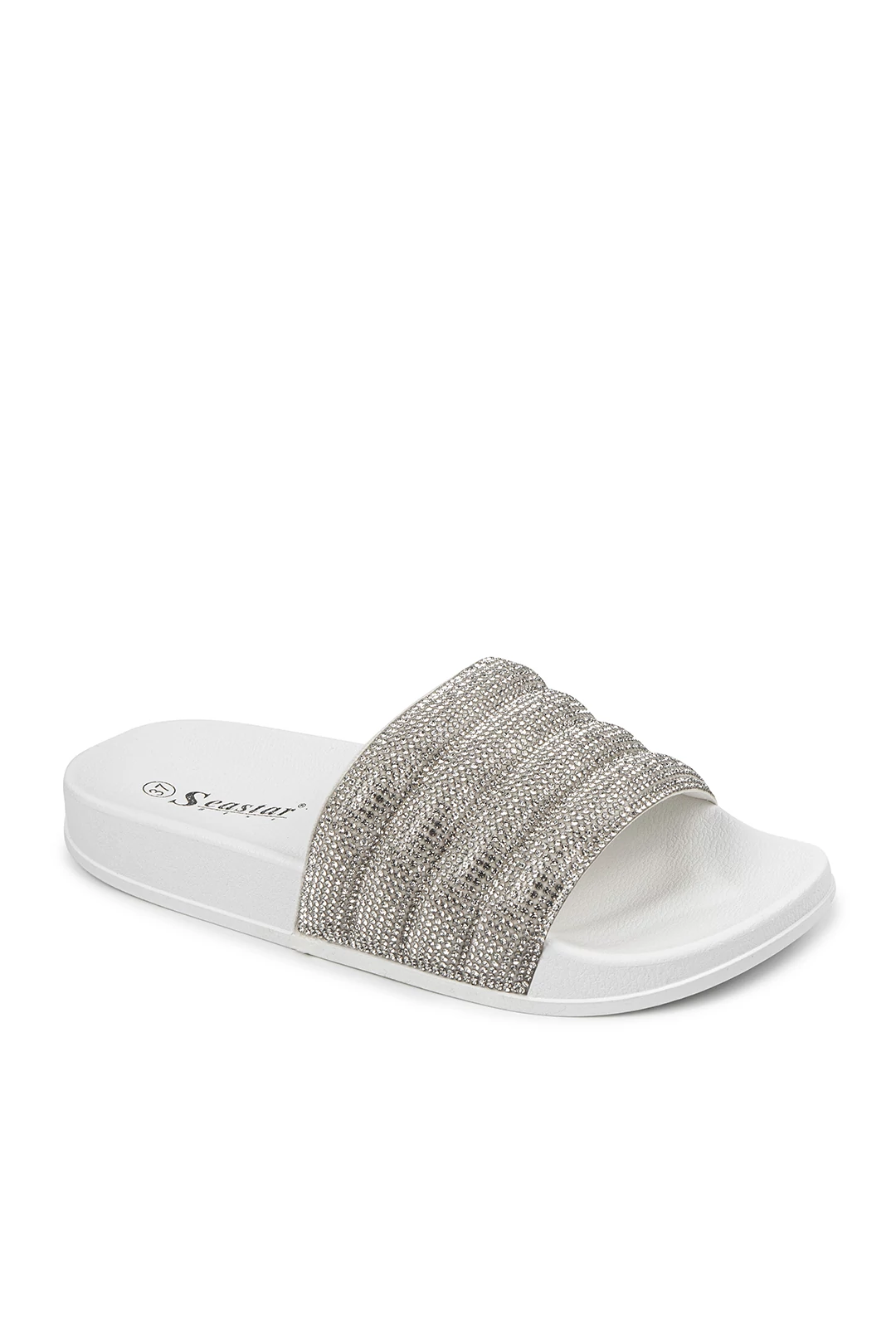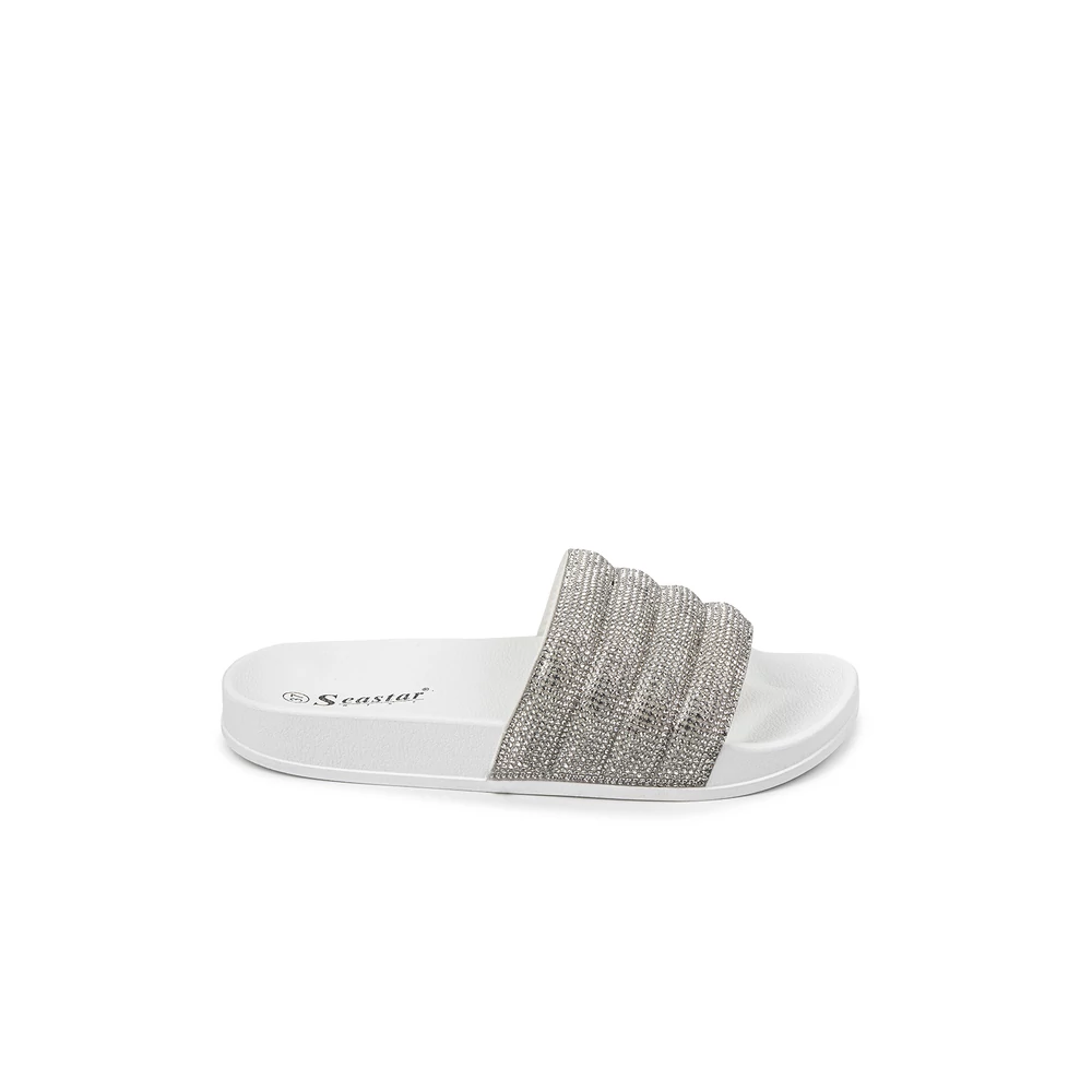 Igazán trendi és nőies, gyönyörűen csillogó fehér strasszkövekkel kirakott pántos papucs.