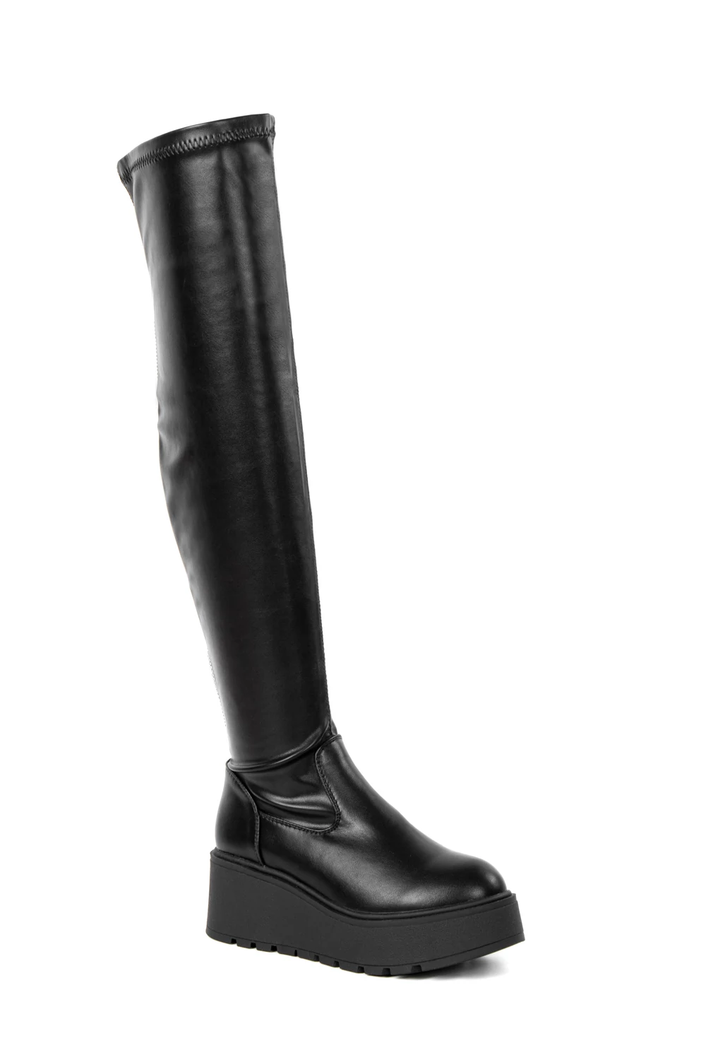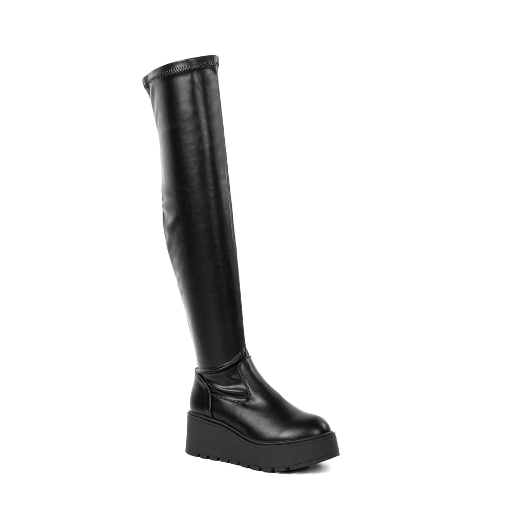 Yesmile Fekete Műbőr Platform Talpú Magasszárú Csizma
