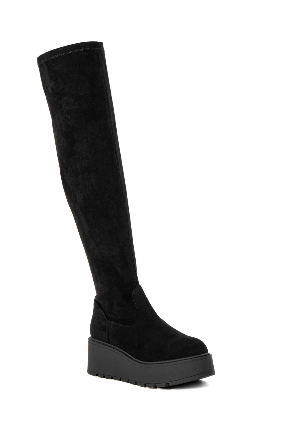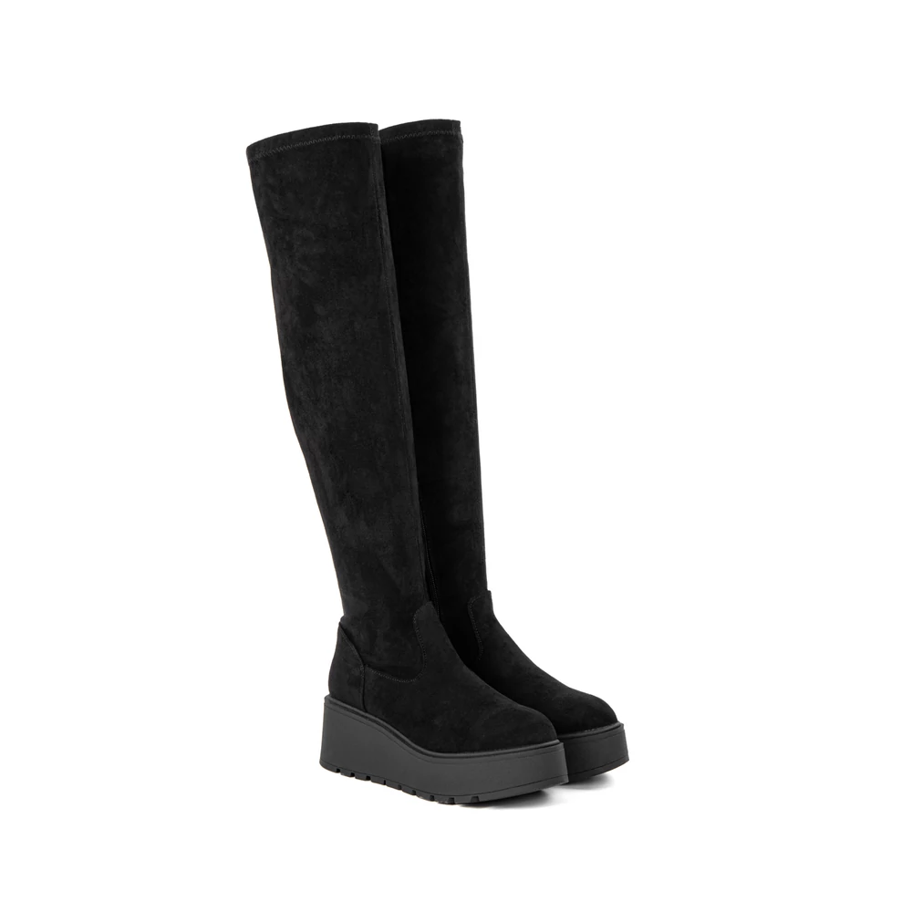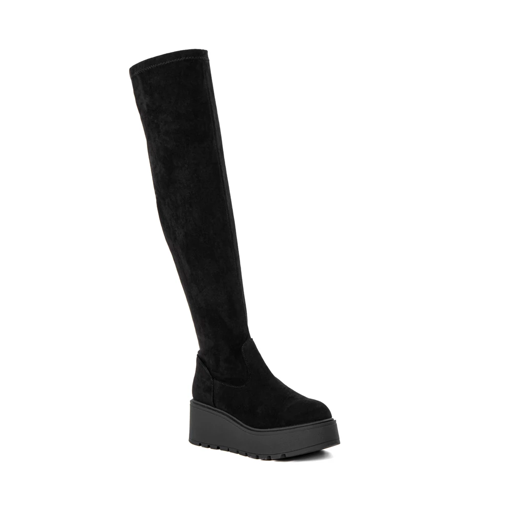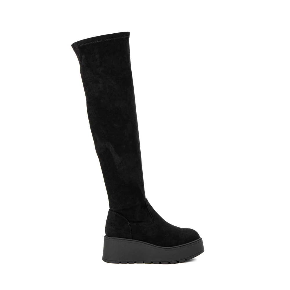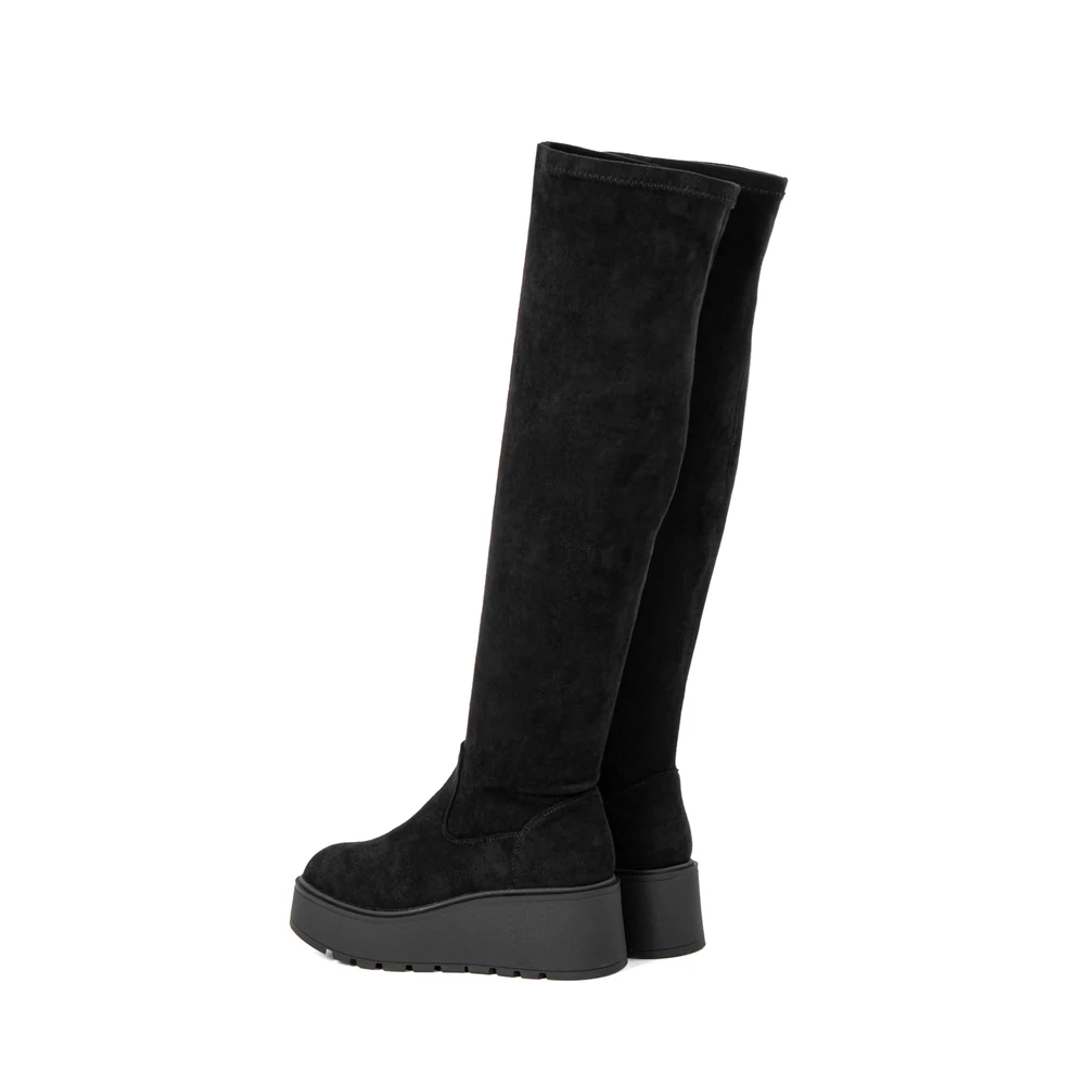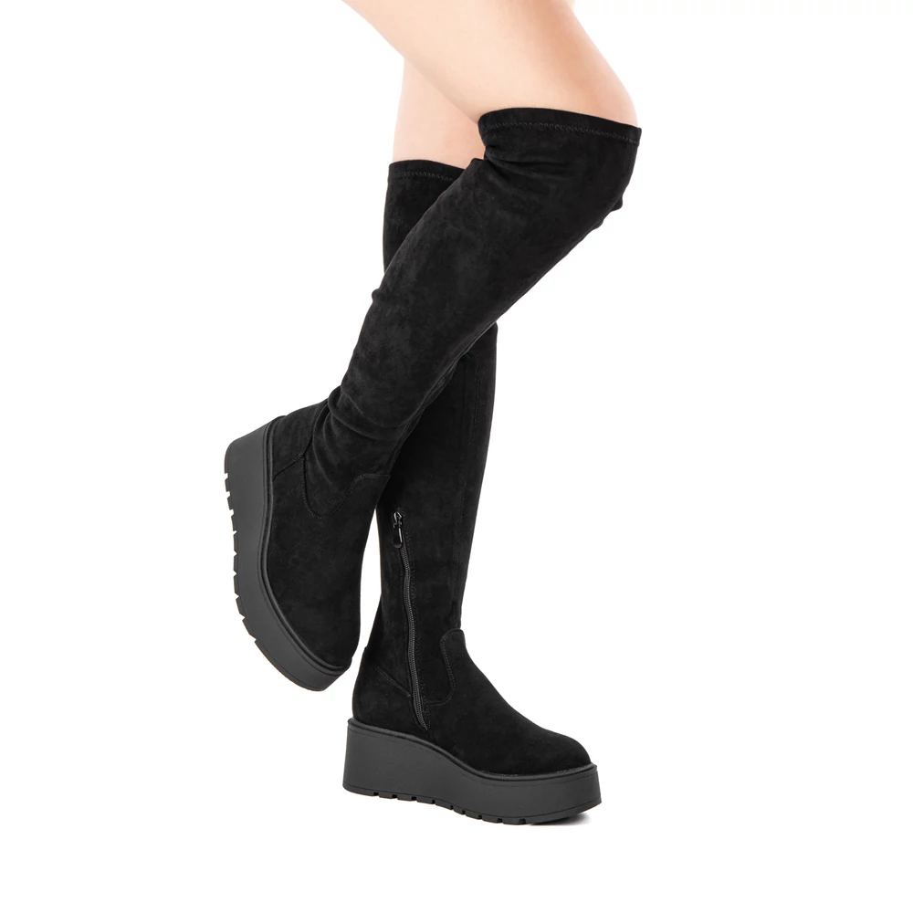 Seastar Fekete Művelúr Platformos Magasszárú Csizma
