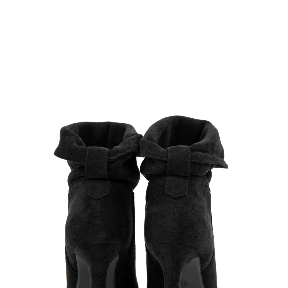 Bosido Fekete Műnubuk Bokacsizma Csipkés Szárral És Strasszköves Csattal