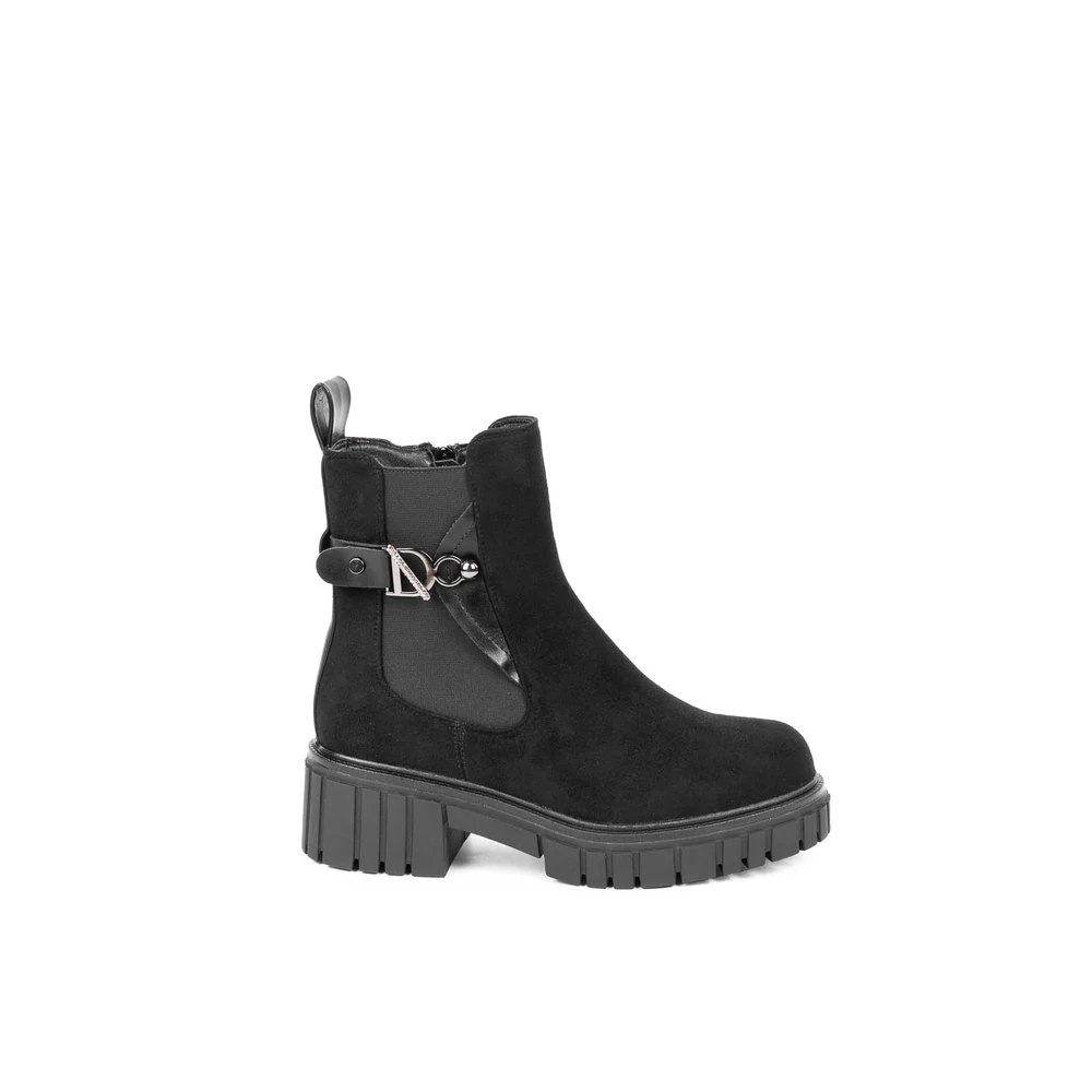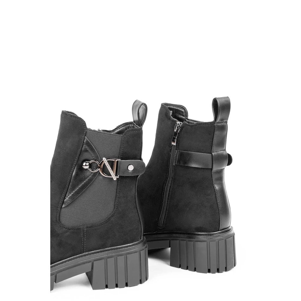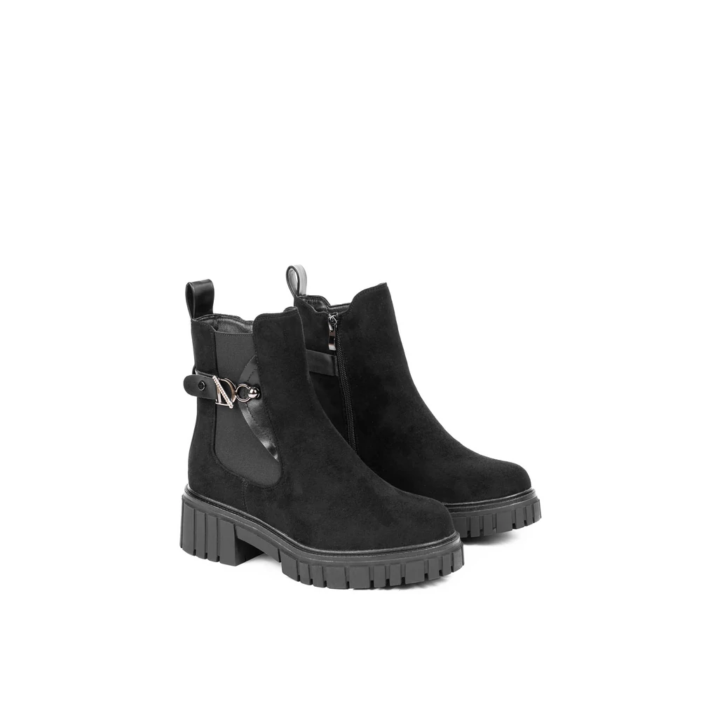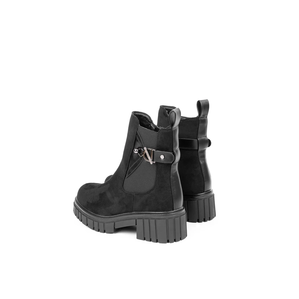Bosido Fekete Műnubuk Bokacsizma Csipkés Szárral És Strasszköves Csattal