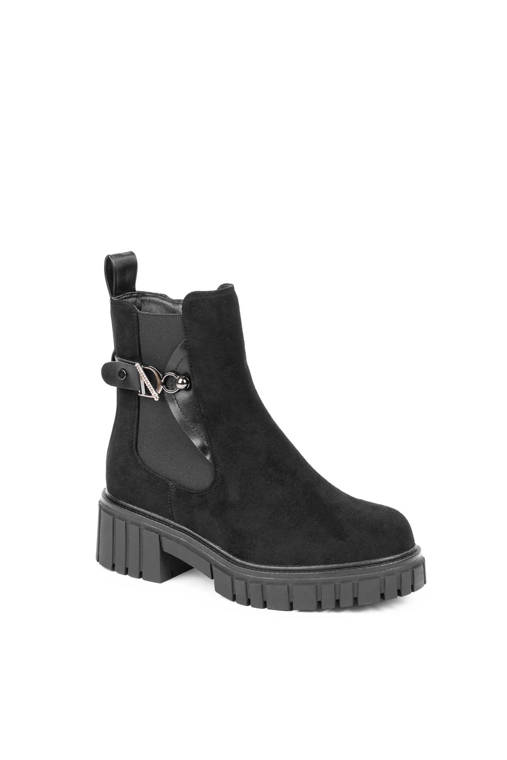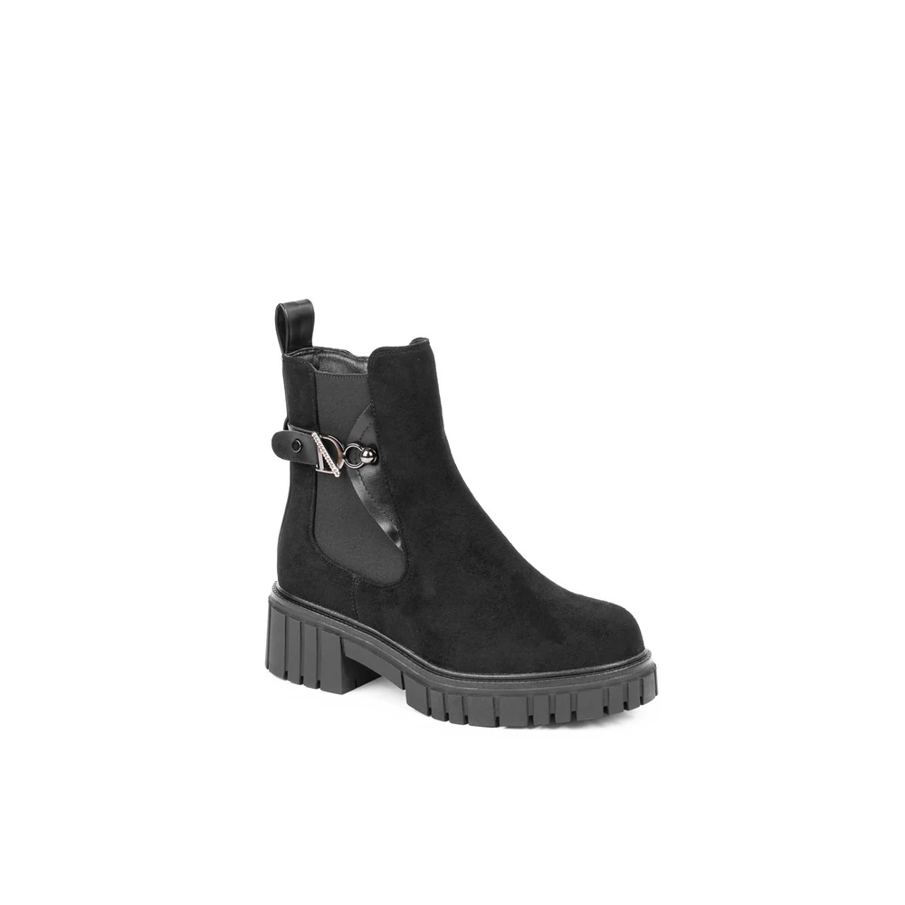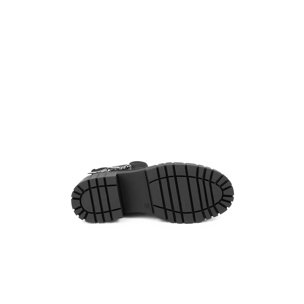 Bosido Fekete Műnubuk Bokacsizma Csipkés Szárral És Strasszköves Csattal