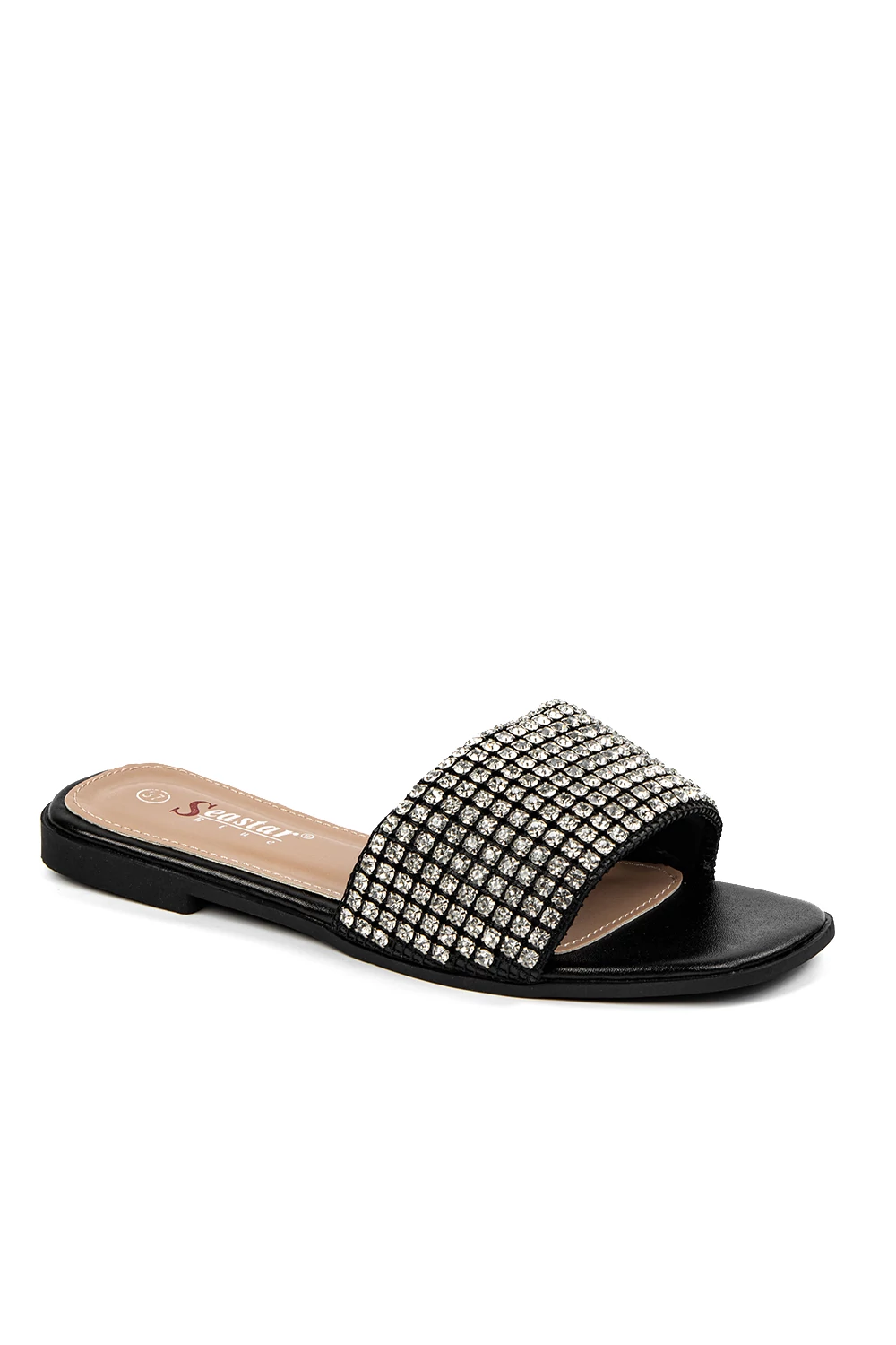 Igazán trendi és nőies, gyönyörűen csillogó fehér strasszkövekkel kirakott pántos papucs.