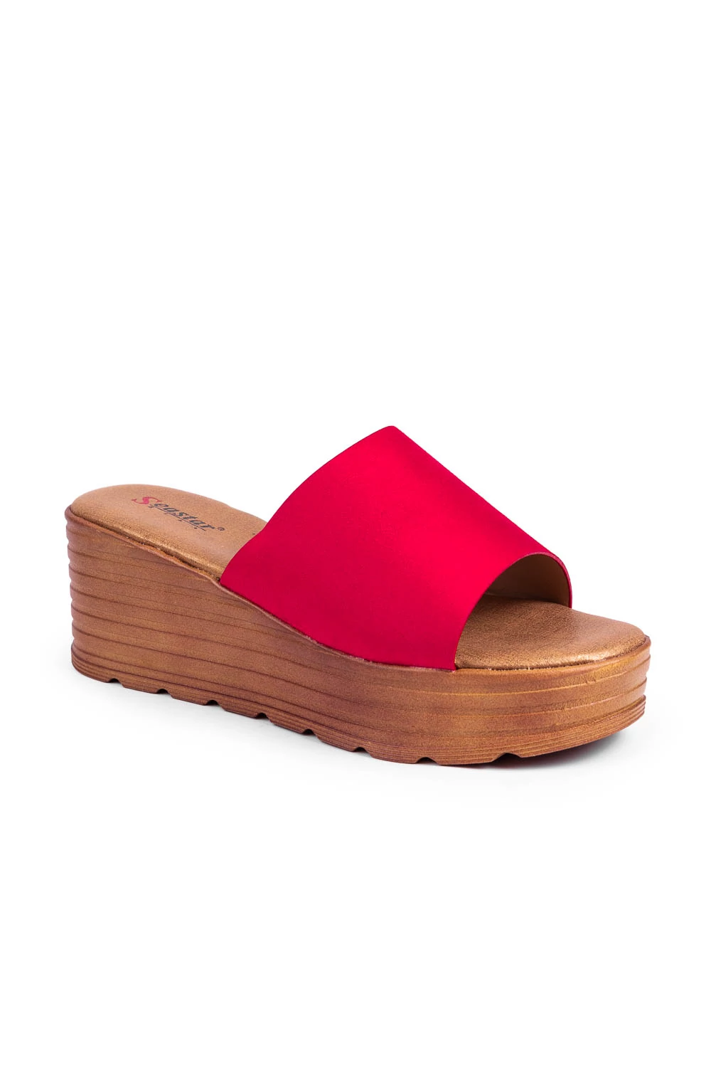 Seastar Piros Művelúr Platform Papucs Magasított Sarokkal