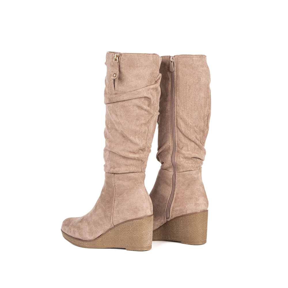 Elegáns magasszárú csizma, melynek szárán teljes egészében végig futó cipzár található, így könnyű fel és levételt, továbbá kényelmes viseletet biztosít. Enyhe bélésének köszönhetően ideális választás a hideg téli napokhoz, stílusos és praktikus viselet.