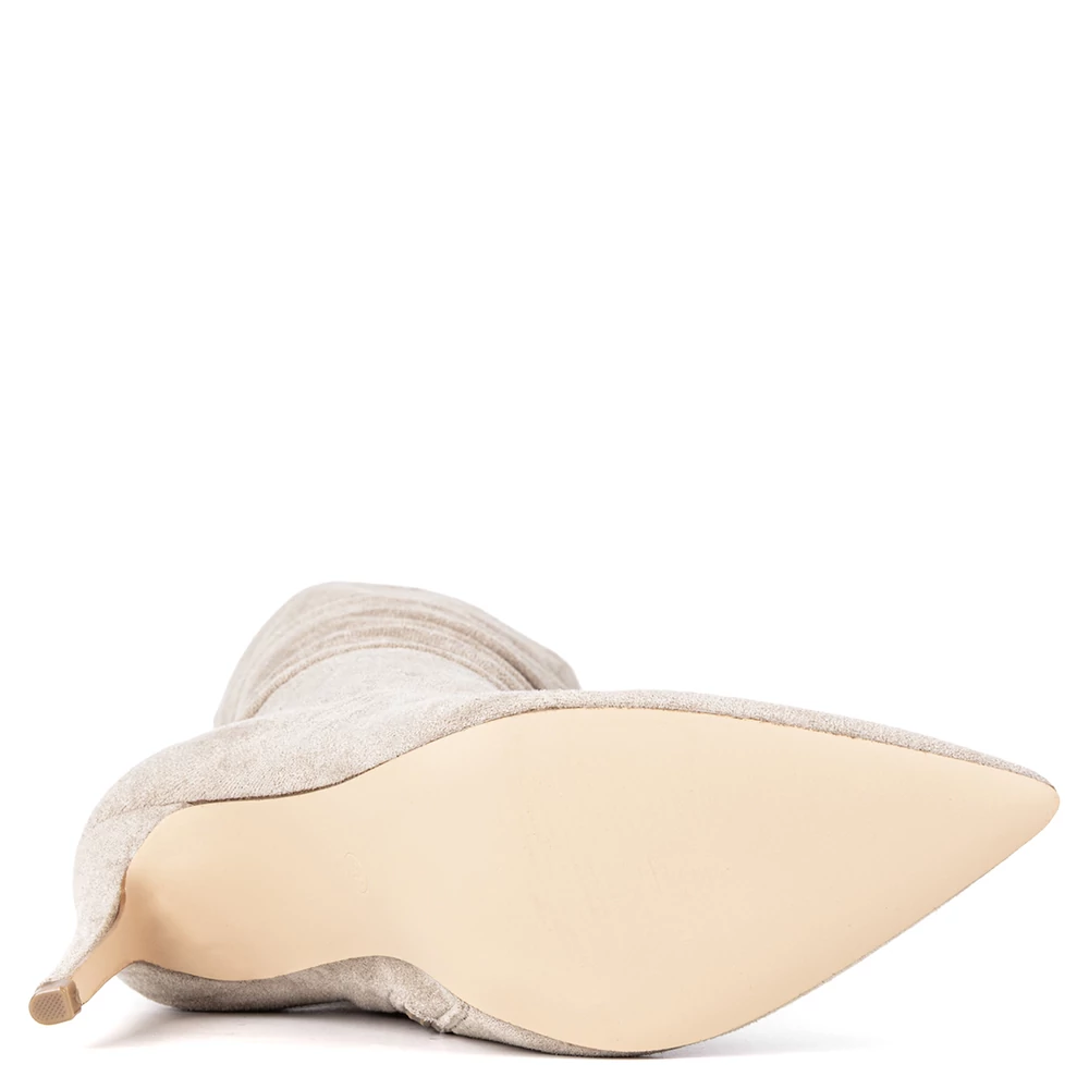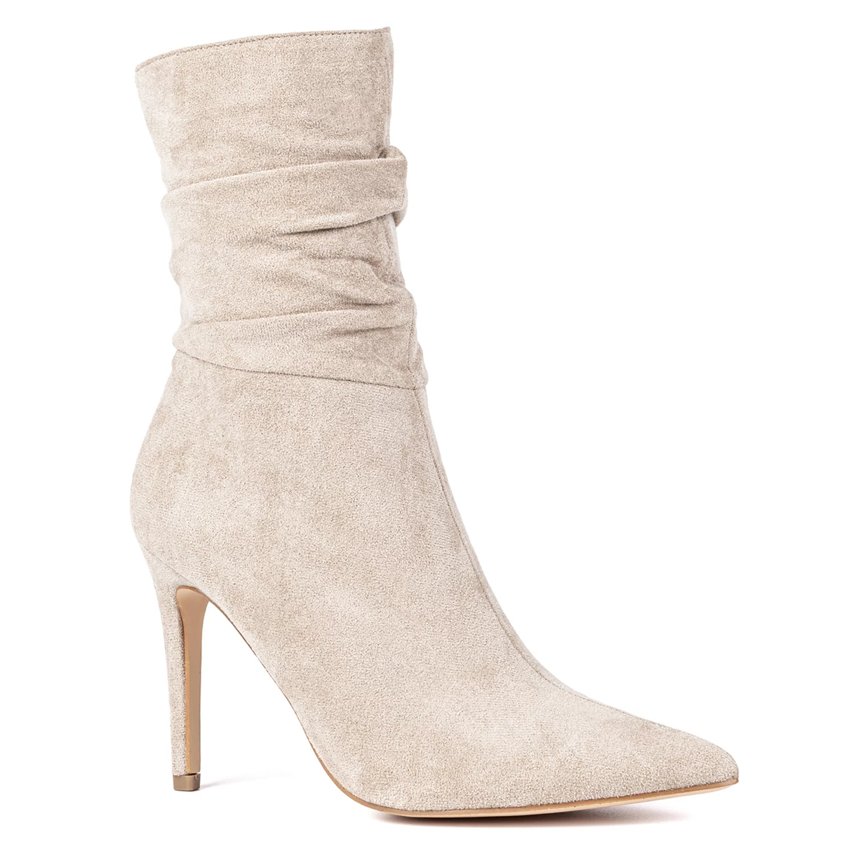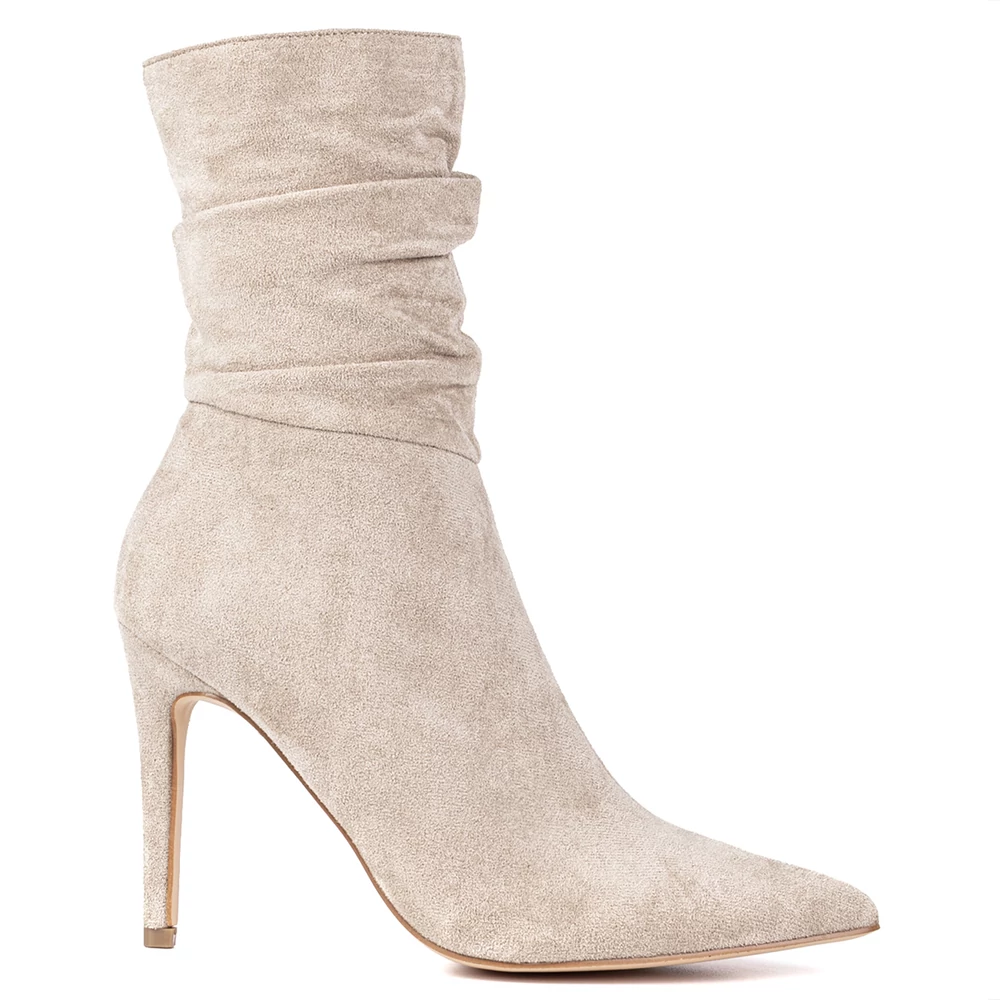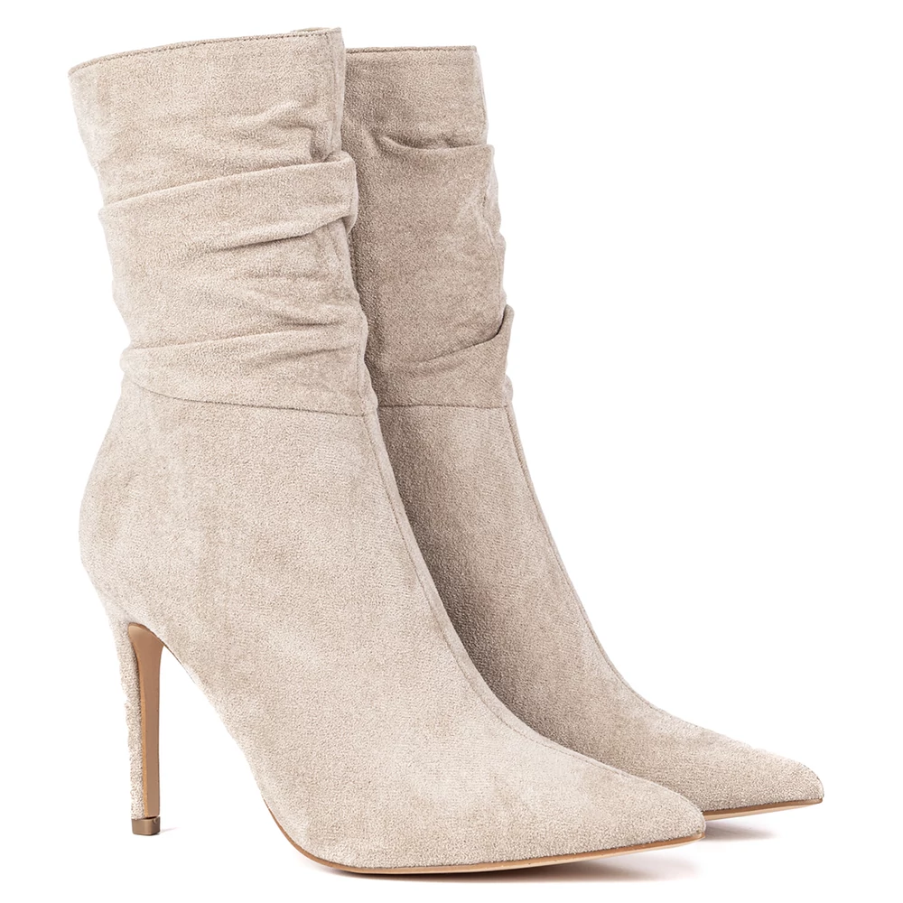 Letisztult vonalvezetés és elegáns megjelenés jellemzi ezt a női bokacsizmát, amely magas, vékony sarokkal készült. A finom, művelúr anyag és az enyhén ráncolt szár kialakítása nőies stílust kölcsönöz. A cipzáras belső oldalnak köszönhetően könnyen felvehető, a puha, textilbélés pedig kényelmes viseletet biztosít a hűvösebb napokon is. A tűsarkú kivitel optikailag nyújtja a lábakat, a hegyes orr rész pedig modern és kifinomult megjelenést ad. A csúszásgátló gumitalp stabil lépteket garantál. Tökéletes választás alkalmi összeállításokhoz, de akár hétköznapokon is stílusos megjelenést biztosít.