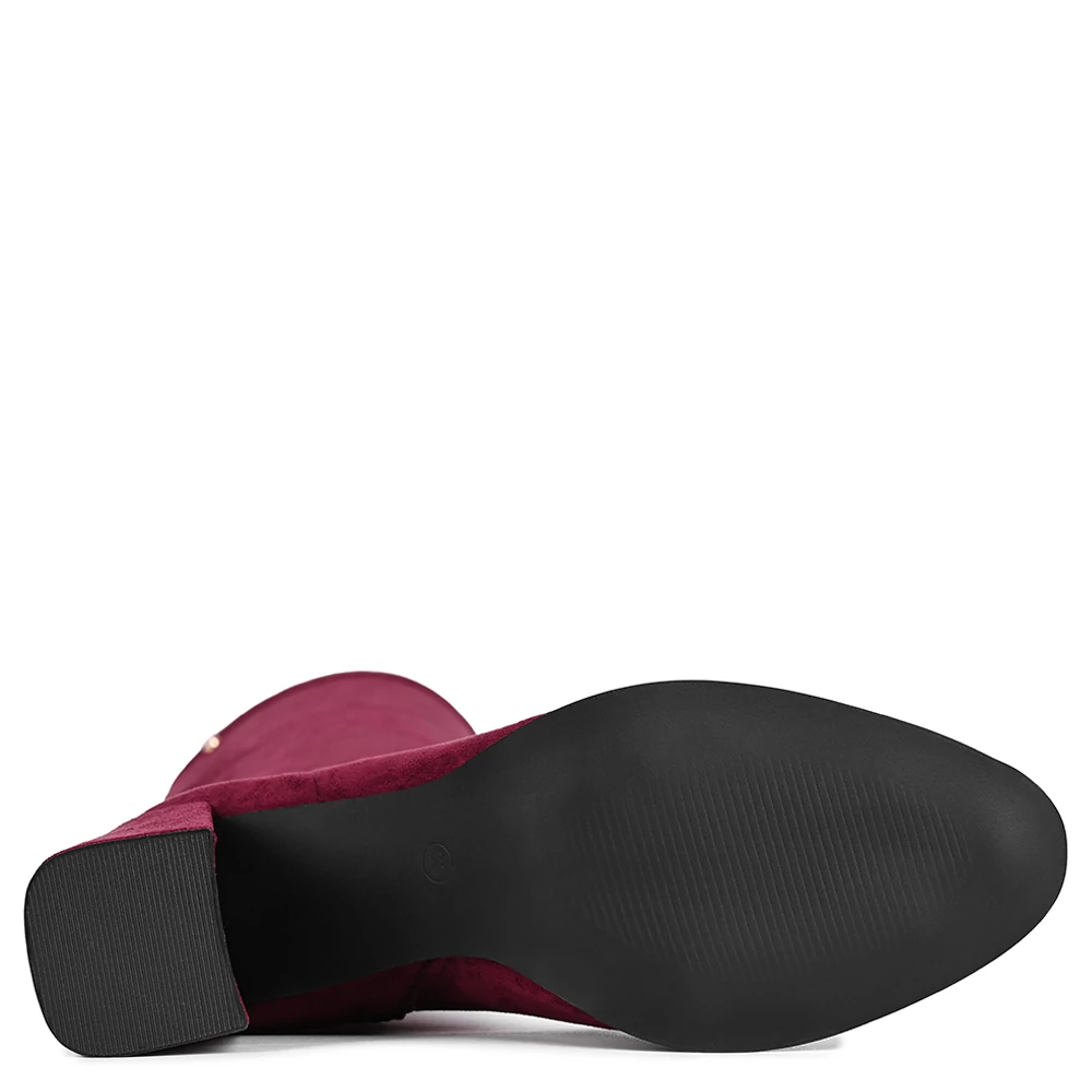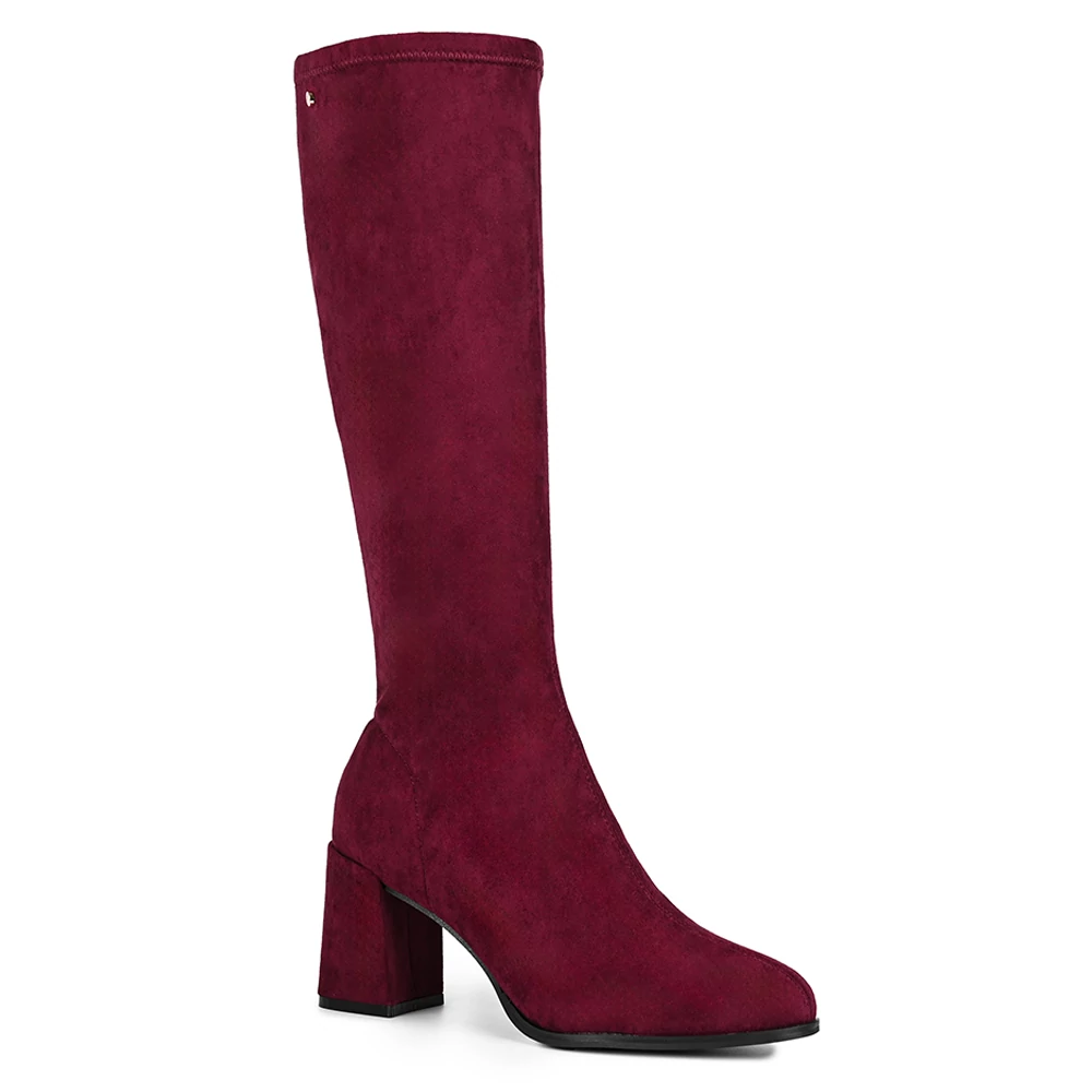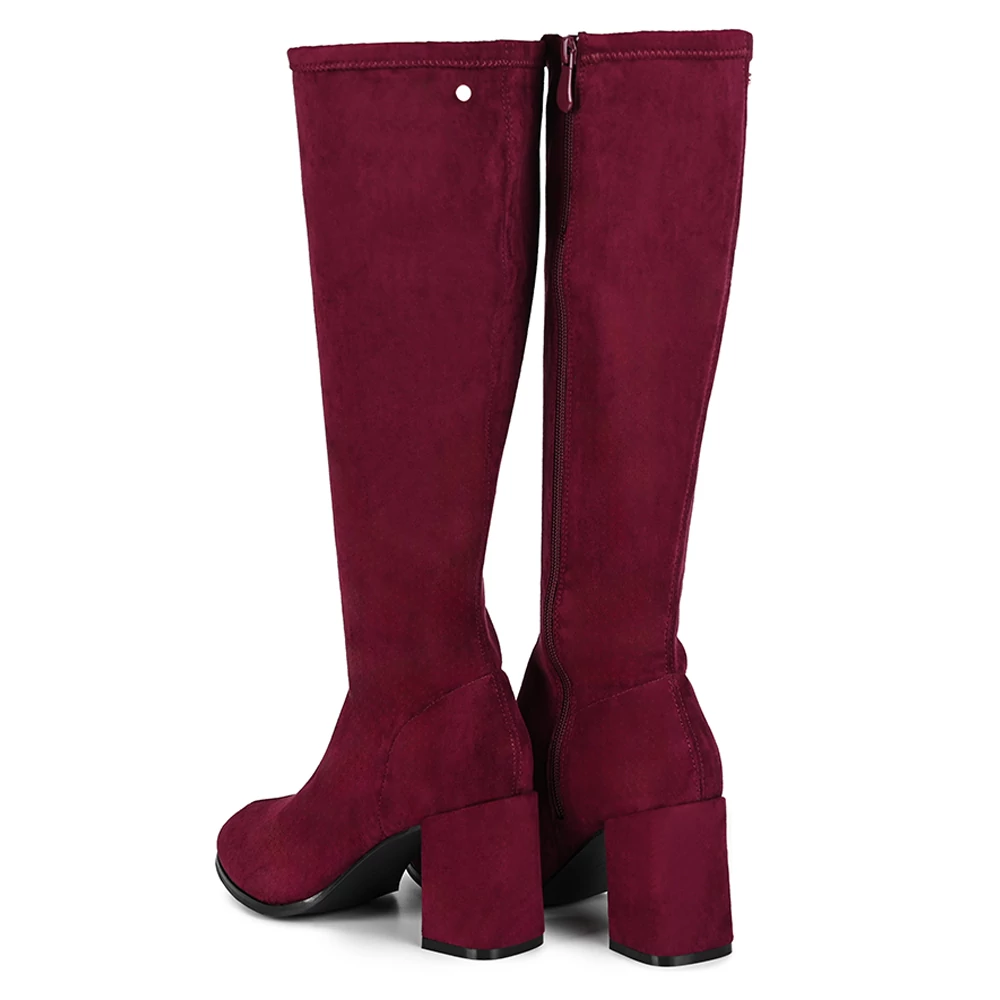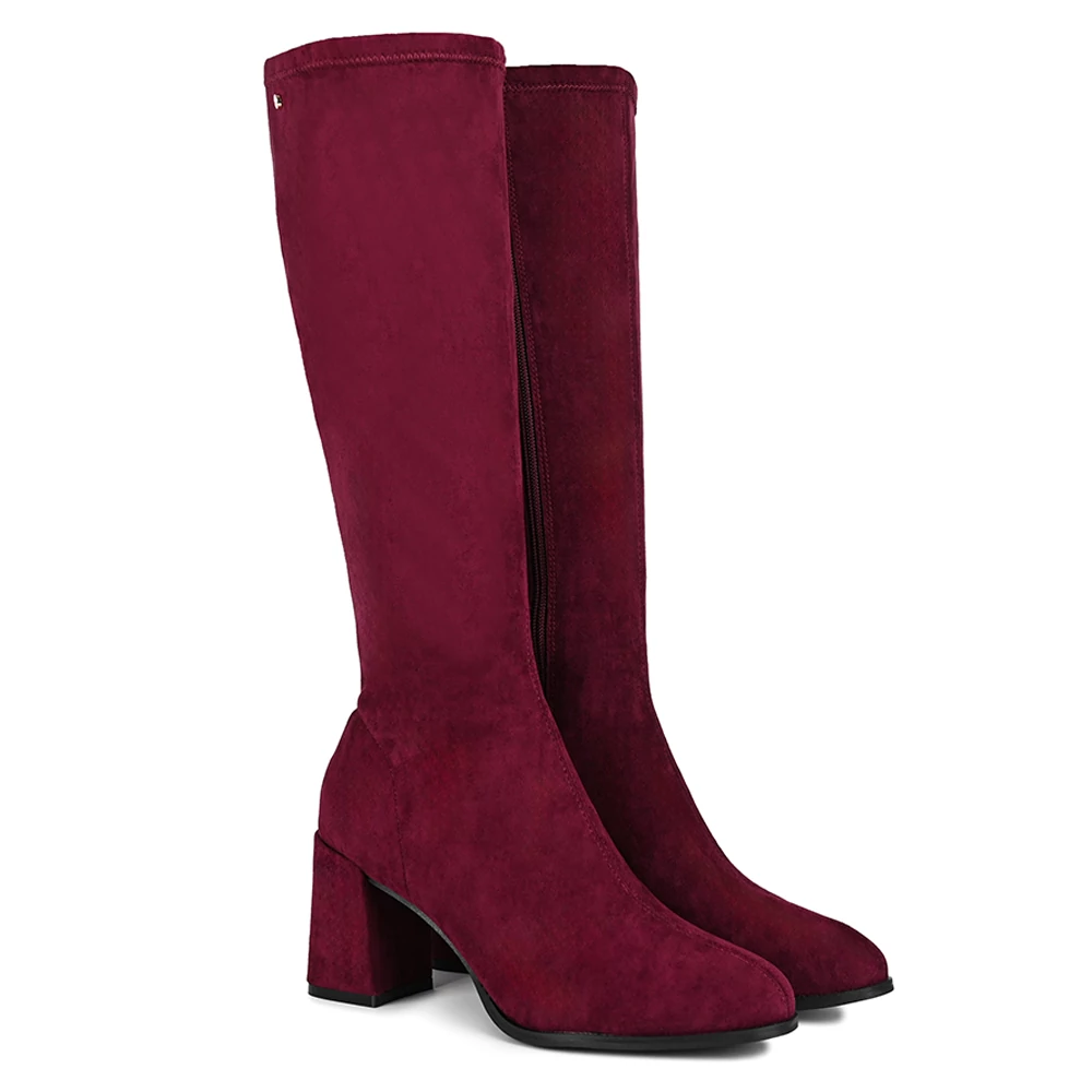 Térd alá érő, klasszikus fazonú magasszárú csizma, amely elegáns megjelenését a letisztult vonalvezetésnek és a puha hatású anyaghasználatnak köszönheti. Belső oldalán cipzárral záródik, így könnyen fel- és levehető. Stabil, közepes magasságú, vastag sarokkal készült, amely kényelmes járást biztosít a mindennapokban. A belső rész enyhén bélelt, ezáltal a hűvösebb napokon is kellemes viseletet nyújt. Sokoldalúan kombinálható darab, amely elegáns és hétköznapi öltözékhez egyaránt jól illeszkedik.