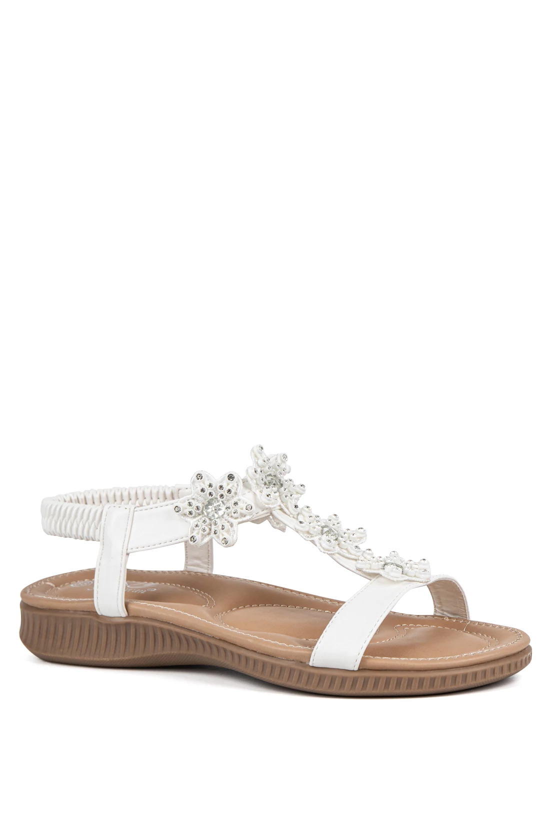 Elejét különleges virágok díszítik, amelyek a szandál fő díszítő elemei.
